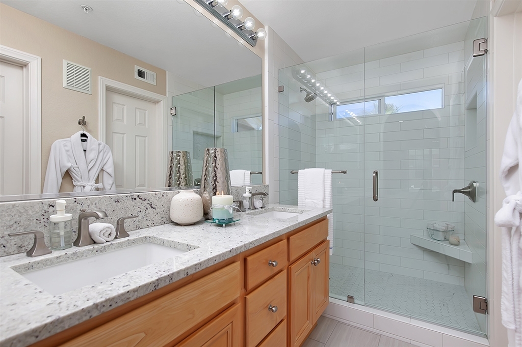 Approx 100K in Recent Remodeling! Remodel Includes Gorgeous Hardwood Oak Wood Flooring w/ New Baseboards Throughout, New Granite Cntrtps & Backsplash in Kitchen, All New SS Appliances & New Washer & Dryer, New MSTR Bath Walk-In Shower, Both MSTR Bathrooms have New Granite, Toilets, Sinks, Kohler Fixtures all with New Modern Tile in Bathrooms, New Carrara Marble FPL Surround and New Ceiling Fans Throughout. Garage Features a New Water Heater & Custom Cabinets w/ California Closet Storage Closets! Priced at $750K-$770K. Approx 100K in Recent Remodeling!!! Remodel Includes Gorgeous Hardwood Oak Wood Flooring with New Baseboards Throughout, New Granite Countertops and Back-splash in Kitchen, All New Stainless Steel Appliances and New Washer and Dryer, New Carrara Marble FPL Surround New Master Bath Walk-In Shower, Both the MSTR and Second Bedroom with its En-Suite Bathrooms have New Granite, Toilets, Sinks, Kohler Fixtures, all with New Stylish Modern Tile, Downstairs Powder Room also Features New Sink, Toilet, Cabinetry and New Stylish Modern Floor Tile, This Gorgeous Townhome also includes New Two Inch Blinds and Ceiling Fans Throughout and even New Door Hardware. Garage Features a New Water Heater and Custom Cabinets including California Closet Storage Closets!. Neighborhoods: Liberty Station Equipment: Dryer,Fire Sprinklers,Garage Door Opener, Range/Oven, Washer Other Fees: 0 Sewer: Sewer Connected Topography: LL
