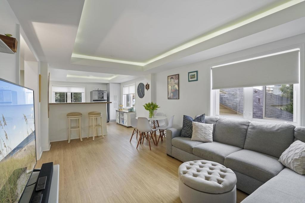 Experience the allure of coastal living in this exquisite two-story townhome condo in Point Loma, one of San Diego's most coveted neighborhoods. This charming residence has undergone a thoughtful renovation, showcasing a fresh, inviting atmosphere with its coastal-inspired design. Recent upgrades include pristine paint, new flooring, updated fixtures, kitchen appliances, and custom window shades. The pièce de résistance is the custom walk-in closet, adding a touch of luxury to daily living. Step outside to the cozy patio space, perfect for entertaining or soaking in the California sun. Upstairs, a private balcony provides a serene retreat for moments of relaxation. Convenience abounds with two dedicated parking spaces in a secure gated garage and a spacious storage unit. Beyond its walls, this condo offers a vibrant lifestyle. Charming coffee shops, scenic marinas, and a diverse array of dining options are just a short stroll away. A grocery store conveniently located across the street simplifies daily errands. Furthermore, the property is in close proximity to a stunning beach and offers easy access to acclaimed attractions such as Liberty Station, Ocean Beach, and downtown San Diego. Thoughtfully positioned away from flight paths, this condo guarantees a peaceful and tranquil living environment. Don't miss the chance to make this beautifully renovated condo your own and experience the Point Loma lifestyle in all its splendor.
