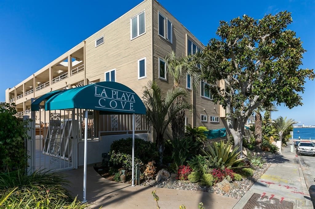 This premier, single-level top floor residence in La Playa Cove features stunning sit-down views to the City, Bay and Coronado Bridge. Just 1 block to Kellogg Beach and walkable to Shelter Island and yacht clubs. Remodeled perfectly throughout: simple, elegant open-concept kitchen with under-lit Brazilian granite center island, custom cabinets, stainless steel appliances, custom bathrooms, newer electrical, Milgard windows, wood-burning FP, newer heat/AC, skylights, custom walk-in pantry and closets. Extra room is an office with opaque sliding doors off the second bedroom. Full-size laundry closet with extra storage above including hanging bar. Two parking spaces, side-by-side, with storage cabinets. Complex is gated and includes heated pool, spa, sauna, community room, pet washing station, elevator, cable and water.. Neighborhoods: La Playa Complex Features: ,,,,, Equipment: Dryer,Garage Door Opener, Range/Oven, Washer Other Fees: 0 Sewer: Sewer Connected, Public Sewer Topography: GSL