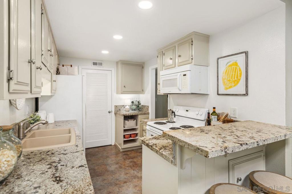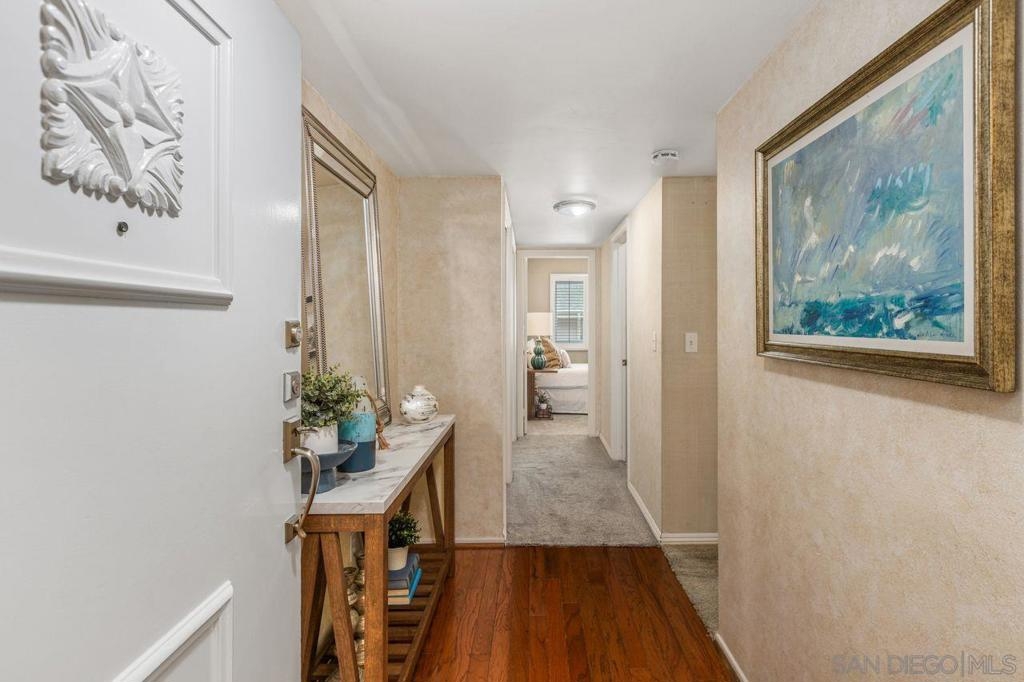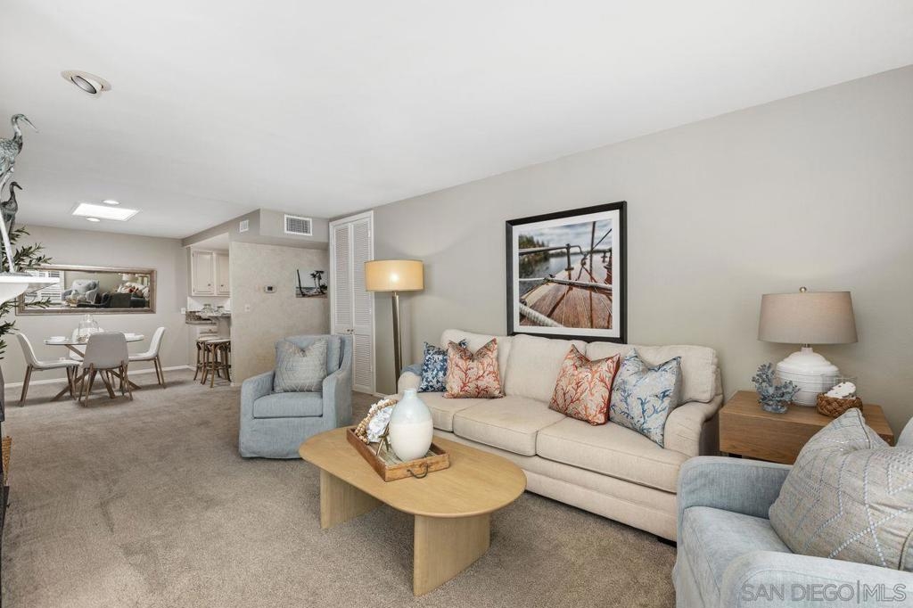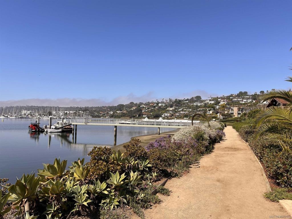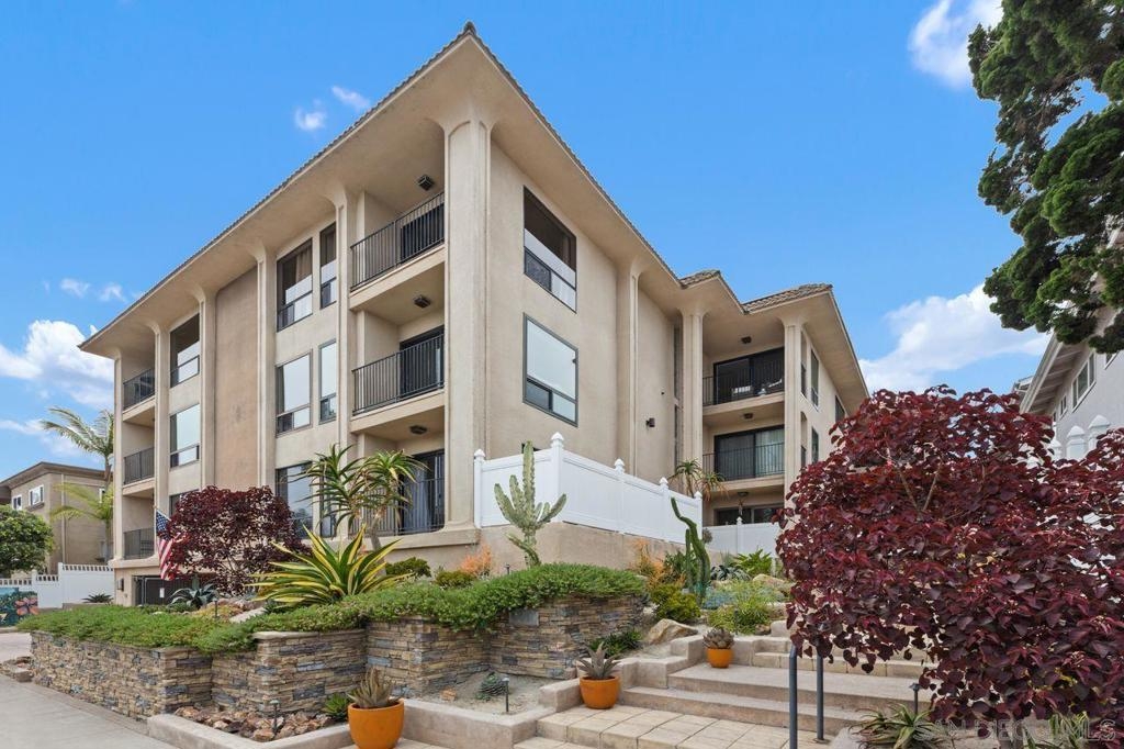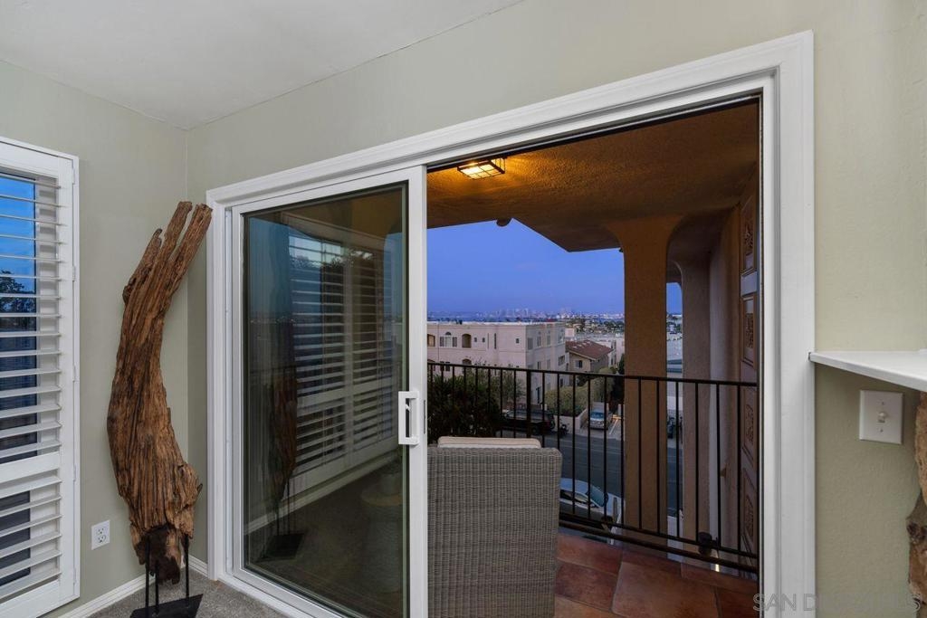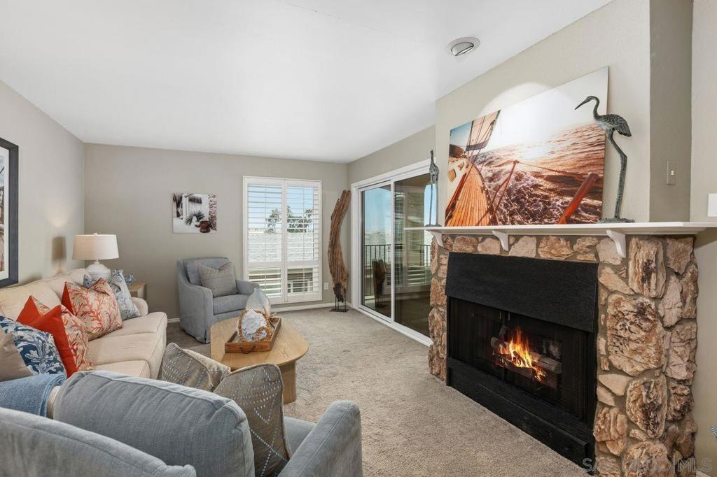 Welcome to a wonderful, single level condo located in the heart of the desirable neighborhood of La Playa in Point Loma. This top floor, corner unit offers views of the San Diego Harbor, the downtown skyline and Shelter Island. Enjoy water views from the balcony, living room and from both bedrooms. The kitchen is complete with granite counters, a walk-in pantry and opens to a dining area with a skylight. The spacious living room has a fireplace and a built in wet bar. Perfect for relaxing or entertaining. Features include newer windows with wood shutters, ample storage throughout, an in-unit laundry room and AC. The secured parking garage includes one dedicated parking spot with a metered outlet for EV charging and a storage closet, plus access to the community gym and sauna. Here is your opportunity to live in this fantastic coastal community just one block from Kellogg Beach, with close proximity to Yacht Clubs, the La Playa Trail and the shops and restaurants of Point Loma Village and Shelter Island.