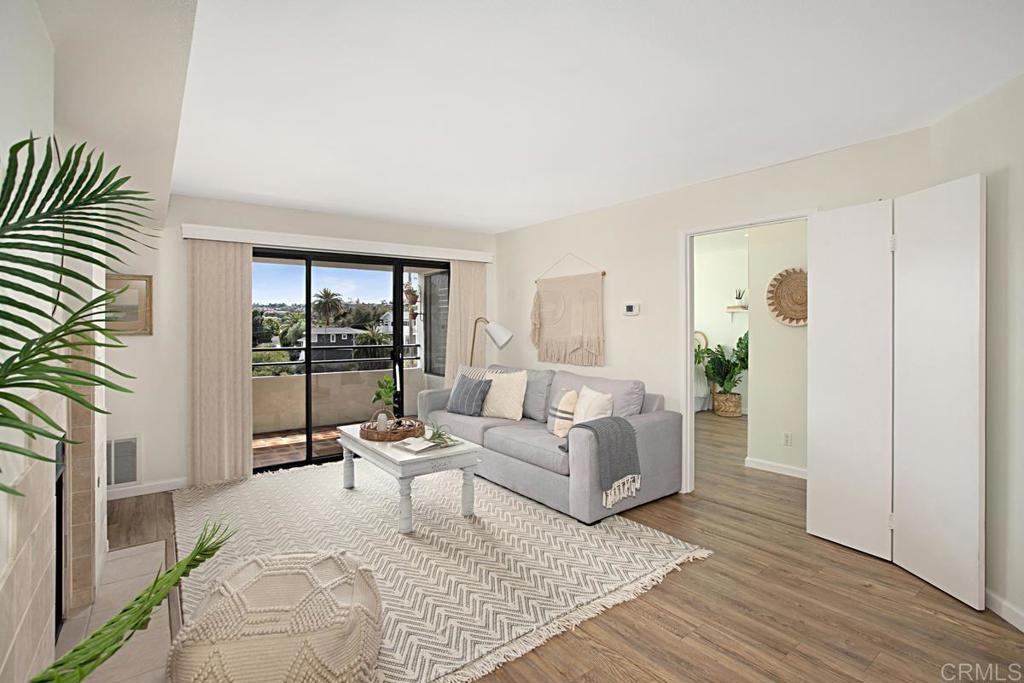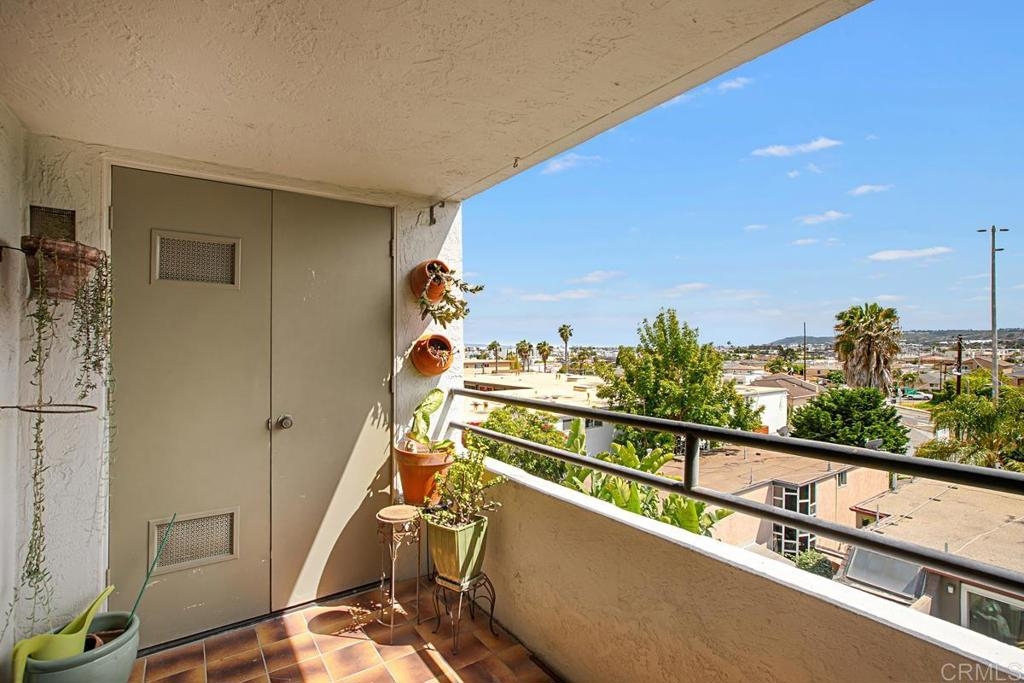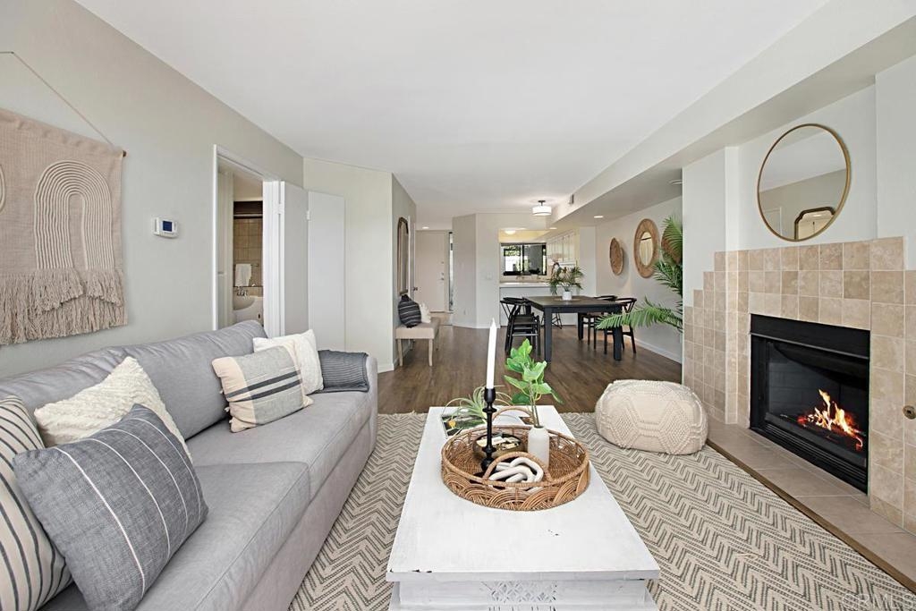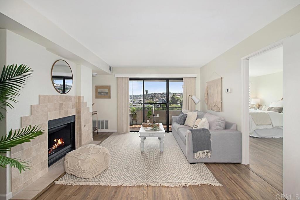 Amazing opportunity to get into Point Loma for less than 800k! Lovely and well maintained top floor unit with newer flooring, spacious kitchen and cozy fireplace. Leave your sliding doors open for ocean breezes, and relax on the balcony that looks out to the peninsula and the water on a clear day! Complex sits in the hills above Rosecrans on a super quiet block; incredible views from the front of the complex of the Coronado Bridge and downtown skyline. Walk to Liberty Station, minutes from the beach, bay and airport. One assigned parking spot in underground garage, stackable laundry in unit. This home provides ideal San Diego living at an affordable price.