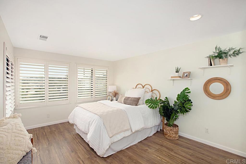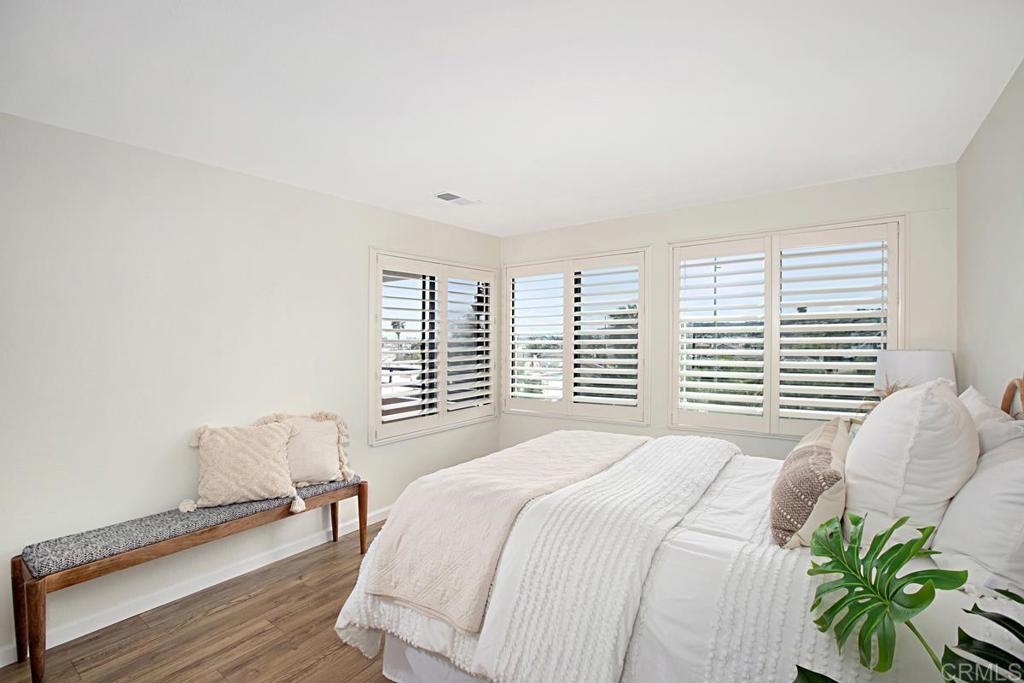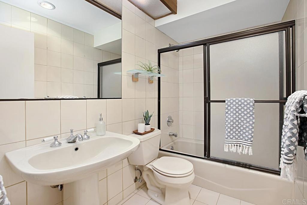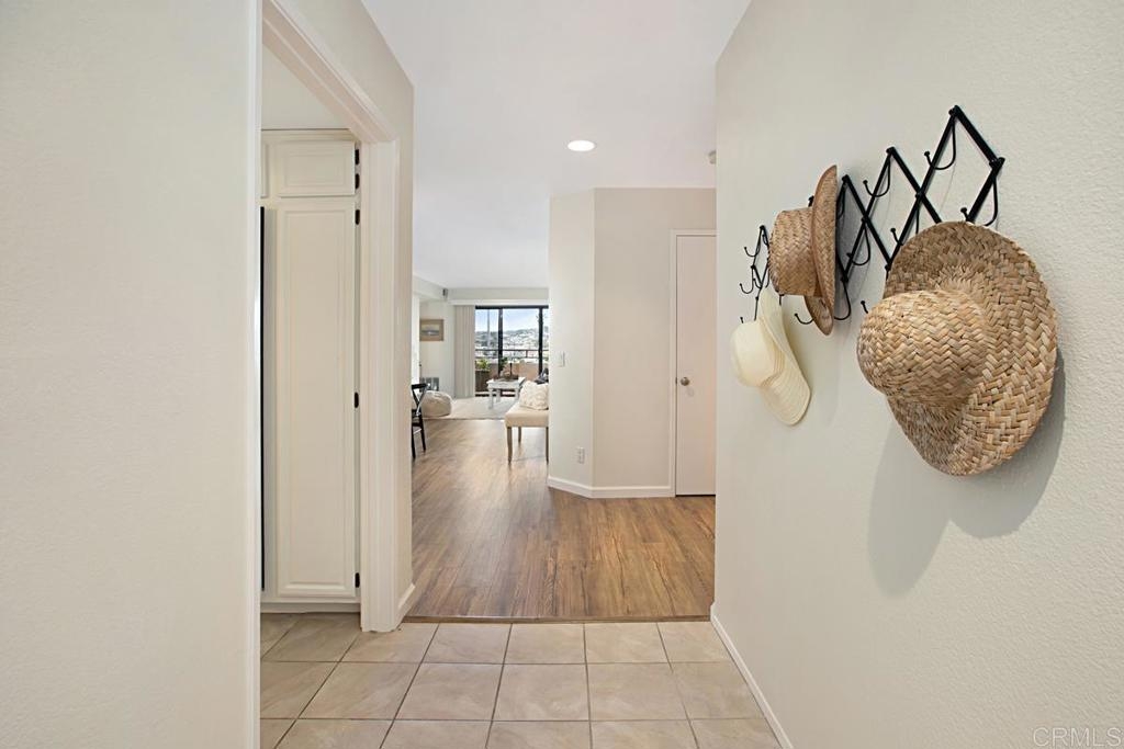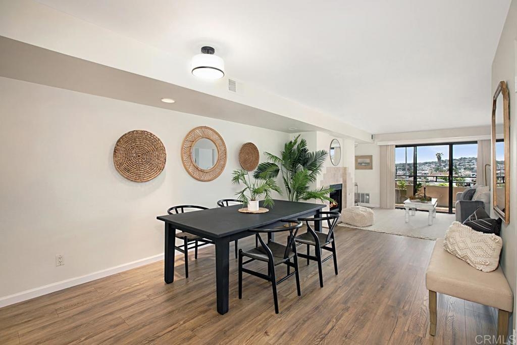 Amazing opportunity to get into Point Loma for less than 800k! Lovely and well maintained top floor unit with newer flooring, spacious kitchen and cozy fireplace. Leave your sliding doors open for ocean breezes, and relax on the balcony that looks out to the peninsula and the water on a clear day! Complex sits in the hills above Rosecrans on a super quiet block; incredible views from the front of the complex of the Coronado Bridge and downtown skyline. Walk to Liberty Station, minutes from the beach, bay and airport. One assigned parking spot in underground garage, stackable laundry in unit. This home provides ideal San Diego living at an affordable price.