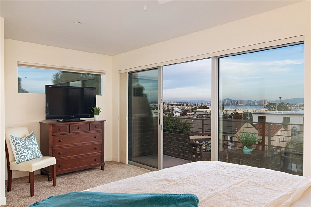 Newer construction offers contemporary townhome living complete with sleek modern finishes! Soak in the Downtown & Bay views from top floor master suite complete with a spa inspired master bath. Enjoy entertaining with the open concept living room, kitchen & dining area. Hardwood flooring, custom fire feature, stainless appliances, 3 balconies & attached over-sized 1-car garage with plenty of storage. Perfect Point Loma location with Shelter Island, shops & restaurants within walking distance. Imagine going to sleep at night and waking up in the morning to the amazing views of the San Diego Bay & Downtown skyline the master suite of this townhome affords you! In addition to endless views, you can sip coffee on the balcony or relax in the spa inspired master bath complete with a dressing and make-up area, dual master sinks, walk-in closet and over-sized shower and bathing room. Enjoy an open concept living room, kitchen and dining area, along with the view balcony makes this the perfect space for entertaining. The custom fire feature adds to the modern & sleek finishes you will find throughout the home. The kitchen offers plenty of cabinetry, stone counter-tops, stainless appliances including a Viking stove and refrigerator, breakfast bar & balcony. The flexible floor plan of this townhome provides you with a family room and large laundry room in addition to the master bedroom and second bedroom, giving you the possibility for another bedroom or office. The over-sized 1 car garage offers room for toys & plenty of storage. This ideal Point Location is minutes to Shelter Island and Liberty Station with schools and plenty of restaurants and shopping right around the corner.. Neighborhoods: Pt. Loma Equipment: Dryer, Washer Other Fees: 0 Sewer: Sewer Connected Topography: LL