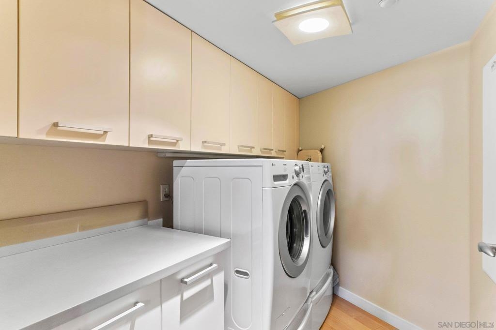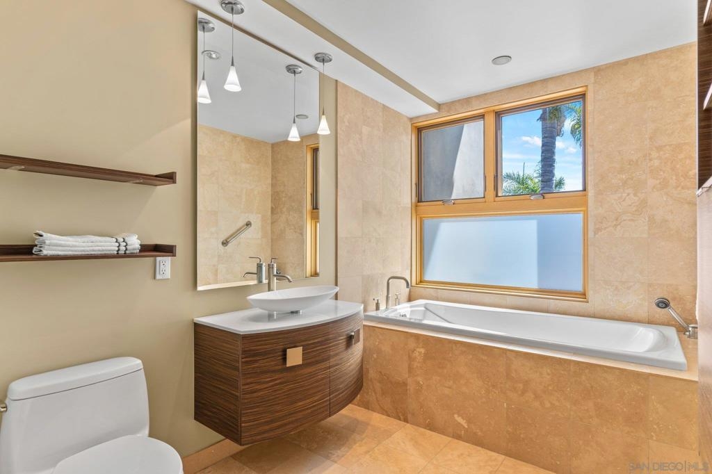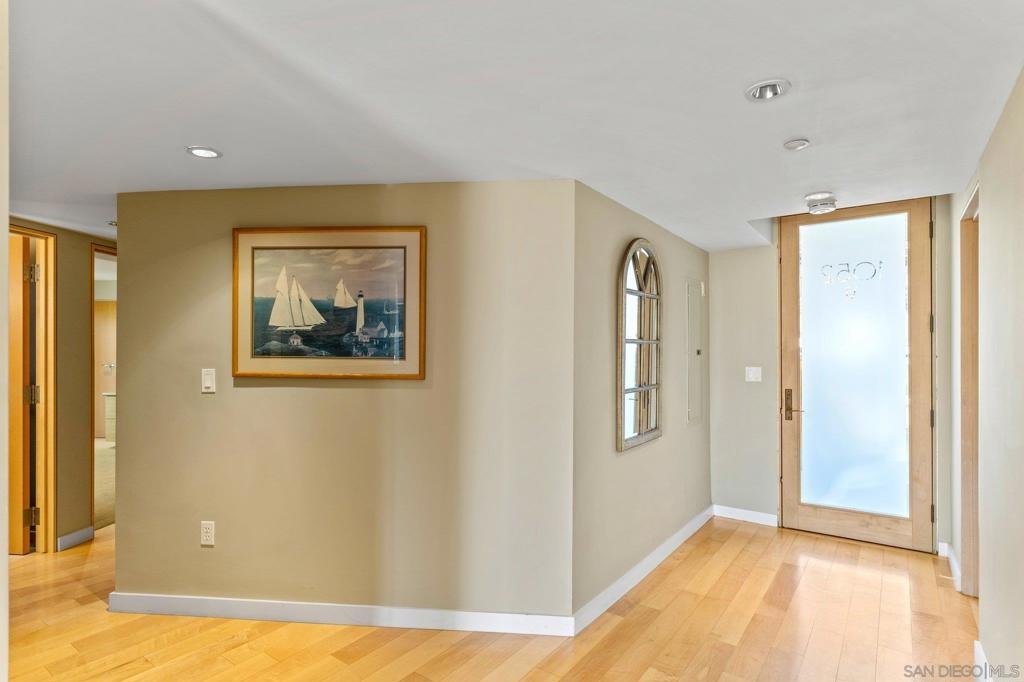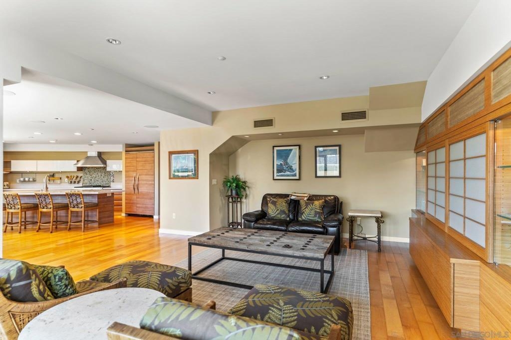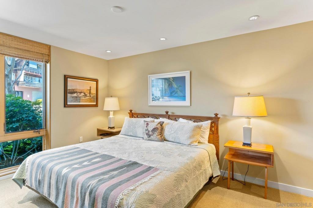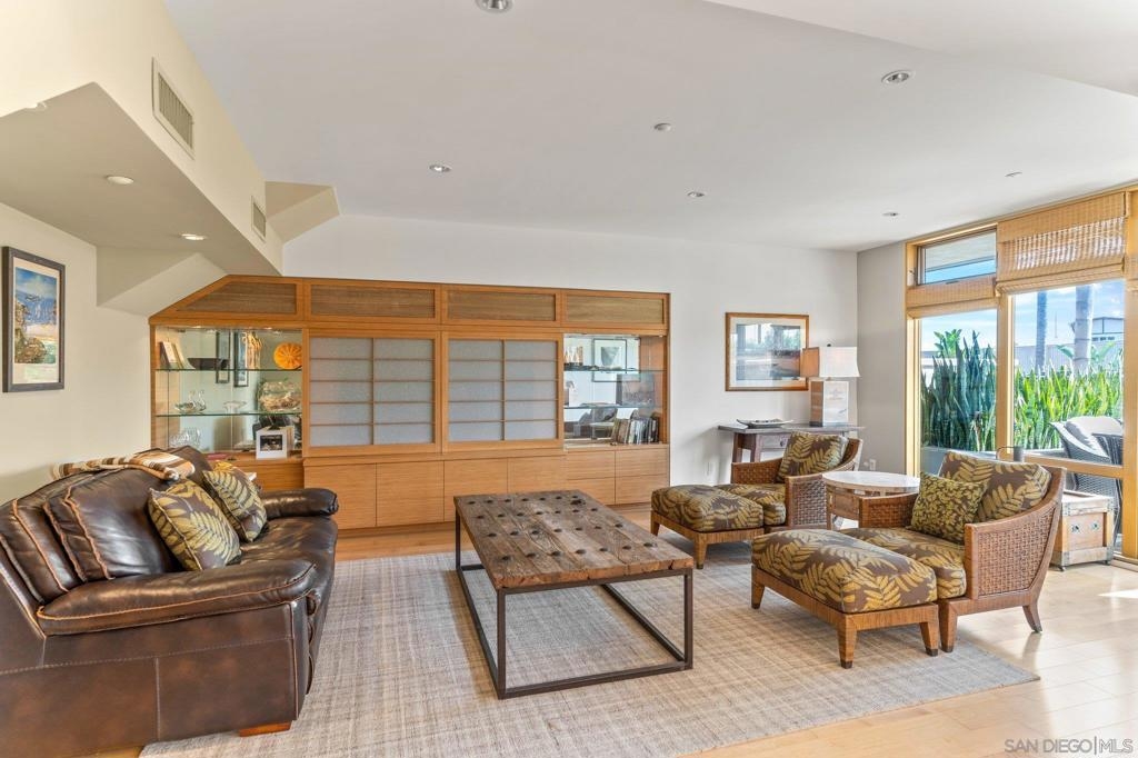 Located in the heart of Shelter Island, directly across from the San Diego Yacht Club and steps away from La Playa trail, 1052 Anchorage Lane is a stunning property inside and out. As you enter into your open concept living, you are greeted with eastern exposure floor to ceiling windows, a custom kitchen with all Viking appliances, 6-burner range, large center island, wine fridge, and quartz counters. Head upstairs to enjoy incredible views of the marina, downtown, bay & holiday fireworks! Or enjoy a glass of wine on your private first floor patio. Complete with two primary suites, one on each floor, 3 full spa-like bathrooms, and storage galore! This two-story home with secured private two-car garage (supp...) on parking level, also comes equipped with a BONUS large storage room in the garage and additional parking space next to private garage. You won't believe what you can fit in this Townhome! 1052 Anchorage Lane is a true Shelter Island gem.