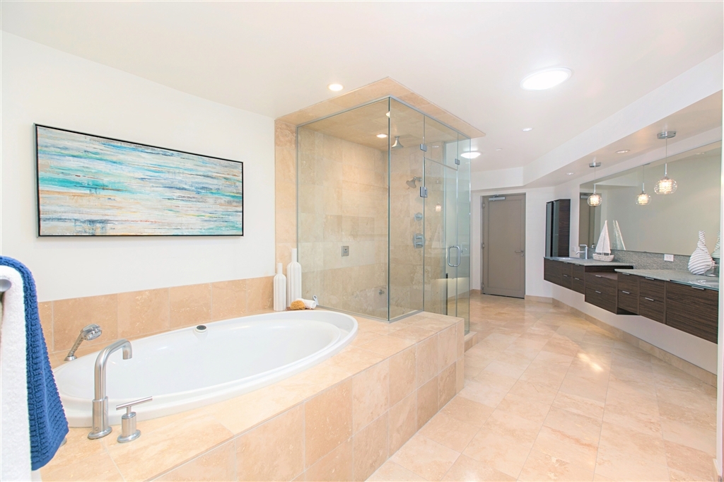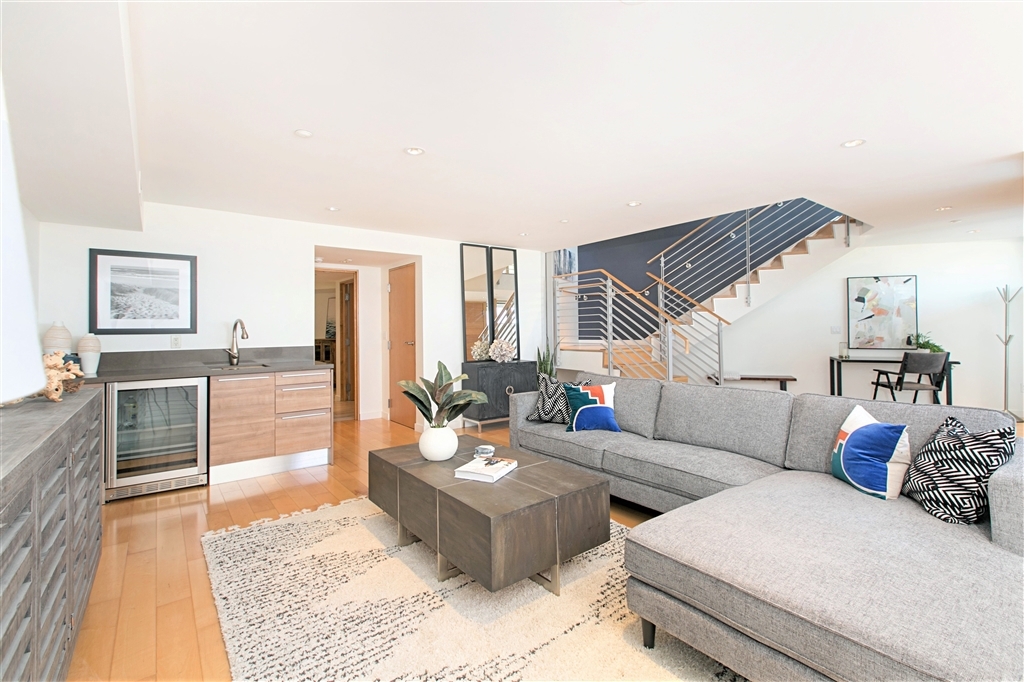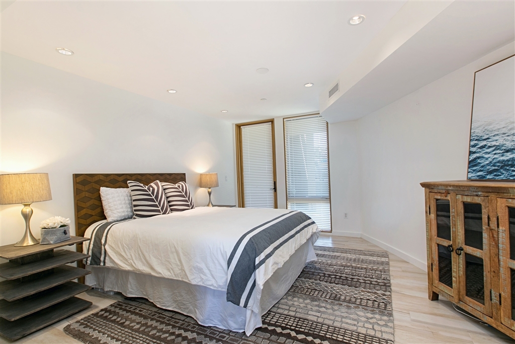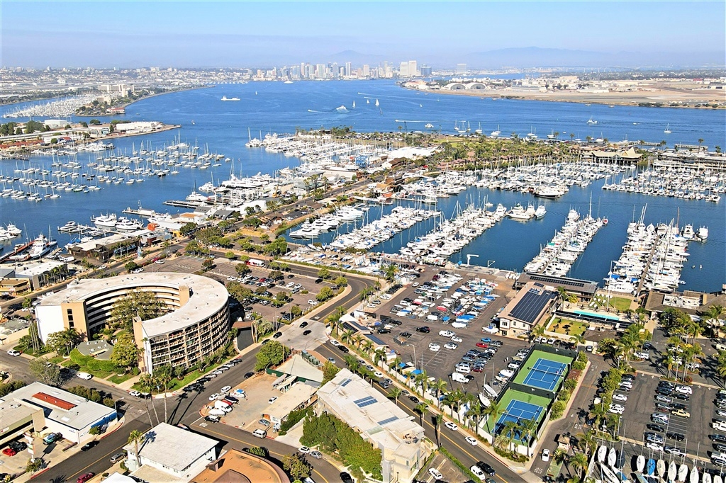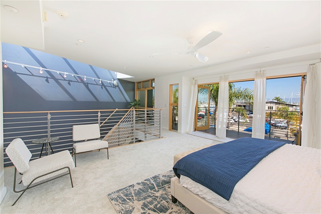 Incredible extra spacious 2 bedroom, 2.5 bath townhome enjoys views to bay, boats, city, & beyond! Chef’s dream kitchen completed with custom Italian Bontempi Cucine cabinetry, Viking appliances, Caesarstone counters. Brilliant front row harbor views from both upper levels. Master suite features secluded balcony, spa style bath, walk-in closets & separate entrance! Lower level offers a wet bar, en-suite bedroom, 38x17 patio. Mood lighting. Lower room off garage could be artist studio, office, etc! Floor to ceiling tri-fold doors to tiled balconies. Dual heat & A/C zones. Storage room off of garage. Prime south location adjacent to San Diego Yacht Club is just a few steps to the bay & trails, restaurants, shops, minutes to the airport and downtown. Warm contemporary design completed in 2007 by architect Richard Yen.. Neighborhoods: Shelter Island Equipment: Dryer,Garage Door Opener, Washer Other Fees: 0 Sewer: Sewer Connected Topography: LL Frontage: Bay