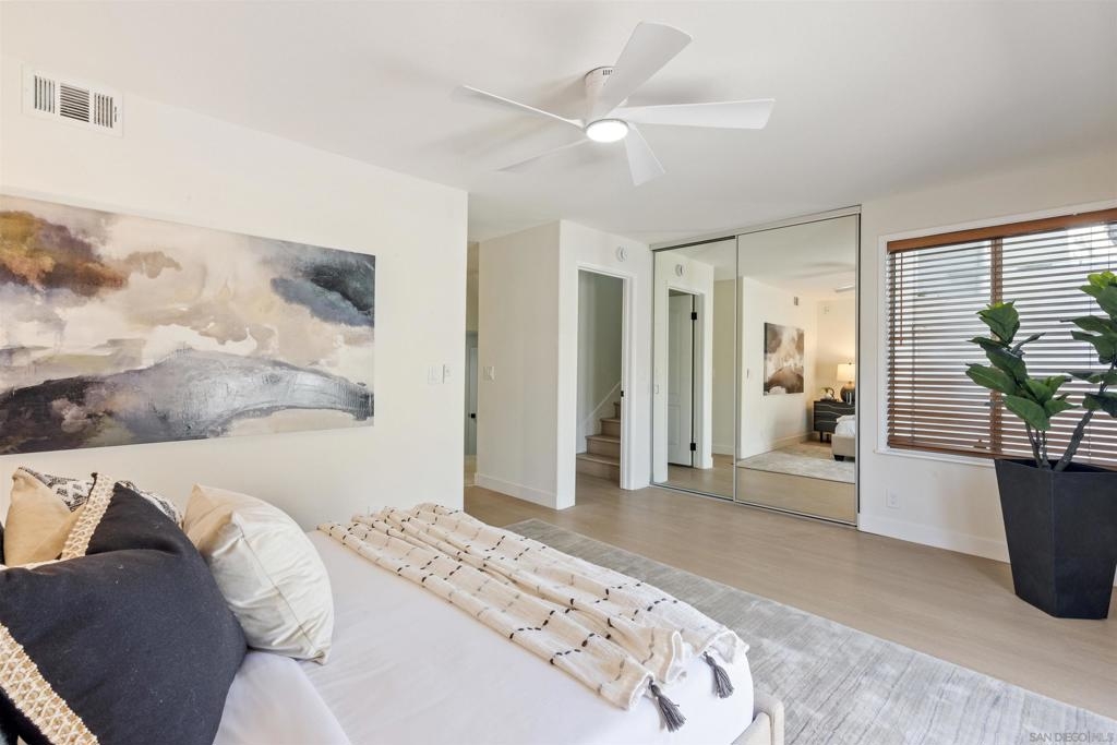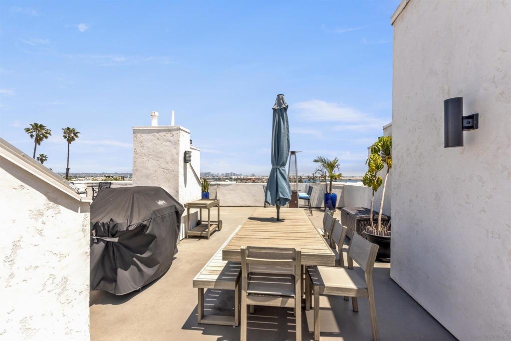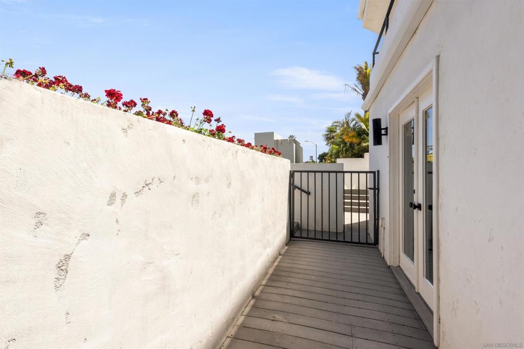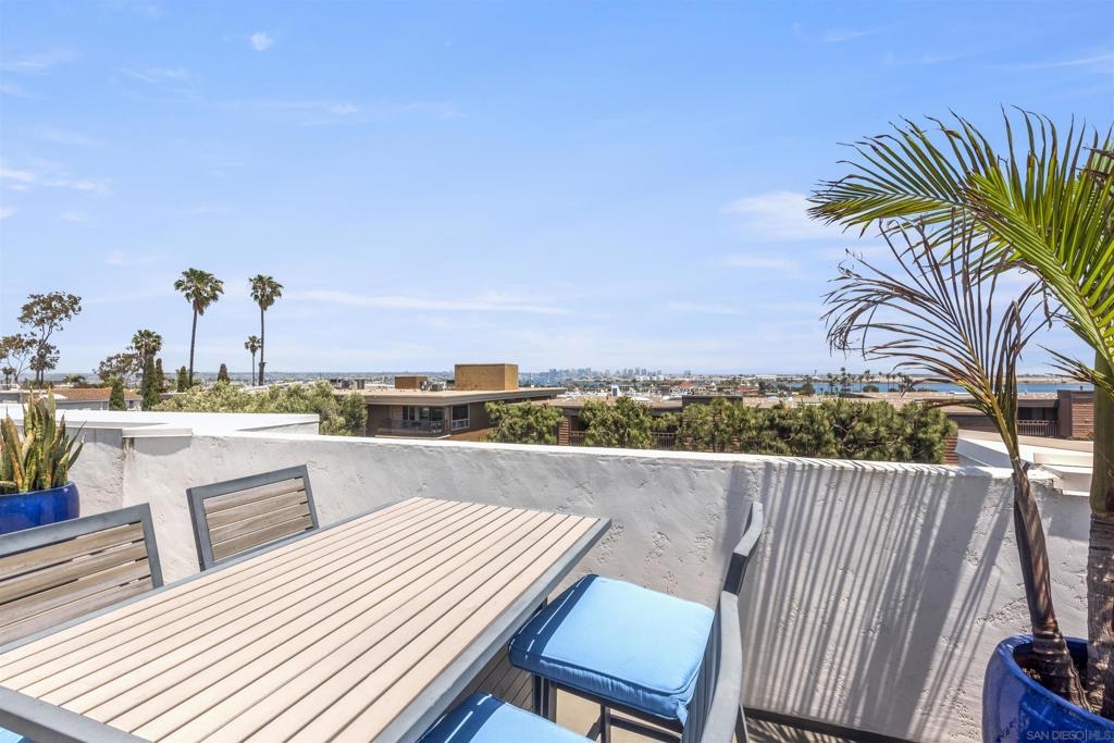 Live the coastal lifestyle in this beautifully renovated two-story condo located in the highly sought after Vista La Playa complex, just steps from Kellogg’s Beach in San Diego’s prestigious Point Loma neighborhood. Featuring luxury vinyl flooring throughout, brand new LG appliances, modern lighting, and fresh interior paint, this turnkey home is designed for comfort and style. The kitchen and bathrooms have been fully upgraded with quartz countertops, shaker cabinets, new plumbing fixtures, and contemporary tile work, making every space feel brand new. The flexible layout offers a private master retreat on the entry level, complete with its own entrance, bathroom, and patio. It's ideal for hosting guests or maintaining personal privacy while living upstairs. Enjoy the convenience of in-unit laundry, a new washer and dryer combo, a new furnace, and two parking spots in a secure gated garage. Relax or entertain on the rooftop deck offering panoramic views of the San Diego Bay, downtown skyline, Coronado, and Point Loma. This rare amenity truly sets the condo apart. This is beachside living at its best, just moments from the sand, scenic walking paths, yacht clubs, local eateries, and all that Point Loma Village has to offer.