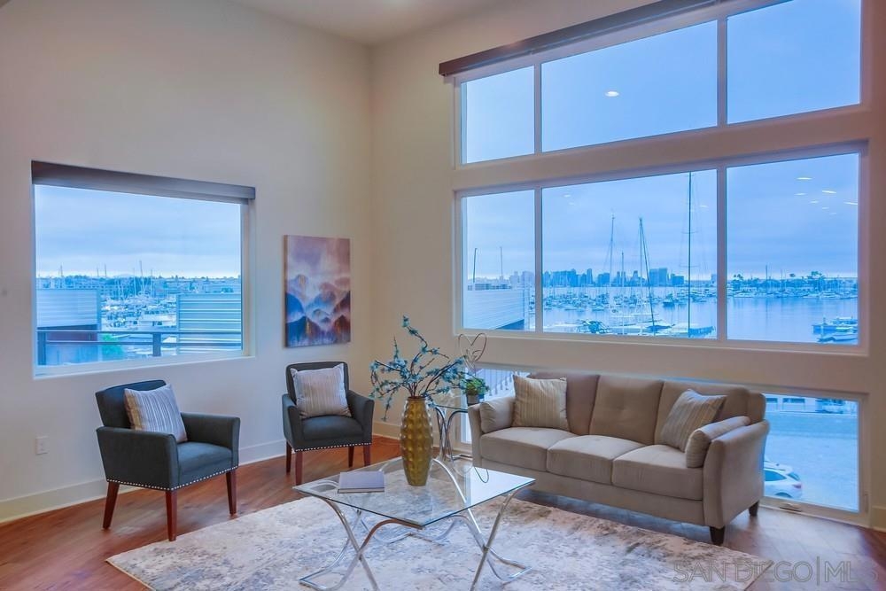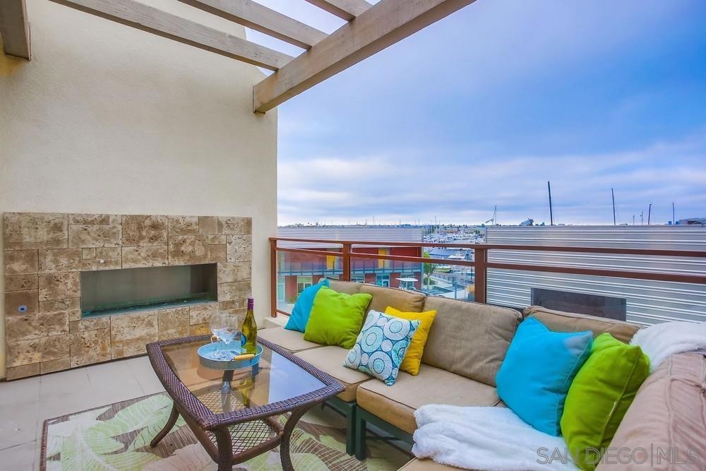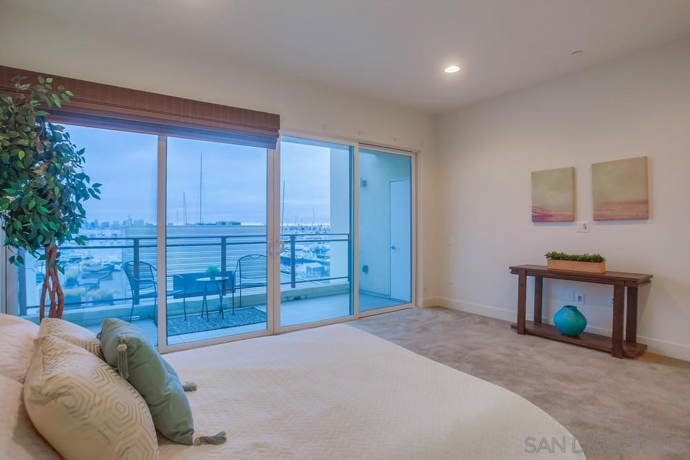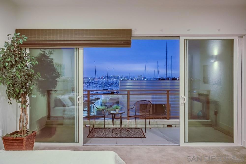 The most coveted penthouse unit in all of Waterpoint. First time on the market! Enjoy the panoramic views of Americas Cup Harbor all the way to the downtown San Diego skyline! Penthouse end unit is single story with elevator access close by. Open concept with floor to ceiling windows and a LaCantina door to bring the outdoors in, all while enjoying the beautiful San Diego sunsets next to your built-in fireplace on one of two balconies! Vaulted ceilings and recessed lighting throughout. Gourmet kitchen with large island with all Bosch appliances and quartz countertops. Incredible views from the master suite with your own private balcony. Huge walk in master closet, spa-like bathroom with dual vanities and free-standing soaking tub. Gated Complex with 2 secure parking spots and storage unit. WATERPOINT is steps away from the Bay and Shelter Island. Development was built by Col-Rich in 2015. Ideal location for sailing enthusiast and an active lifestyle. Walking paths on the waterfront and restaurants are in close proximity. There are two full bedrooms, each with their own ensuite full bathrooms. Large den is perfect for a home office or can be converted into a third bedroom. There is only one neighboring unit which creates so much natural light in the home. VIEWS, VIEWS, VIEWS sets this unit apart! Large, open concept with the best layout in all of Waterpoint. This home is perfect for any buyer that wants to have a single level modern living with the best views of San Diego!