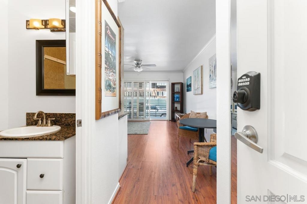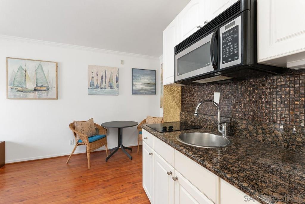 Charming studio in the desirable Yacht Club Condos, located in the exclusive La Playa neighborhood of Point Loma. Just steps from Kellogg Beach and the San Diego Yacht Club, and a short stroll to Shelter Island, coffee shops, and top-rated restaurants — this bright and freshly painted unit offers clean, efficient living in one of San Diego’s most scenic coastal communities. Inside, you'll find a granite kitchen countertop, a private balcony, and a peaceful atmosphere perfect for relaxing or working from home. Cozy studio with the resort-style amenities. Enjoy a large, heated pool, fitness center, clubhouse lounge, billiard room, meeting room, and expansive outdoor entertaining space — all within a secure, gated complex. Assigned parking (#636) and convenient laundry just steps away make daily living a breeze. Additional perks include storage for paddle boards, kayaks, and bikes, plus direct access to the waterfront path for sunset strolls. Minutes to downtown, the airport, Shelter Island, and La Playa’s boutique shops and upscale dining — this is an incredible opportunity to enjoy coastal living at an unbeatable value.
