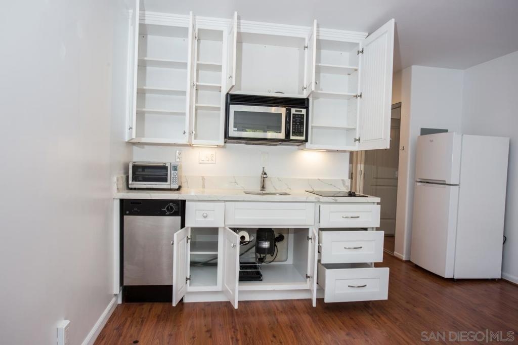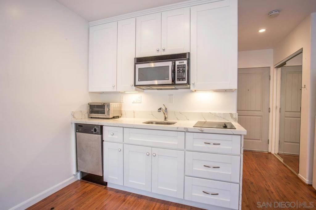 Completely renovated studio, just steps from the water! This light and bright unit features an updated kitchen and bath with custom cabinets and flooring! The east facing patio captures the morning sun and cool ocean breeze. Located in the heart of Point Loma, in a secure gated complex with a fitness room, community BBQ and pool area with beautiful views of the Bay! Walk or bike to Shelter Island to enjoy the local shops and restaurants. Sewer: Sewer Connected Topography: LL