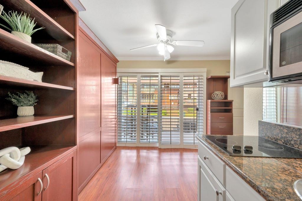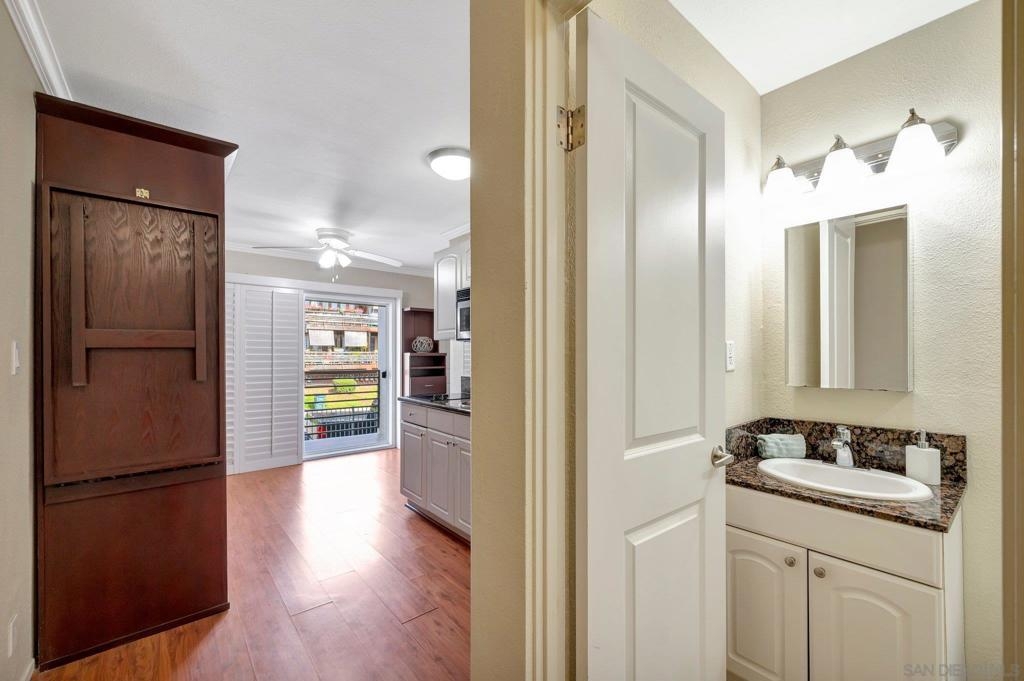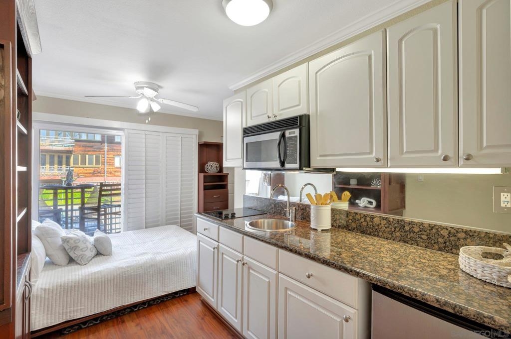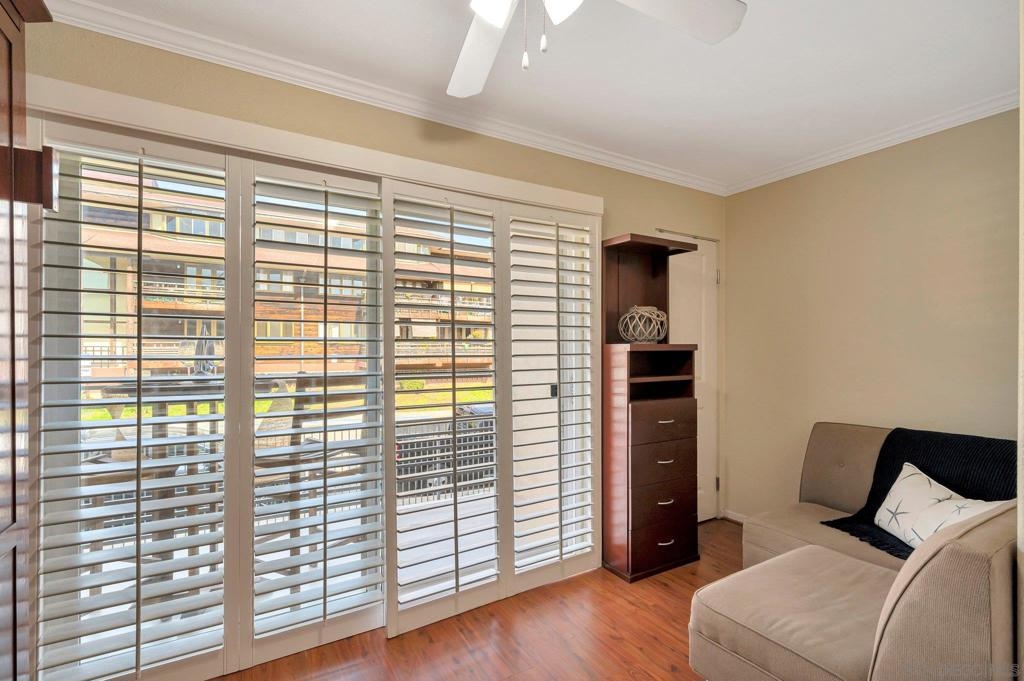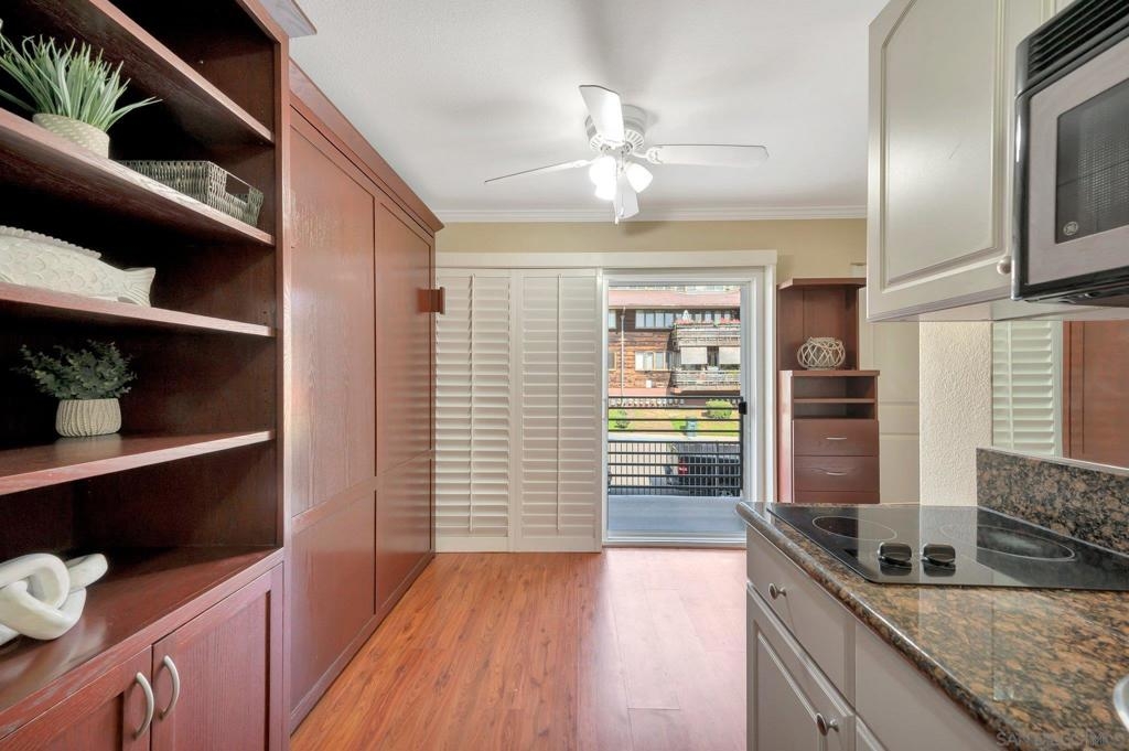 An extraordinary opportunity to live by the Bay in Point Loma! Talk about a dream location!!! This fantastic studio is right next to the world famous San Diego Yacht Club! This is truly a minimalist's dream come true! The studio offers a custom, solid wood Murphy Bed with fold-down table, and custom couch made to fit the space and a nice walk in closet. The unit also comes with its own covered parking space. The secure, gated condominium complex offers not only a pool with a view area of the bay but a communal quiet library-office space to read and enjoy, a workout and billiards room. This is Outdoor life at its best. The complex has pet policy of 2 pets not over 60 pounds also kayak & bike storage as well! You will feel like you are on a vacation every day! Morning Walks to Shelter Island lunch at the Brigatine, Liberty station for dinner options galore! Saturdays are a great day to walk to Point Loma Seafood for lunch and then grab a quick beer at Eppig Brewery or perhaps happy hour is your thing Bali Hai is the perfect sunset location. Sunday strolls on Kelloggs beach and a fun day fishing at the pier. All of these amazing places are within walking distance to your new home!