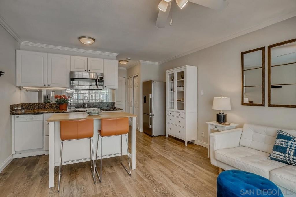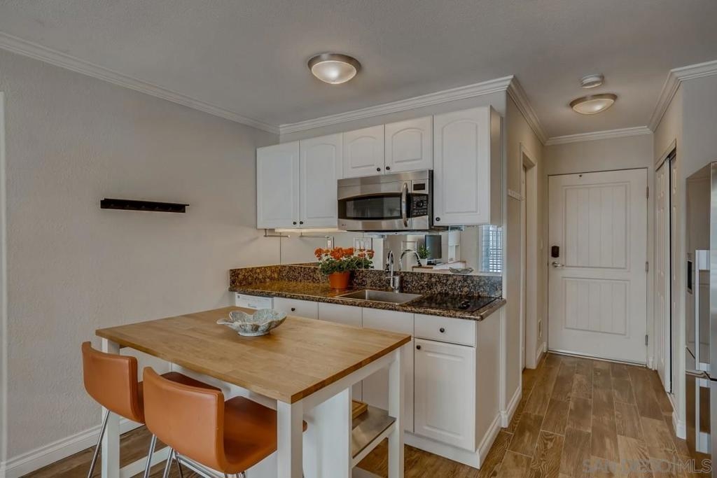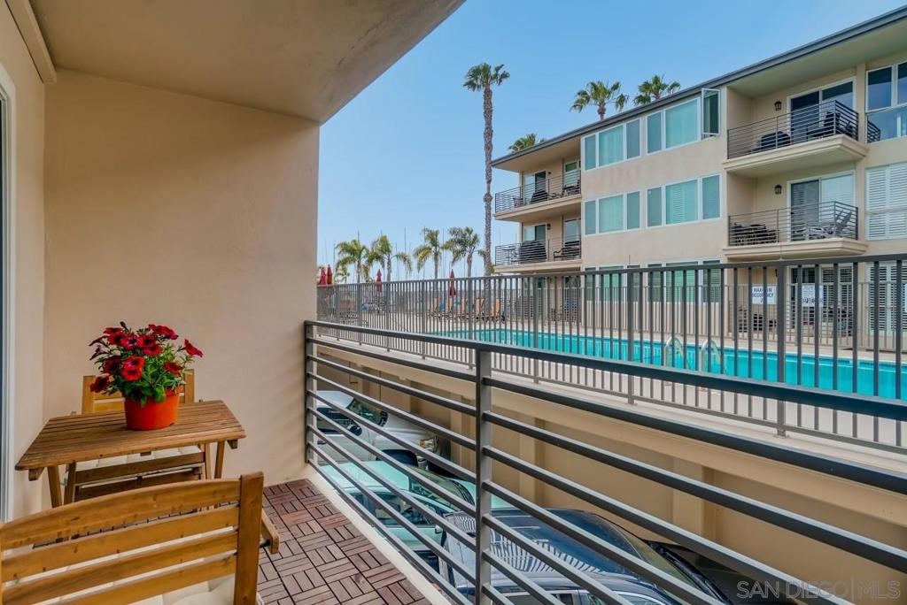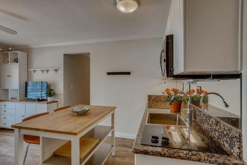 Beautiful one bedroom condo tastefully remodeled in 2017. Enjoy ceramic 'hardwood look' tile floors, plantation shutters, stone flooring and tub surround in bathroom. Upgraded kitchen has granite counters, butcher block island, electric cooktop, microwave/convection oven, dishwasher and top of the line refrigerator. Three closets will provide plenty of storage, W/D hookups in walk-in. Separate 'work from home' office area. Pool and harbor views from the balcony. Great location in Point Loma's La Playa with bay & beach access just outside complex, walk to shops, restaurants, grocery, and marina fun. The complex offers a gated entry, underground parking, elevator, Pool, BBQ, Full Gym. Complex Features: ,, Sewer: Sewer Connected