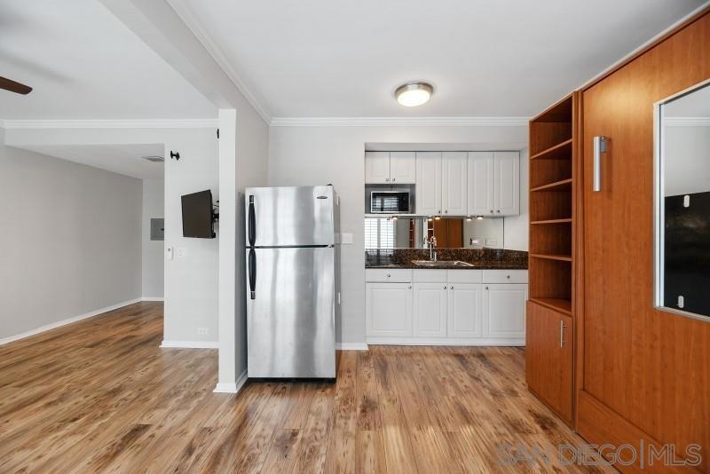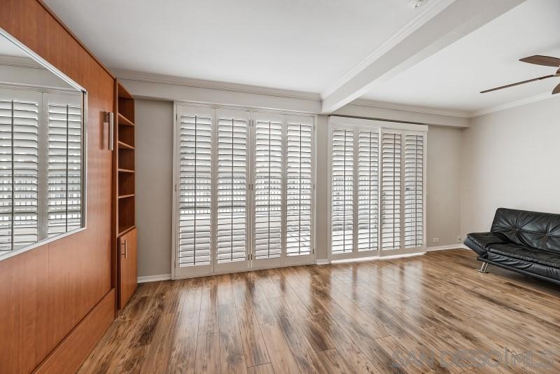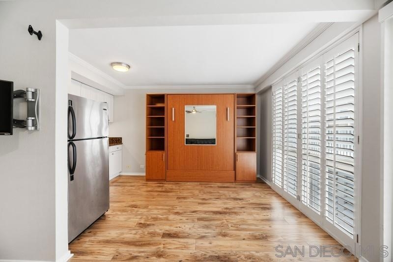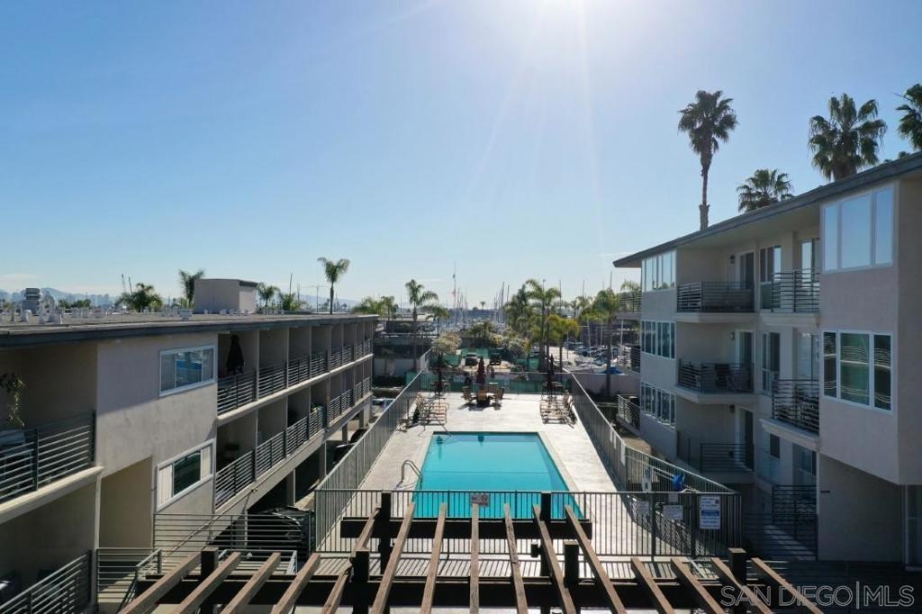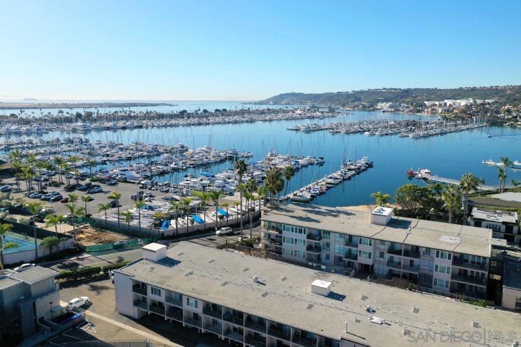 Experience the epitome of coastal luxury living at The Yacht Club Condos, where every day feels like a vacation! Enjoy peekaboo views of the downtown skyline, adding a touch of urban charm to your coastal retreat. This studio is one of the larger ones within the complex and situated on the most desirable building, closest to the water, ensuring you're greeted with soothing waterfront sights every day. From the moment you step inside, discover a thoughtfully designed space adorned with modern amenities and stylish finishes. Meticulously maintained, it features a queen-sized murphy bed, providing ample space and flexibility to optimize your living area, neutral laminate flooring exudes elegance and durability while custom shutters add a touch of sophistication. The kitchen and bathroom boasts granite countertops, elevating both functionality and aesthetics, while a full-sized bathroom with a tub provides a sanctuary for relaxation. A full-sized closet with mirrored doors provides generous storage space.This exceptional condo offers a rare gem—a oversized deeded underground parking space with opener, ensuring both convenience and security for your vehicle. Make your dream of owning a bayfront property a reality and live a beautiful lifestyle! Immerse yourself in the vibrant atmosphere of Point Loma's charming village, offering an array of fine restaurants, shops, and entertainment options and not to mention Kellogg Beach! With its prime location and appeal to a wide range of tenants, this condo presents a lucrative investment opportunity. Experience the vibrant energy of coastal living while being conveniently close to urban amenities, ideal for the modern professional. Perfect for those who cherish being near the water, whether you have your own boat or simply appreciate the marina lifestyle. Direct access to the bay and beach, offering unparalleled convenience and leisure opportunities. Enjoy panoramic vistas of the downtown skyline, creating an atmosphere of urban sophistication against the backdrop of serene waters. Shelter Island is a picturesque peninsula located in the Point Loma neighborhood of San Diego, California, renowned for its scenic beauty, recreational opportunities, and maritime attractions. Shelter Island boasts stunning panoramic views of San Diego Bay, downtown San Diego skyline, and the Pacific Ocean. Lined with palm trees and lush greenery, the island offers a tranquil and inviting atmosphere. As a hub for boating and maritime activities, Shelter Island features numerous marinas, yacht clubs, and boatyards. Many admire an array of sailboats, yachts, and fishing vessels dotting the waterfront, creating a vibrant nautical scene. The island offers a variety of recreational amenities for locals and visitors alike. Parks and open spaces provide opportunities for picnics, leisurely strolls, and outdoor gatherings. Waterfront promenades invite pedestrians and cyclists to enjoy scenic walks or bike rides along the bay. And for life at the beach, Kellogg Beach may be small in size, however it offers ample opportunities for waterfront activities and recreation. Visitors can enjoy swimming, paddleboarding, kayaking, and sunbathing in the pristine waters of San Diego Bay. The beach's proximity to Shelter Island and the San Diego Yacht Club also makes it a popular spot for watching sailboats and yachts glide across the bay.