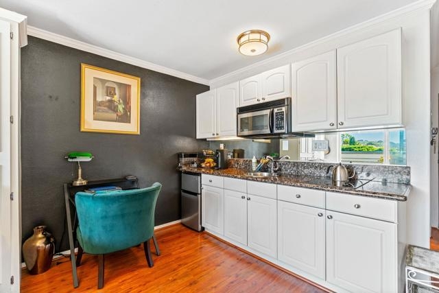 Rarely available top-floor studio with stunning marina views at Yacht Club Condominiums. Enjoy abundant natural light on the sunny side of the building. Adding to the appeal is the spacious patio with views to the marina and charming hillside homes of La Playa, perfect for outdoor relaxation and entertainment.Building amenities include a billiard room for entertainment, a refreshing pool, convenient gym, and a welcoming fire pit, providing a well-rounded and enjoyable living experience. Laundry facility just down the hall. One covered secured parking space. Minimum 30 day rentals. Ideal for those seeking a cozy retreat near the water - this property also comes with storage for paddle boards, kayaks and bikes! Explore the nearby beauty of the scenic walking trail along the stunning San Diego Bay and also the local charm at Kellogg's Beach, a favored destination among locals for its inviting shores and relaxed atmosphere, just a short distance from your doorstep. This area also offers a dynamic and convenient array of dining and shopping experiences.