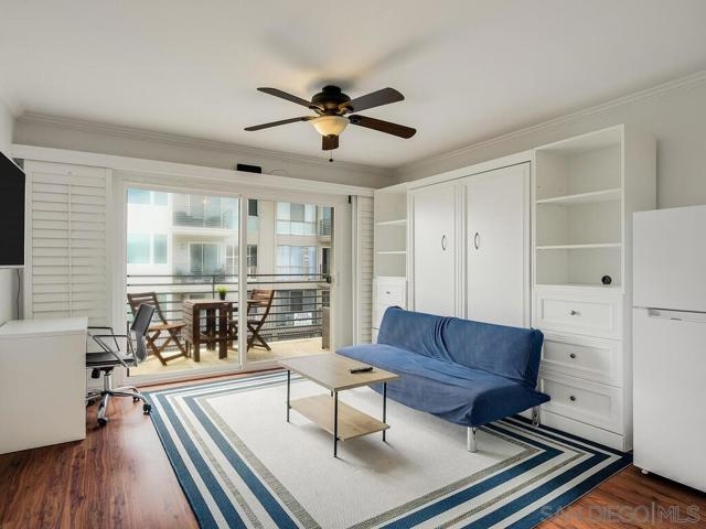 Rare Listing Opportunity: Location, Location, Views and Garage. A desirable 2nd story, top level studio is only 1 of 6 units located poolside, with bayside views, sunny westerly facing and has an enclosed garage for your vehicle or storage. Of the 123 units in the Yacht Club Condos (YCC), there are only 30 enclosed garages owned and available. A great value for a perfect vacation destination, retirement option, student housing or minimalist living. This studio condo and YCC complex has so many amenities and benefits to match the new owner's requirements. The unit offers an ample sized private balcony for morning coffee, lunch or dinners to capture a cool breeze along with a great view of the San Diego Yacht Club and San Diego Bay. Live, Play and Enjoy one of San Diego's exclusive and luxury walkable neighborhoods. Waterfront and marina style living, located in the heart of the prestigious La Playa district and nestled among the multimillion dollar bayside homes, this Yacht Club Condo complex is in Point Loma across from the prestigious San Diego Yacht Club and steps to Bessemer Beach, La Playa Trail to Kellogg Beach. Ride your bike or walk along Shelter Island's boat docks and peninsula. Visit the shops and restaurants and more, close by. Lounge on the pool deck, catch some sun or watch the sunset by the firepit by the pool, or even the fireworks on the 4th of July. * Ownership includes security gate entry to a 16x8 feet enclosed garage and WIFI enable mobile app door opener and security system, when connected to service.