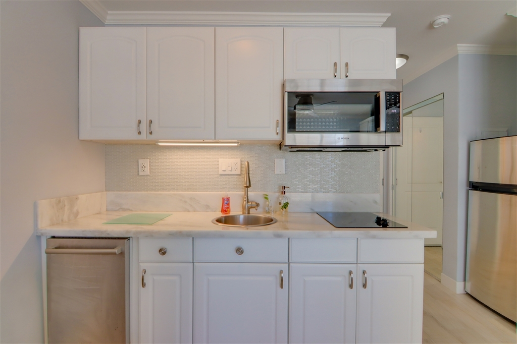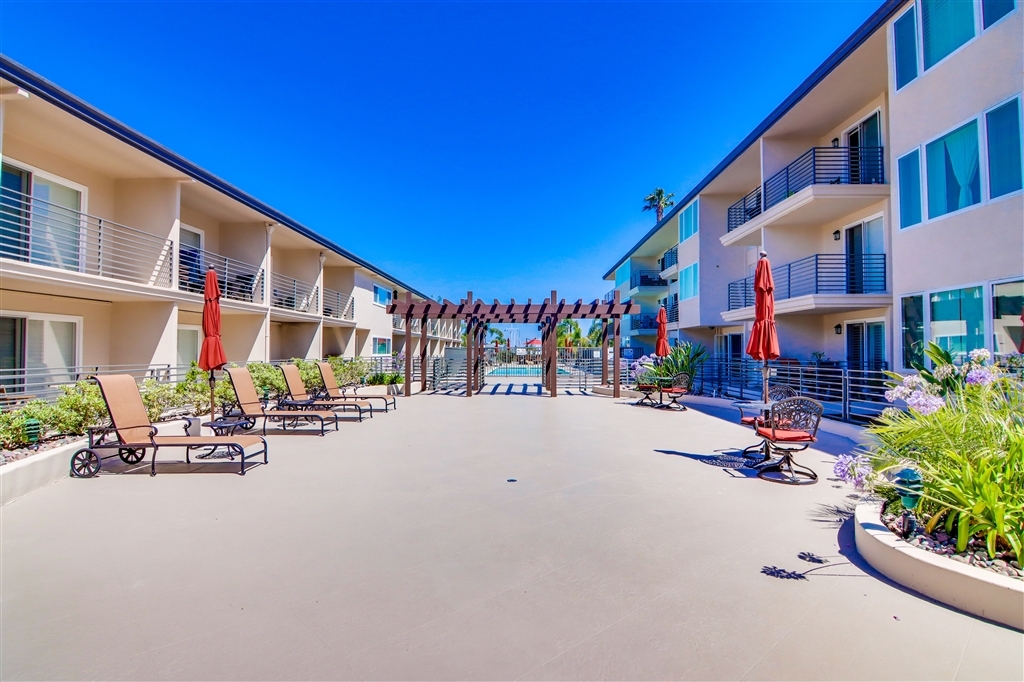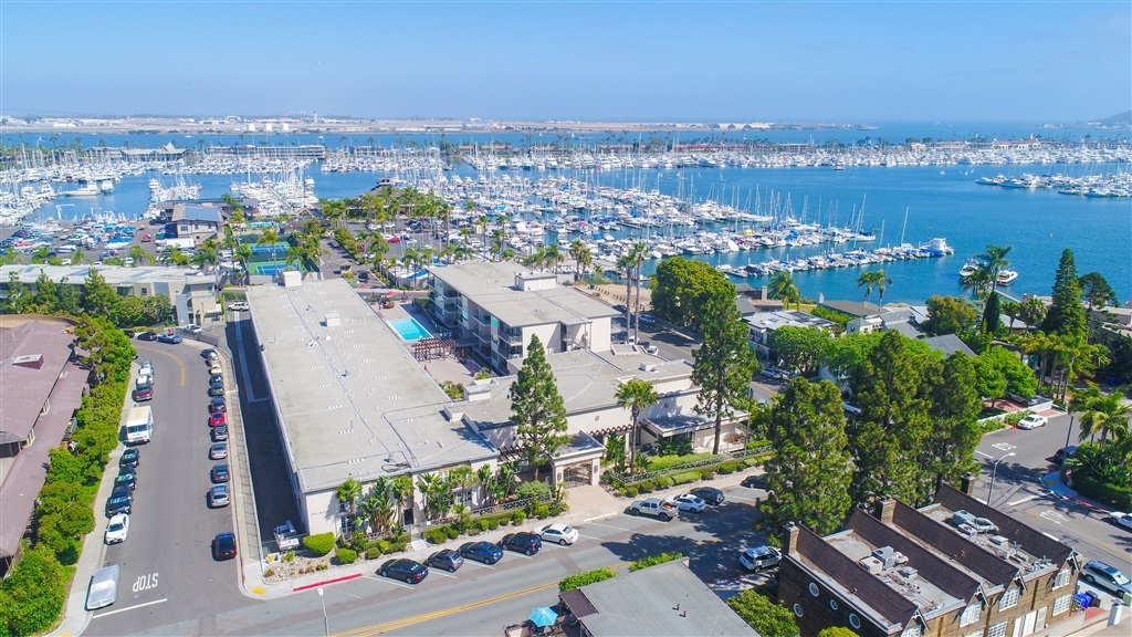 This is a must see unit. It is being sold furnished. The built-in along one wall has a murphy bed, a table and drawers for storage. The couch and chairs and ottoman will stay. The ottoman converts to a twin bed. Enjoy your morning coffee on the balcony with a view of the pool and the boats at the Yacht club. This is an excellent second home for those with boats at one of the nearby yacht clubs or as a first time home buyers home or for a student at Point Loma Nazarene University.. Neighborhoods: Point Loma Village Other Fees: 0 Sewer: Sewer Connected Topography: LL