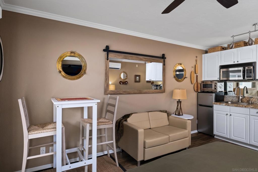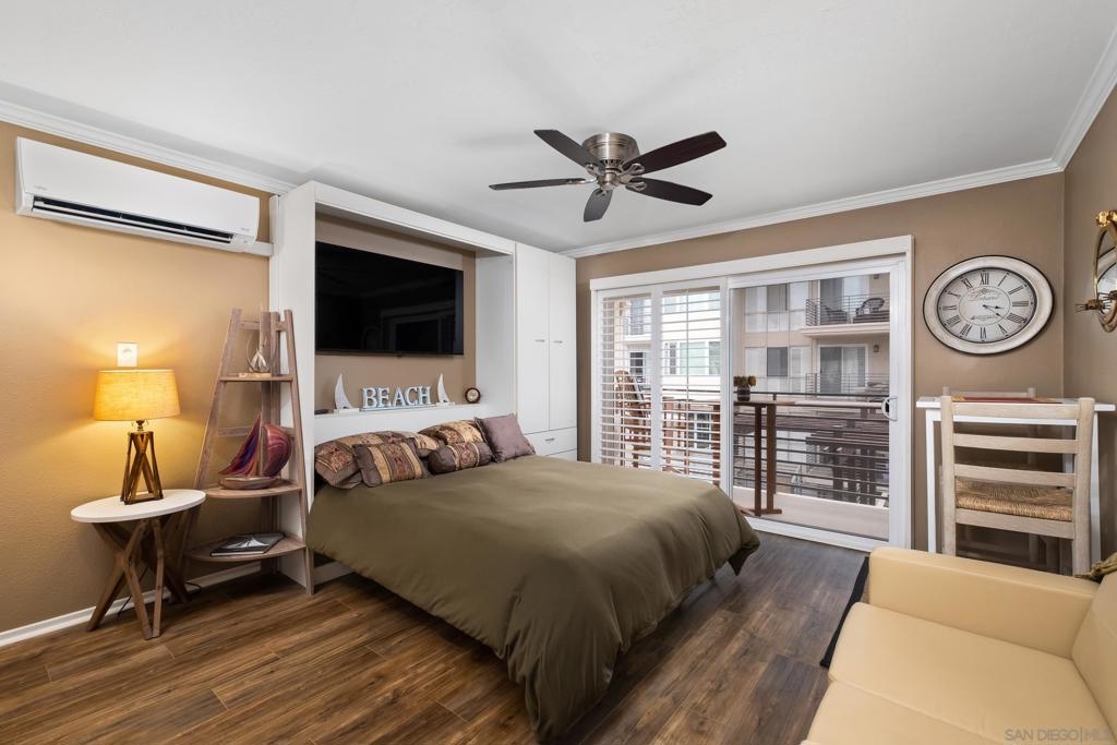 Look no further! This updated upstairs studio in the desirable Yacht Club condos is ready for you to call Shelter Island home! The efficient living space features open concept living, a queen size Murphy bed, and your own balcony over-looking the courtyard and Marina. Your studio is move-in ready with accommodating storage space, new flooring, and fresh paint where all you need to do is add your personal touches! Enjoy the many amenities offered within the complex such as gated entry, community laundry, storage for bikes or kayaks, elevator access to all levels, a fitness center, a community room, a seating area with a fire pit, and a heated pool! Just over 1.5 mile from San Diego International Airport and walking distance to nearby restaurants, shopping, Humphreys by the Bay, Point Loma seafoods, and so much more!