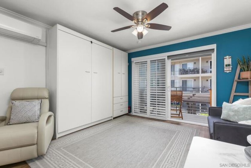 The current owners are open to seller financing with a reasonable down payment! Welcome to 1021 Scott Street, Unit 225 — where compact luxury meets Point Loma’s most scenic setting. This thoughtfully designed, recently remodeled, 288 sq ft studio offers style, efficiency, and stunning views, perfect for full-time living, a weekend getaway, or an investment opportunity. Perched above the marina, the home features a sliding glass door leading to a private balcony with sweeping views of the Point Loma hills, the marina, and the community pool. A space-saving Murphy bed adds flexibility and extra storage, while the kitchen shines with new greenish-blue granite countertops and ample cabinetry. The spacious, well-appointed bathroom includes a new walk-in shower. Updated AC unit! Just steps from the scenic Bessemer Path and La Playa Bayfront Beach, the community offers premium amenities such a pool, fitness center, billiards room, and residents’ lounge. Whether you’re sipping your morning coffee on the balcony or strolling the bay, this upgraded studio delivers big on lifestyle in a premier location.