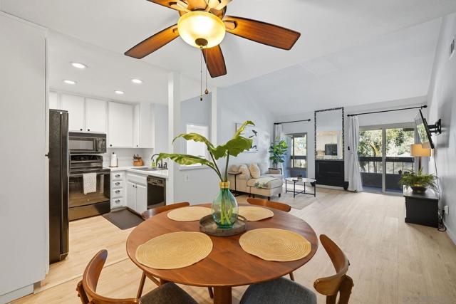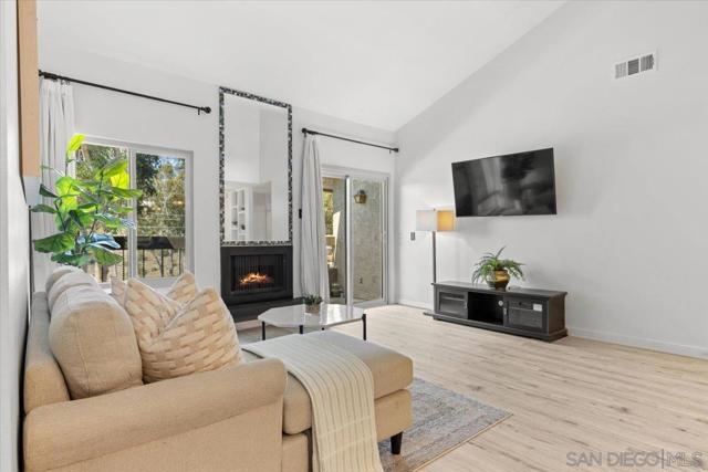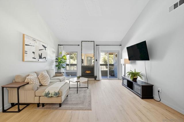 2BD/2BA Condo in the Heart of San Diego! This updated top-floor unit features vaulted ceilings, new dual-pane windows and sliding glass door, and light oak luxury vinyl plank flooring. Enjoy quartz countertops, a renovated bathroom, in-unit stacked washer/dryer, and a cozy fireplace. VA & FHA approved complex with pool, spa, sauna, gym, and tennis courts. Includes one covered parking spot with storage and an additional parking pass.