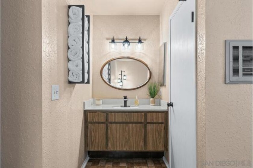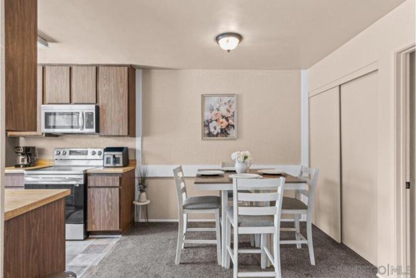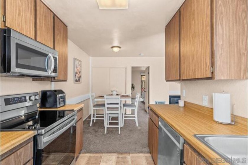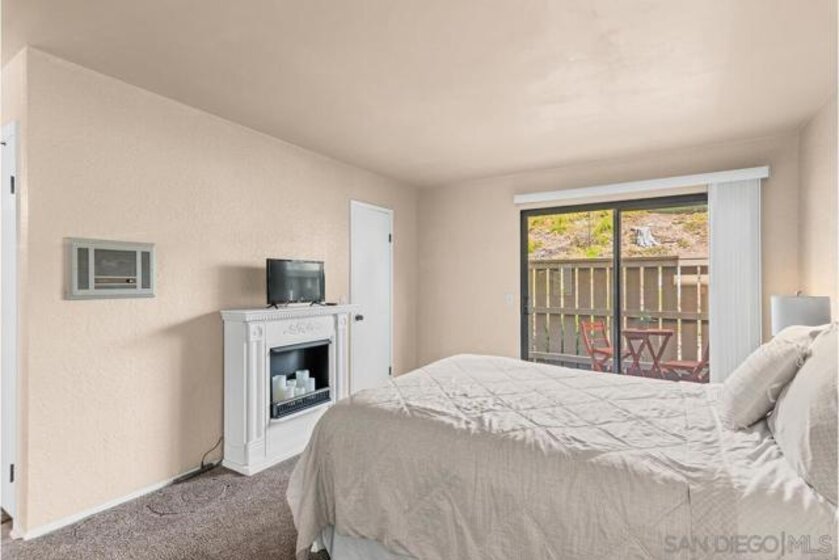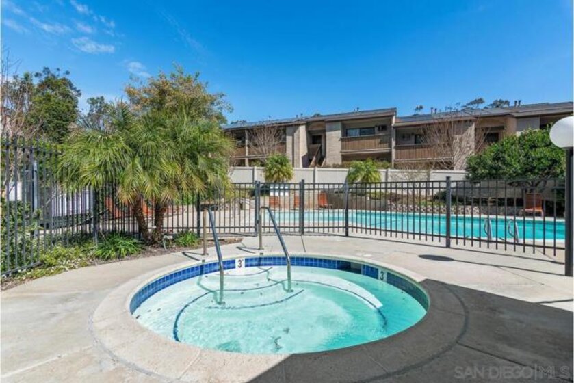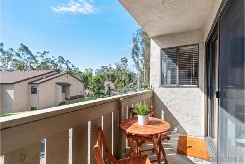 Scripps Ranch 92131 – lowest priced homeownership opportunity! First-floor condo with both a balcony and patio. Clean and move-in ready with a fireplace in the living room and a new walk-in shower. Newer stainless steel kitchen appliances. Spacious and bright. Freeway convenient yet surrounded by eucalyptus trees, giving the complex a quiet, peaceful feel. A beautiful community pool and laundry room are located just across the driveway from the unit. Pets allowed with very few restrictions. One covered parking space included. Sellers currently lease a second space from the HOA for $50 per month, which may be transferable to the buyer.