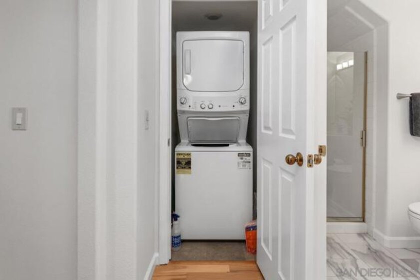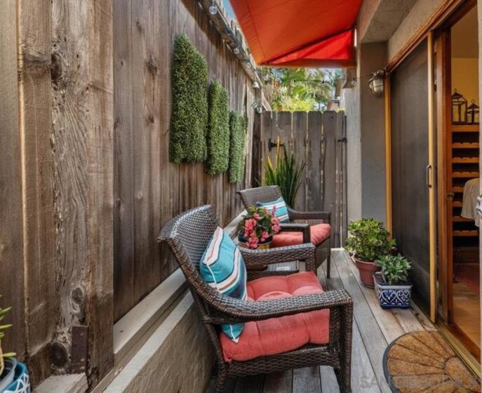 This stunning townhome checks all the boxes! Priced $35,000 below the most recent comp in the complex. Bay & downtown views. Charming South Mission Hills/Mid-Town pocket neighborhood. Great walkability to Little Italy & North Mission Hills. New hickory floors & paint in living areas. 175+ bottle wine room plus 250 bottle Vino Temp wine fridge. Remodeled kitchen with stainless appliances & quartz countertops. Formal dining area perfect for entertaining. Third bedroom/den adjacent to the living area has French doors leading to private deck of Ipe hardwood. Laundry closet with stacked washer/dryer. Dramatic staircase accented by large skylight to the Dual Master Suites creates an abundance of light to both the living areas and the stairwell. The Master Suites are separated by stairwell and afford maximum privacy. Wonderful view deck off the larger Master Suite. New roof 2024, exterior painted 2022. Complex re-piped 2021 with copper plumbing. Attached 2 car garage with direct access to unit and ample built-in storage. HOA fees were increased in March 2025 to build up the reserves. Truly an exceptional property in great location with easy access to beaches, downtown, airport, & freeway.