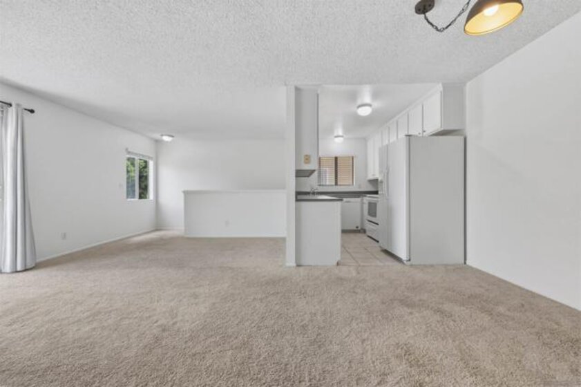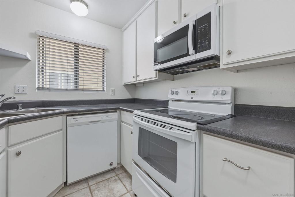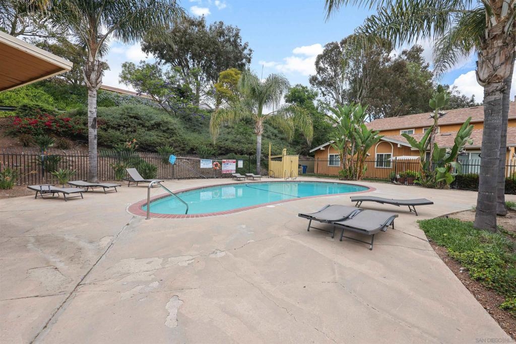 Excellent opportunity on this top floor unit in the VA-approved complex of Rancho Penasquitos Villas III. Located in the highly rated Poway Unified School District, tucked away at the back of the community, this home has been freshly painted and is move in ready! The spacious floor plan features two large bedrooms, one bathroom, a full-size in-unit laundry and the shared garage includes a private storage closet. Step outside to enjoy the beautifully maintained grounds with grassy areas, walking paths, tall trees, and a sparkling pool. In this pet-friendly community; the HOA covers water, sewer, trash, recycling, landscaping, exterior maintenance, and common areas. It's conveniently located near freeways 15 and 56, shopping, dining, trails, and parks, this is a fantastic opportunity to own a great home in a sought-after school district and community.