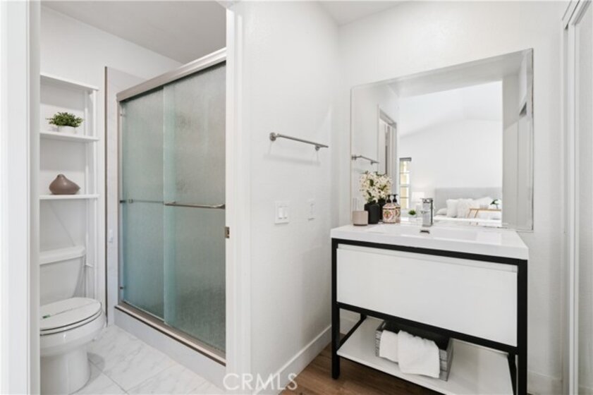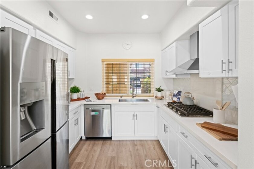 Welome to 10889 Creekbridge Place, a beautifully upgraded 2-bedroom, 2.5-bath home in the highly desirable La Cresta development of Sabre Springs in Rancho Bernado. Offering 1,049 sq. ft, this light filled two-story residence features high ceilings and a cozy living area that flows seamlessly into the dining space, all facing the private backyard for efforless indoor-outdoor living. Extensive updates include luxury vynle plank flooring, remodeled bathrooms, and a bright kitchen with white shaker cabinetry, quartz countertops, stainless steel appliances, and recessed lighting - creating a true move-in ready experience. Upstairs, the spacious primary suite offers pleasant views, recessed lighting, and a beautifully remodeled en-suite bathroom. The secondary master bedroom is also en-suite with its own private bathroom, generosly sized with backyard view and providing flexible space for guests, a home office, or additional living needs. The remodeled backyard provides a private, low-maintenance outdoor setting with upgraded hardscape, raised planter beds, and a spacious concrete patio perfect for relaxing or entertaining. Additional highlights include an attached two car garage equipped with an electric vehicle charger, a Nest smart thermostat for energy effciency and HOA maintained grounds. Ideally located near shopping, dining, parks, and with easy access to I-15, this home is also within highly regarded Poway Unified School Distrct. A rare opportunity to own a tastefully upgraded, turnkey home in one of North County San Diego's most sought after communities.