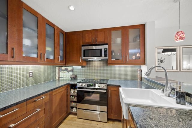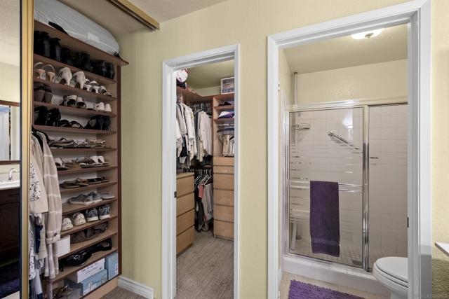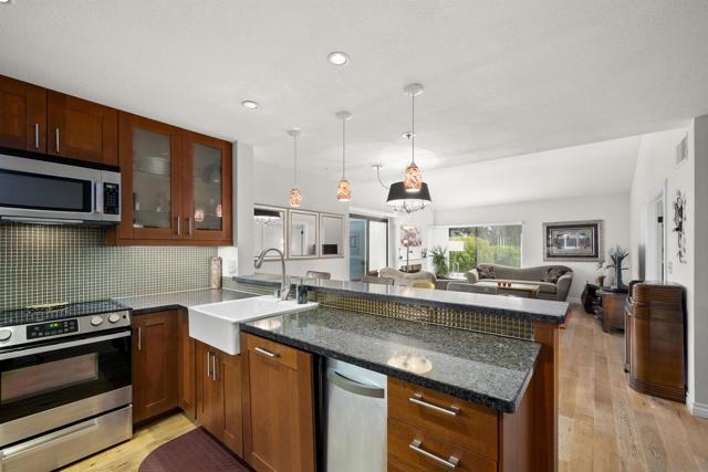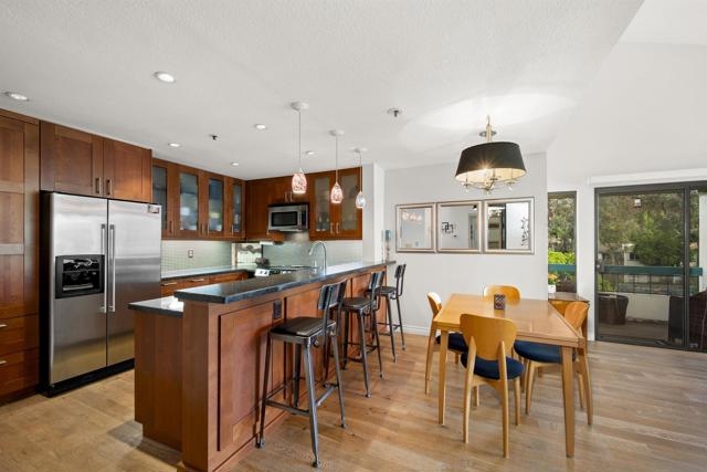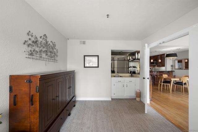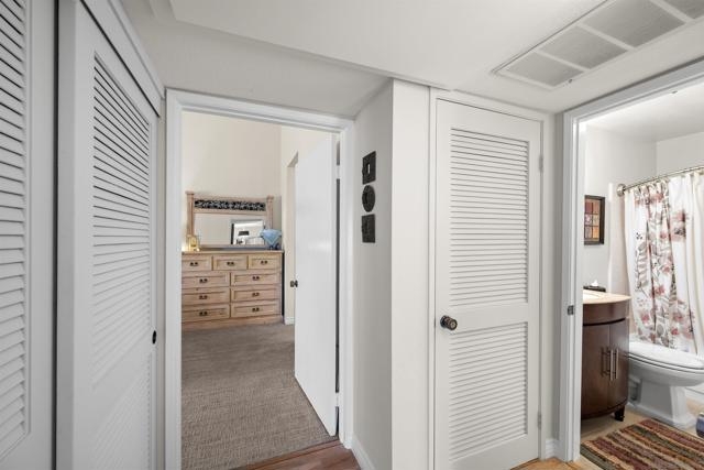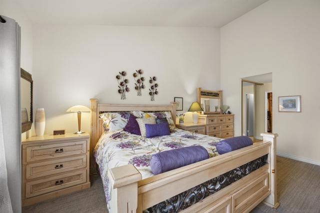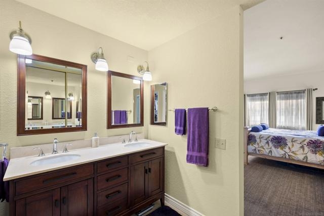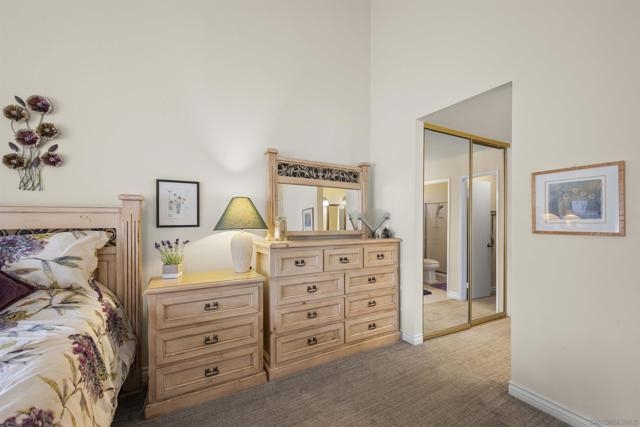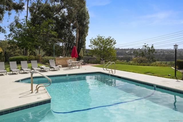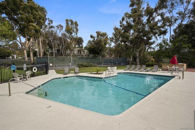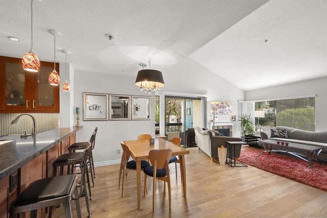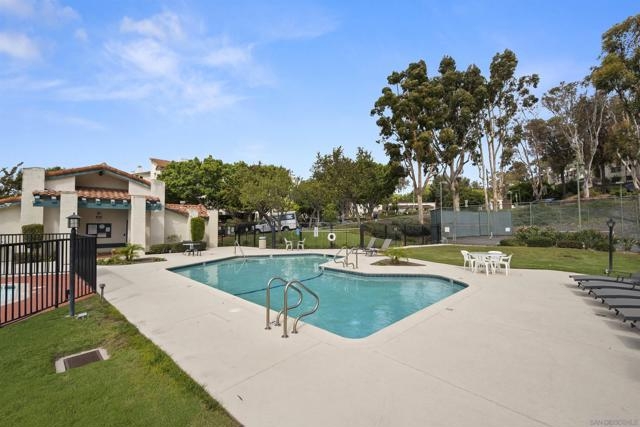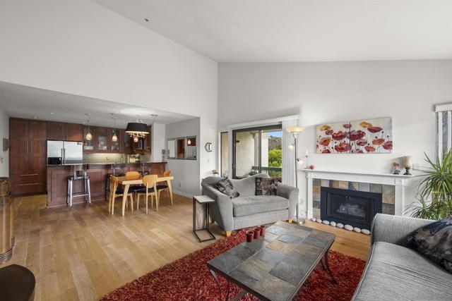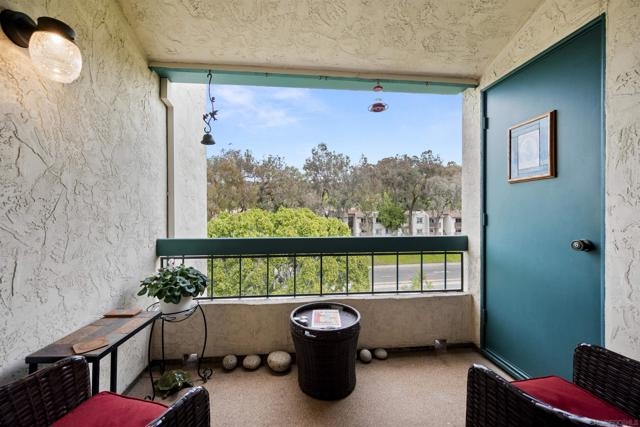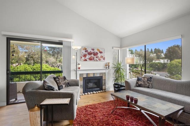 *Hidden Gem in the Heart of Tierrasanta!* Location, luxury, and lifestyle blend effortlessly in this beautiful top-floor corner unit, perfectly situated in Tierrasanta, San Diego’s Hidden Gem. This two-bedroom, two-bath condo has no shared walls, providing a peaceful and private retreat surrounded by lush greenery. The complex also has scenic views of the golf course. Step inside to discover vaulted ceilings, abundant natural light, and an open-concept living space accented by a cozy fireplace and a private balcony. The gourmet kitchen is designed to impress with rich cherry wood custom cabinetry, granite countertops, stainless steel appliances, a deep farmhouse sink, and elegant pendant lighting. The spacious primary suite boasts vaulted ceilings, a walk-in closet, and an extra mirrored closet, while both bedrooms have custom closets for optimal organization. Each bathroom has refined finishes, including sleek vanities and designer lighting. Additional amenities include in-unit laundry hookups and easy access to the elevator. Enjoy ample storage options, such as a private storage room off the balcony, extra storage in the second bedroom, and a dedicated storage locker next to the unit on the same floor. The home comes with one assigned parking space, plenty of guest and street parking, and the possibility to rent an additional assigned space through the HOA. Experience resort-style living with amenities like a sparkling pool, spa, and BBQ overlooking the golf course, tennis and pickleball courts, and a relaxing sauna. All of this is just moments from shopping, dining, top-rated schools, and major freeways, yet nestled in a peaceful, park-like community. It’s a truly unique residence in one of San Diego’s most desirable neighborhoods. Come see for yourself why Tierrasanta is the Hidden Gem that locals never want to leave.
