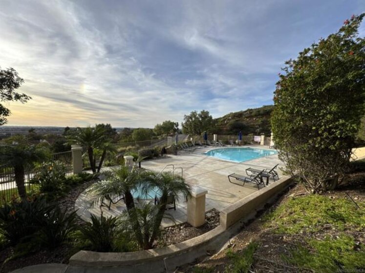 This rare ground floor, end unit townhome features stunning panoramic western views from almost every room. The open-concept design lays out well for the whole family, with bedrooms strategically located on opposite sides of the main living area. Flooded with abundant natural light, the living area features a cozy fireplace for relaxing evenings. Includes a full-size washer/dryer in-unit and a 2-car garage located directly across from your front door. Take a dip in the beautiful pool or unwind in the relaxing spa. Located just minutes from the I-15, making your daily drive a breeze.