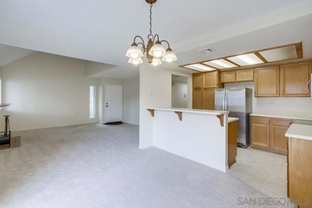 Rarely available first floor two bedroom, two bath unit with high ceilings and a private patio! Beautifully refreshed with brand new carpet and freshly painted interior. The open floor plan features a spacious living room with a charming fireplace, a bright kitchen with solid surface countertops, abundant storage, and full size indoor laundry. The primary bedroom is en-suite with a large walk in closet, while the secondary bedroom offers two closets for extra storage. The private patio is perfect for relaxing or entertaining. Bernardo Pines is a beautiful community surrounded by mature trees and lush park-like landscaping. Residents enjoy resort style amenities including two pools, spas, a fitness center, tennis court, and play areas. HOA covers water, trash, and sewer. Conveniently located near hiking and biking trails, fantastic restaurants, shopping, and the Rancho Bernardo Library with easy freeway access. Located within the award winning Poway Unified School District. This is the perfect place to call home. Rarely available first floor two bedroom, two bath unit with high ceilings and a private patio! Beautifully updated with brand new carpet and freshly painted interior. The open floor plan features a spacious living room with a charming fireplace, a bright kitchen with solid surface countertops, abundant storage, and full size indoor laundry. The primary bedroom is en-suite with a large walk in closet, while the secondary bedroom offers two closets for extra storage. The private patio is perfect for relaxing or entertaining. Bernardo Pines is a beautiful community surrounded by mature trees and lush park-like landscaping. Residents enjoy resort style amenities including two pools, spas, a fitness center, tennis court, and play areas. HOA covers water, trash, and sewer. Conveniently located near hiking and biking trails, fantastic restaurants, shopping, and the Rancho Bernardo Library with easy freeway access. Located within the award winning Poway Unified School District. This is the perfect place to call home.