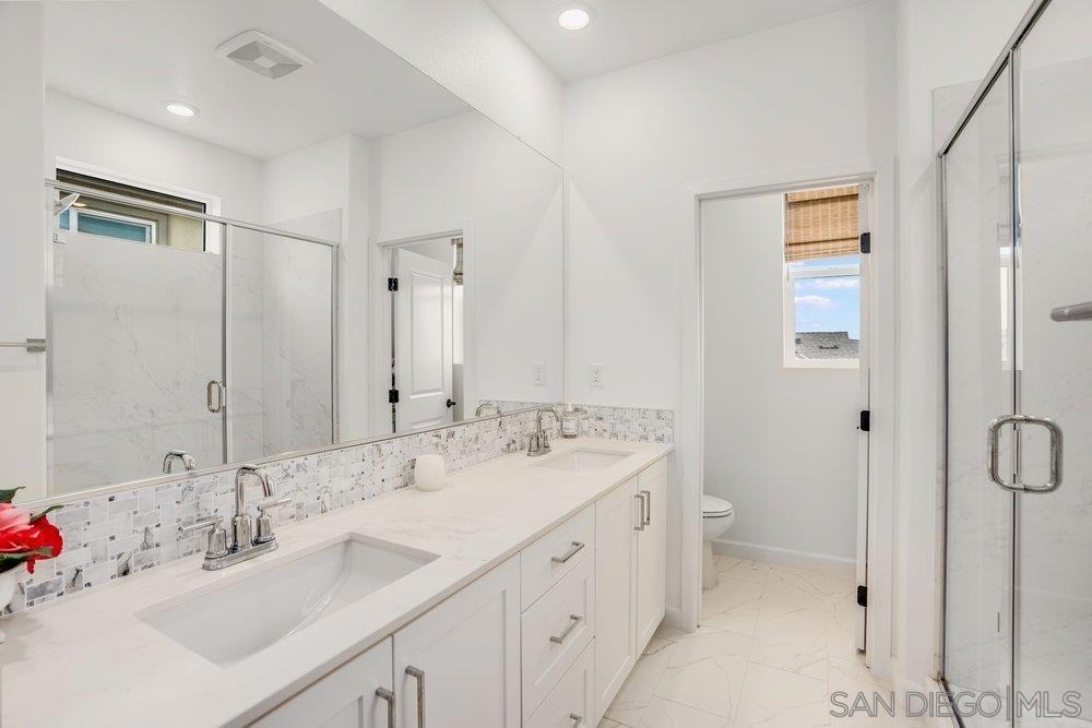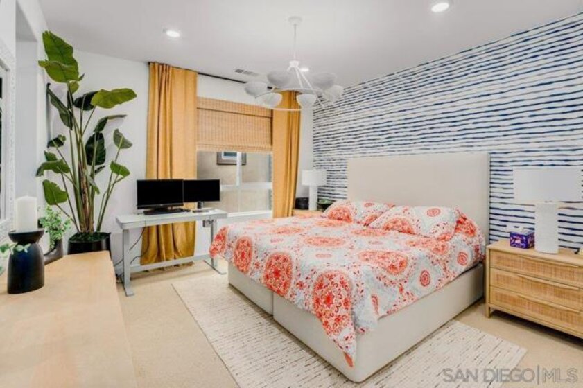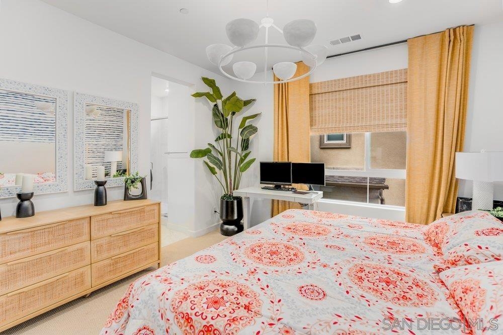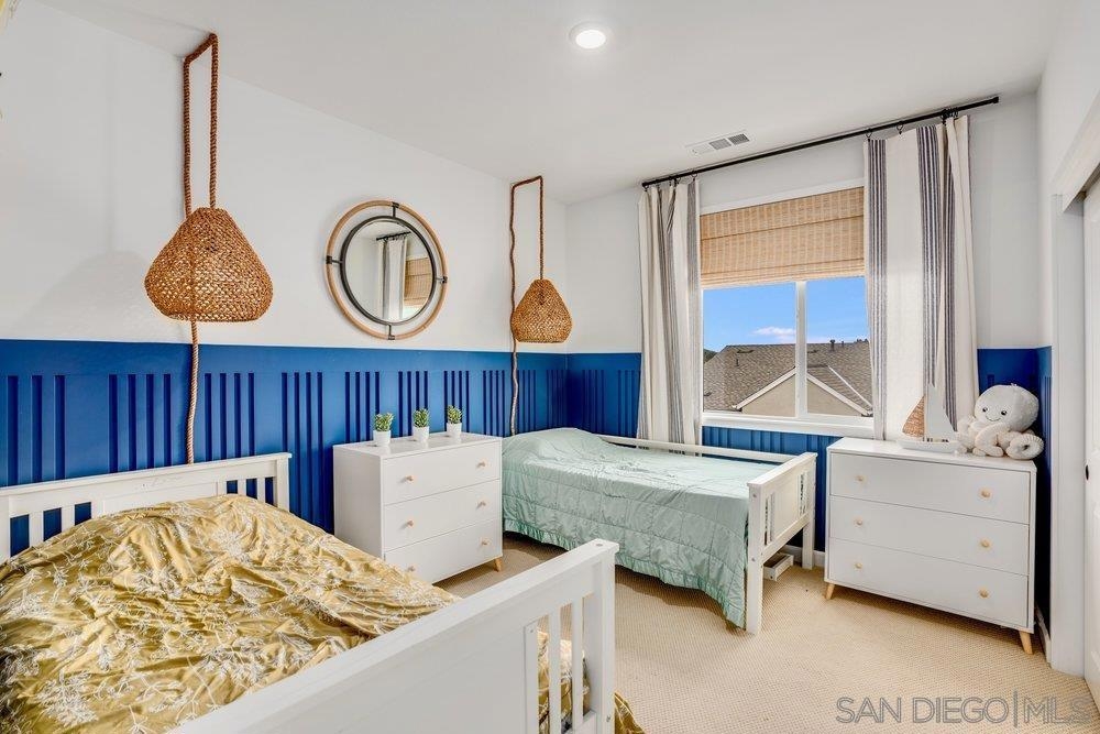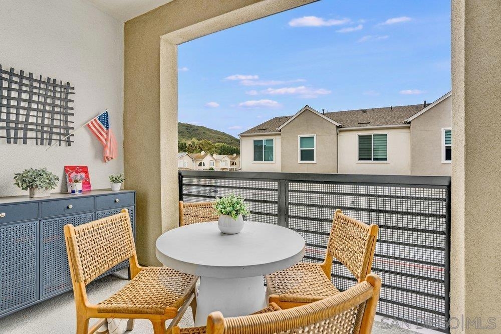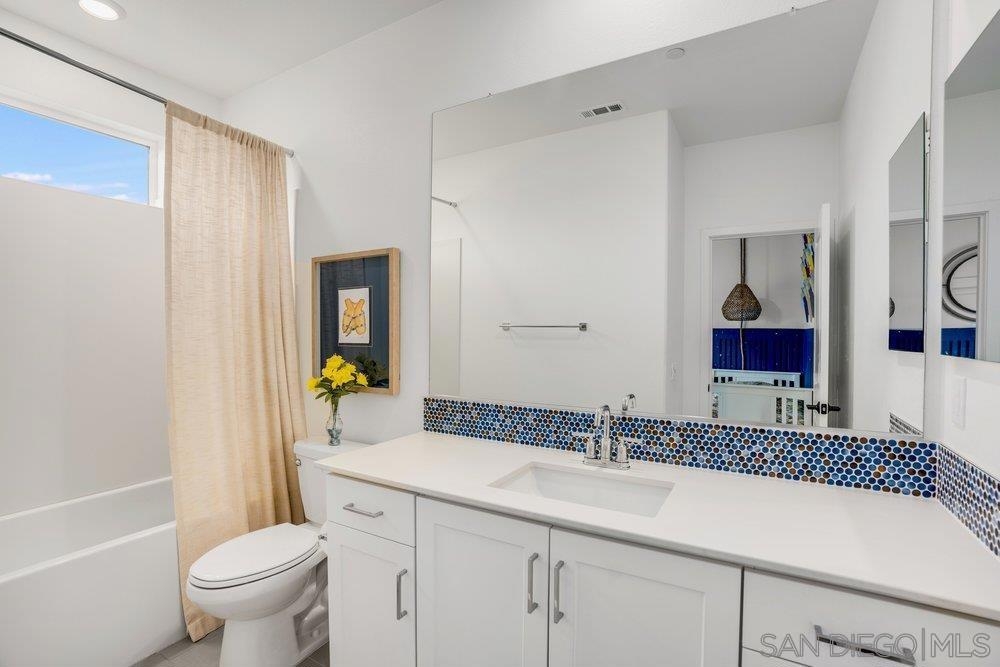 Welcome to 11903 Owen Lane, a highly upgraded former model townhome in the desirable Clementine neighborhood within master planned community of The Trails in Carmel Mountain. This beautifully designed three-story residence offers 2 bedrooms, 2.5 bathrooms, and approximately 1,250 square feet of thoughtfully crafted living space, along with a spacious two-car garage and fully paid-off solar, providing both comfort and long-term energy savings. As a former model home, it showcases extensive upgrades and designer finishes throughout. The main living level features a bright, open-concept floor plan filled with natural light and elevated by upgraded ceiling fixtures, custom lighting, and premium details that set this home apart. The stylish kitchen serves as the centerpiece, complete with upgraded appliances, sleek cabinetry, modern hardware, and a large center island that flows seamlessly into the spacious Great Room—perfect for entertaining or everyday living. Just off the kitchen and living area, a private deck creates effortless indoor-outdoor living, ideal for relaxing, dining, or hosting guests. Upstairs, both bedrooms are thoughtfully positioned for privacy. The beautiful primary suite offers a peaceful retreat with a walk-in closet and a well-appointed en-suite bathroom featuring upgraded finishes. The secondary bedroom also includes its own bathroom, making it perfect for guests, a home office, or family living. A convenient powder room on the main floor adds functionality and ease for visitors. Residents also enjoy access to the resort-style amenities within The Trails, including a lap pool, pickleball and basketball courts, playground, dog parks, and scenic walking trails. Conveniently located near I-15 and SR-56, with shopping and dining in Carmel Mountain Ranch, 4S Ranch, Del Sur, and UTC, and situated within the highly regarded Poway Unified School District. Move-in ready and loaded with upgrades, this former model home offers elevated living in one of Rancho Bernardo’s newest and most sought-after communities.