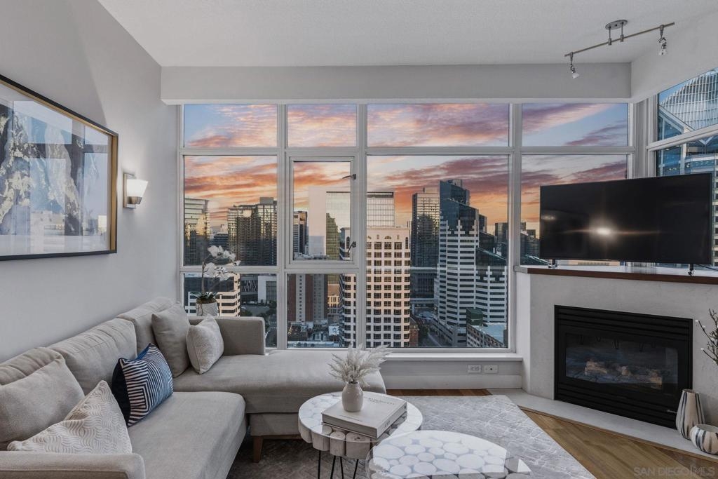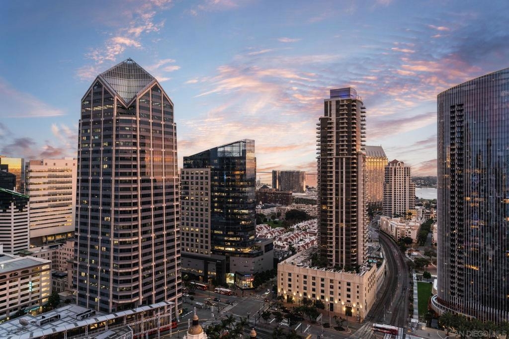 Perched high on the 29th floor of The Grande South, Residence 2903 showcases breathtaking panoramic views of the bay, city skyline, and beyond through expansive floor-to-ceiling windows. This highly coveted floor plan offers a seamless blend of comfort and sophistication, featuring a spacious private terrace ideal for taking in San Diego’s iconic sunsets and vibrant waterfront energy. Located in one of Downtown’s most desirable pockets, you’re just moments from the waterfront, the charm of Little Italy, and an array of acclaimed dining and lifestyle destinations. A beautifully landscaped promenade just outside the building connects you effortlessly to it all. Residents of The Grande South enjoy a full suite of resort-style amenities, including a heated pool and spa, sauna and steam room, fitness center, clubhouse, guest suites, and secure guest parking. With 24-hour concierge and security, along with thoughtful services like dry-cleaning pickup and delivery, this is elevated high-rise living at its finest.