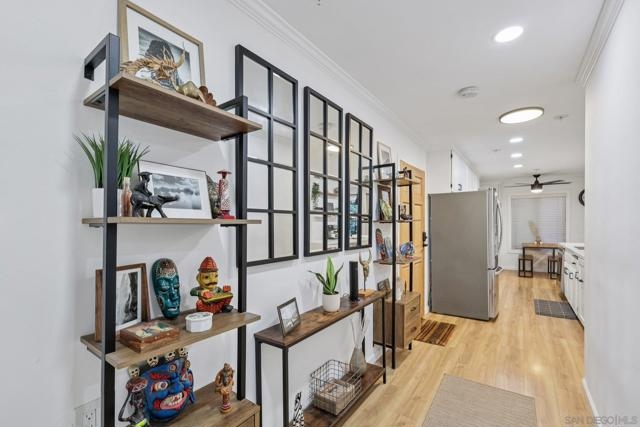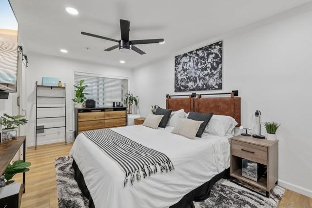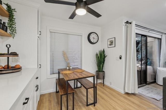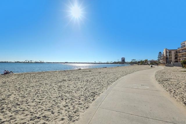 Live the quintessential coastal lifestyle in this beautifully updated Pacific Beach condo—just steps from the sun, sand, surf, and sparkling Sail Bay! Ideally situated in one of San Diego’s most coveted beachside neighborhoods, this home offers exceptional access to Mission Bay, the ocean, boardwalks, bike paths, water sports, dining, cafés, and endless outdoor recreation right outside your door. Recently remodeled with modern finishes and a soothing neutral palette, this light-filled, move-in-ready retreat blends relaxed coastal living with contemporary style. The open floor plan features a bright living and dining area flowing seamlessly to a serene private balcony—perfect for enjoying bay views and refreshing sea breezes. The stunning kitchen boasts stone countertops, a large center island with breakfast seating, stainless steel appliances, and abundant workspace for cooking and entertaining. A spacious gallery hallway leads to the primary suite, complete with plenty of closet space and a stylish barn door entry to the spa-inspired bath featuring dual sinks and a walk-in shower. The versatile guest bedroom, outfitted with a Murphy bed, is ideal for guests or a home office, and is serviced by an additional beautifully updated full bath. Additional highlights include two secure parking spaces and access to the Santa Susanna community amenities—a sparkling beach-side pool, BBQ area, and direct access to the bay and sandy beaches. Experience effortless coastal living where every day feels like a vacation.