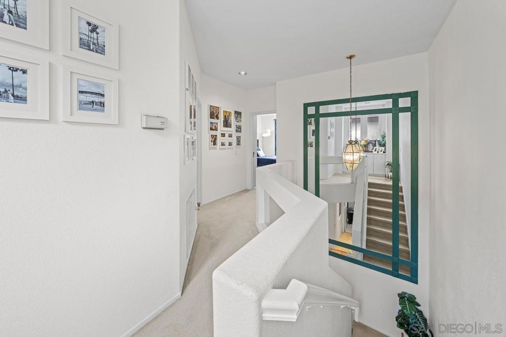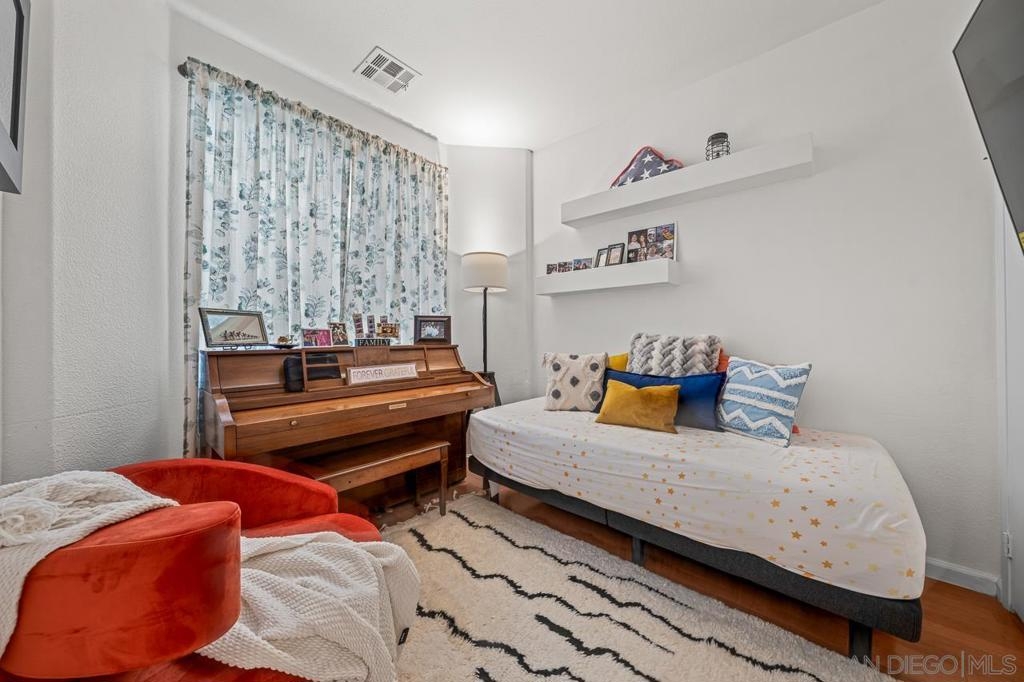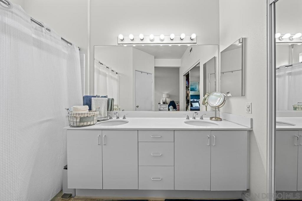 Welcome to this spacious two-story townhome located in a VA/FHA-approved complex. Featuring 9-foot ceilings on both levels, the home offers a bright, open, and inviting atmosphere throughout. A standout feature is the highly desirable downstairs flex space, complemented by a nearby powder room. This versatile area can easily serve as a third bedroom, home office, gym, or additional storage, making it a valuable extension of the living space. Upstairs, both generously sized bedrooms include private en-suite full bathrooms, providing ideal separation and privacy. The primary suite is further enhanced by a large walk-in closet. The kitchen has been tastefully upgraded with a newer stovetop, oven, dishwasher, and microwave, while the carpet has been replaced in recent years, adding to the home’s overall appeal. Enjoy seamless indoor-outdoor living with an oversized 21' x 10' private patio, significantly larger than typical townhome outdoor spaces and perfect for relaxing or entertaining. Additional highlights include an attached two-car garage and a full-size washer and dryer located in a dedicated laundry room with ample space for additional storage. Ideally situated just steps from the community pool and fitness center, this home is set within a quiet, well-maintained community. The location offers exceptional convenience, just moments from Poway Road with abundant shopping, dining, and entertainment options, as well as nearby parks and scenic hiking trails. Commuters will benefit from easy access to both the 15 and 56 freeways. The HOA provides excellent value by covering roof maintenance, trash pick-up, water, landscaping, etc. helping to simplify homeownership and reduce upkeep responsibilities. Located within the highly regarded Poway Unified School District, widely recognized as one of the top-rated districts in San Diego County, this home presents an outstanding opportunity to enjoy comfort, flexibility, and convenience in a prime location. This is a must see!