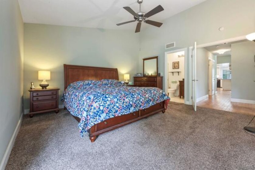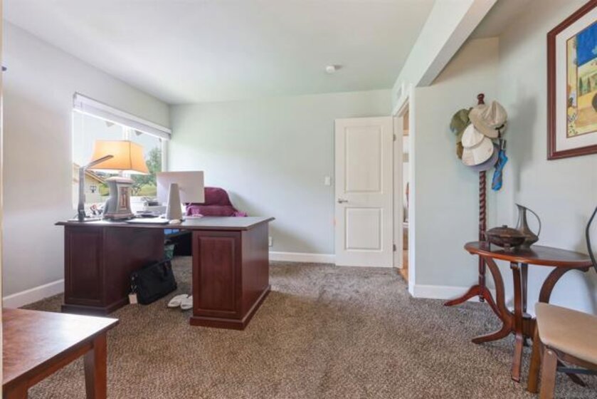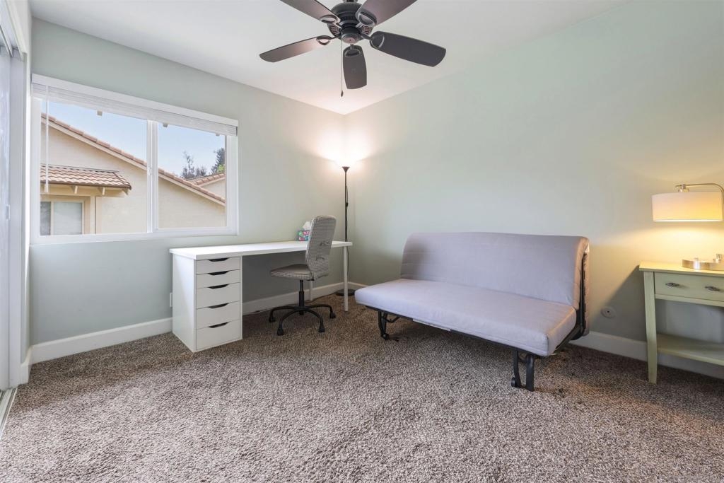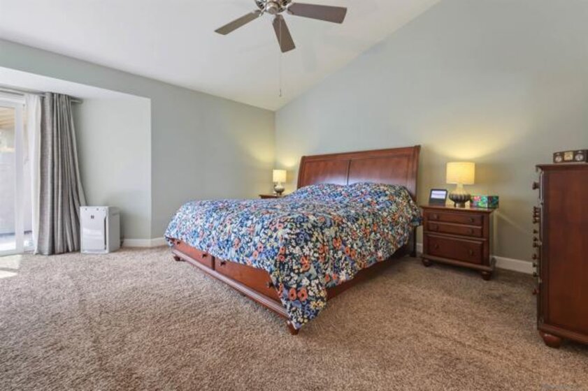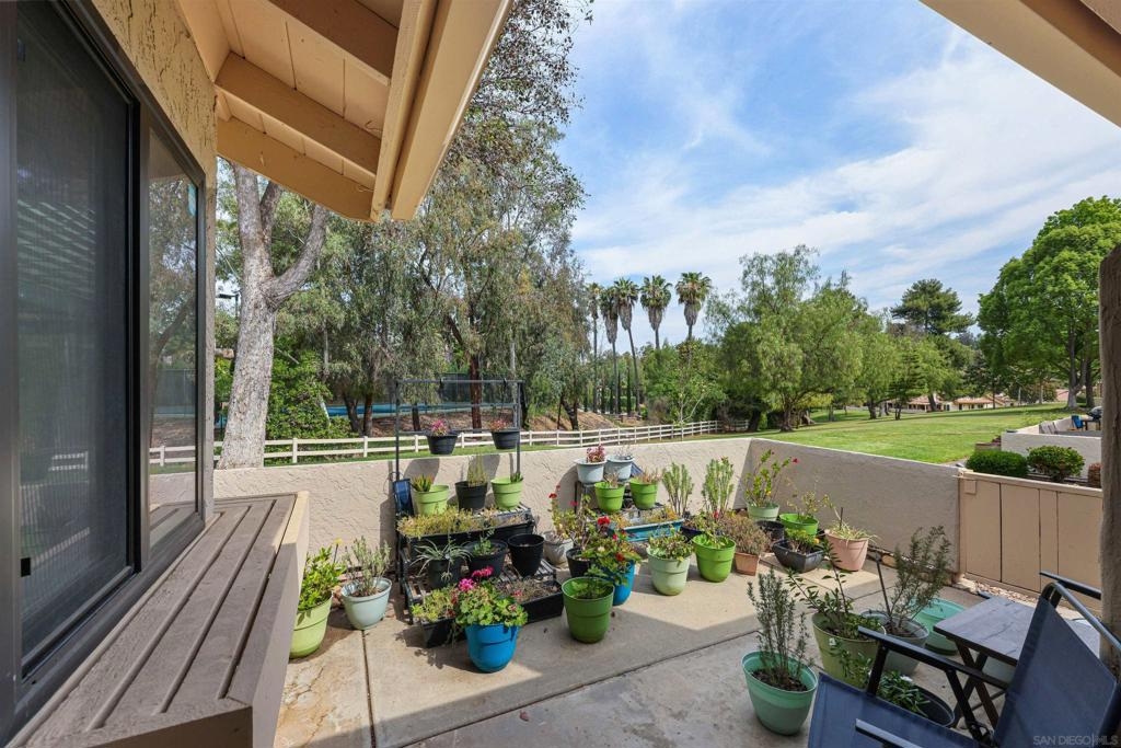 Located on a quiet cul-de-sac and backing to open green space in the 55+ Oaks North Community, this single-story end-unit villa lives like a detached home. With vaulted ceilings and no one above, it offers a bright, open, and private feel. Natural light fills the family room and kitchen, which features granite countertops, white wood cabinetry, stainless steel appliances, and a vent hood. The back patio is ideal for entertaining, relaxing, or gardening, with a peaceful, park-like setting overlooking the greenbelt and community lawn. Additional highlights include an indoor front-loading washer and dryer, wood and tile flooring, and newer windows and sliding doors. The primary bedroom offers vaulted ceilings, a spacious walk-in closet, and a private patio with direct garage access. Conveniently located between the Rancho Bernardo Winery and Oaks North Golf Course, residents also enjoy access to the Oaks North Community Center with amenities such as a pool, pickleball, tennis, and more.