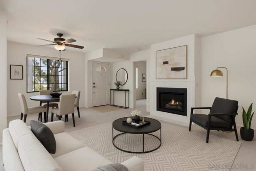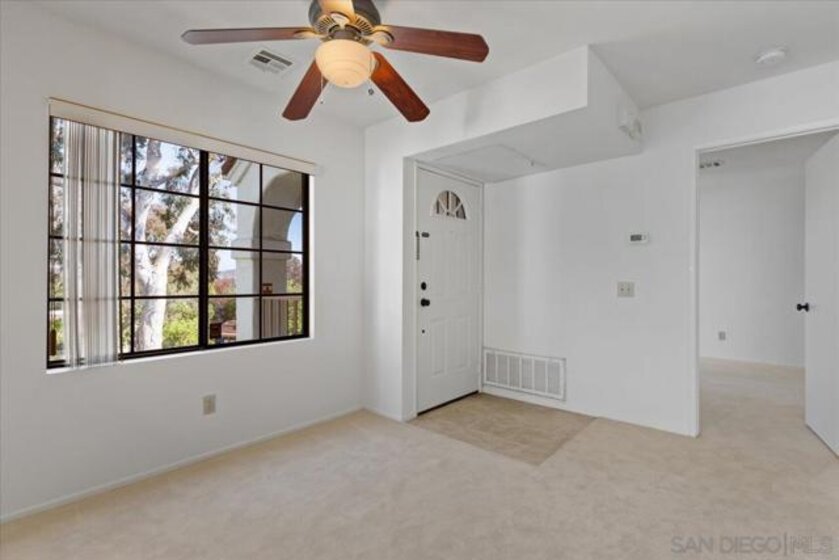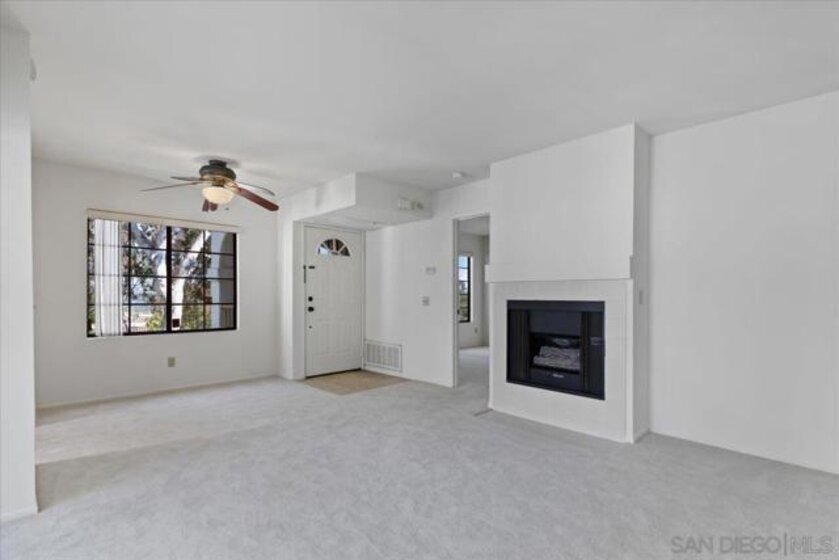 PRICED TO SELL! Located in the sought-after Sun Ridge Vista community of Rancho Peñasquitos, this beautifully updated one-bedroom, one-bath residence effortlessly blends comfort, convenience, and contemporary charm. Perched on the second floor, the home welcomes you with abundant natural light streaming through oversized windows and a cozy fireplace that anchors the bright, airy living room. The open-concept layout flows seamlessly into a dining area and an inviting covered patio—perfect for relaxing or entertaining—with the added benefit of extra storage and an in-unit washer and dryer. The efficient kitchen features gas cooking, generous cabinetry, and ample counter space, while the spacious bedroom offers a large closet and an updated ensuite bath. Recently enhanced with fresh paint, new carpeting, and central air and heating, this turnkey home also includes a designated covered parking space. Residents of Sun Ridge enjoy access to resort-style amenities including three sparkling pools, a spa, and a well-equipped fitness center. Just steps away lies Sun Ridge Vista Park, offering a playground, basketball courts, and walking trails. With its prime location near shopping, dining, and easy freeway access, this home is a must see! VA AND FHA APPROVED COMPLEX!