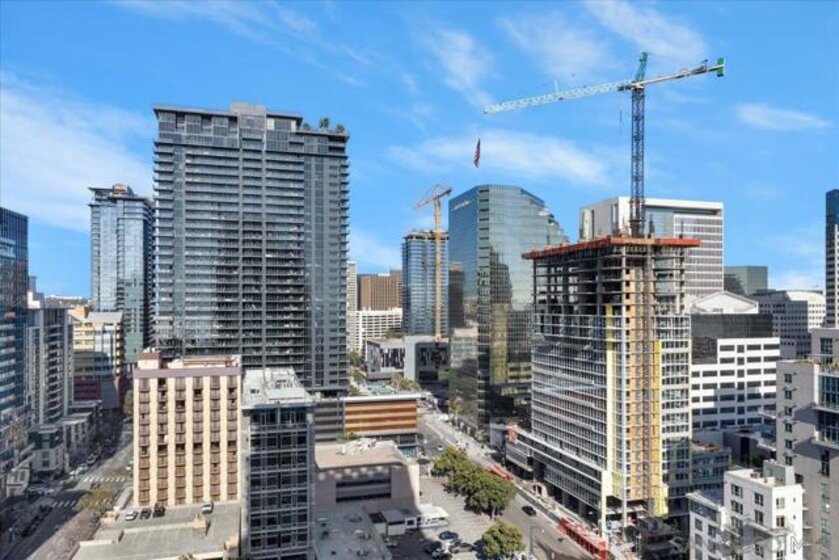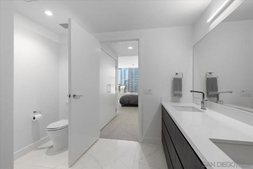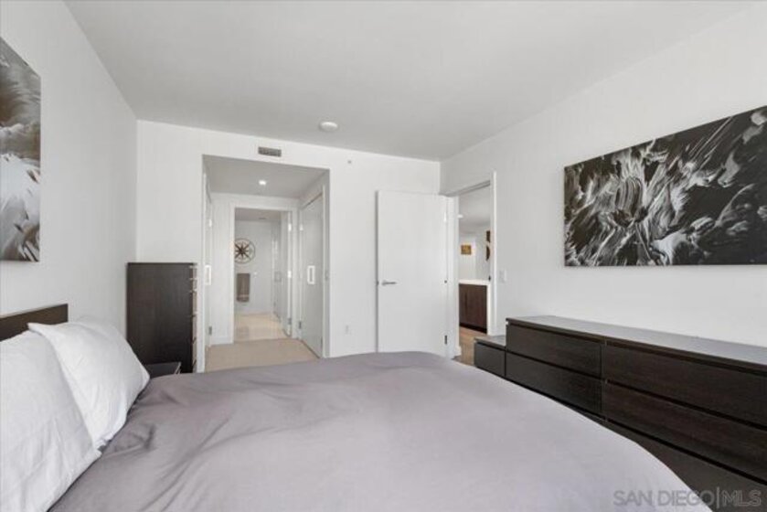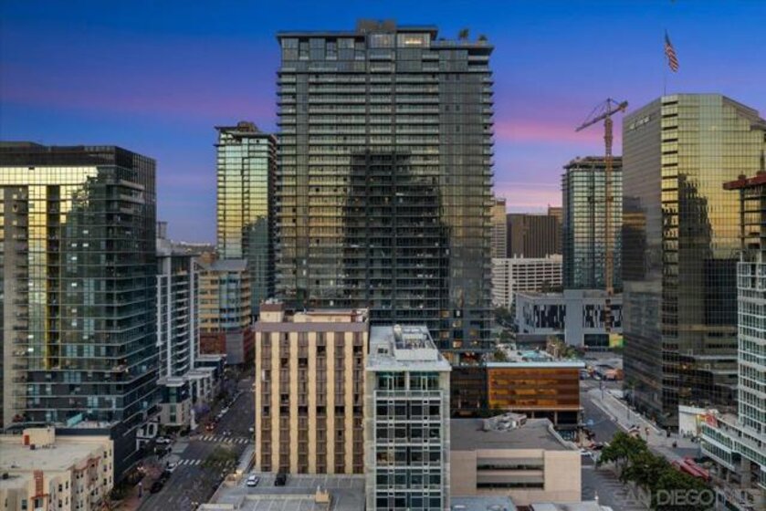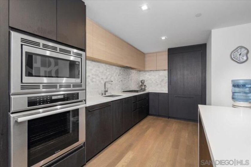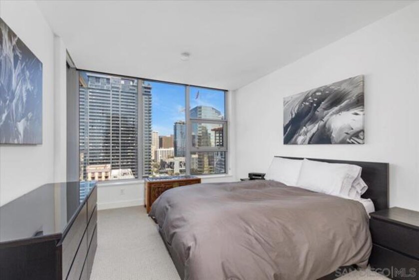 BEST VALUE IN SAVINA! CITY VIEWS! Perched on the 20th floor, this stunning east-facing residence offers an ideal split-bedroom layout (no shared wall), perfect for privacy and functionality. Located at the vibrant intersection of Little Italy and the Columbia District, Savina is one of Bosa’s premier developments renowned for exceptional design and quality craftsmanship. It is Downtown San Diego’s newest and most luxurious condo high-rise. Step inside to find an open-concept floor plan filled with natural light, hardwood flooring, and expansive windows that frame the panoramic city skyline views. The gourmet kitchen is a chef’s dream with a large waterfall-edge quartz island, hidden paneled Thermador refrigerator, and soft-close cabinetry. The dining area is currently used as a home office, making the most of the versatile layout. Both bedrooms feature blackout shades and the private balcony is perfect for enjoying San Diego’s cityscape and watching planes fly in. Additional highlights include a large private storage unit and one of the most amenity-rich offerings in Downtown: 24-hour concierge and security, resort-style pool and spa, state-of-the-art fitness center, steam and sauna rooms, resident lounge with a full kitchen and BBQ area, EV charging, dog run and pet spa, bicycle tune-up station, and more. Experience high-rise living at its finest!