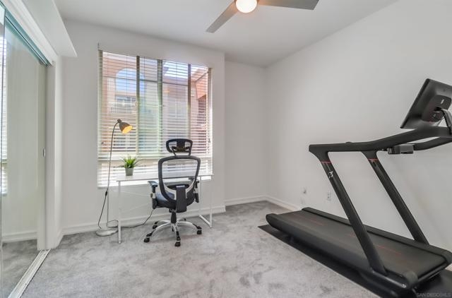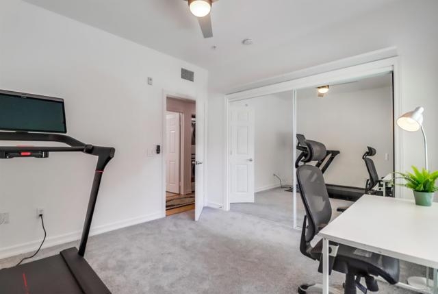 Welcome home to this stylish and comfortable 2-bedroom, 2-bath condo with 1,013 sq ft of open living space. This bright and inviting home features a kitchen with all the right upgrades - stainless steel appliances, granite counters, and a clean subway tile backsplash. The kitchen flows directly into the living and dining areas, making it perfect for entertaining or everyday living. Enjoy peaceful mornings and relaxing evenings on your quiet, courtyard-facing balcony. The unit includes two tandem parking spaces with convenient storage on the back wall, ideal for seasonal gear, or extra belongings. Residents enjoy access to resort-style amenities including a sleek resident lounge with TV and pool table, a newly updated fitness center complete with spa and sauna, EV charging stations, and multiple BBQ areas throughout the community. Within walking distance to Balboa Park, the historic Gaslamp Quarter, restaurants, coffee shops, bars, Petco Park, and everything Downtown has to offer. Experience downtown living at its best, close to everything, yet tucked away in a tranquil, amenity-rich setting.