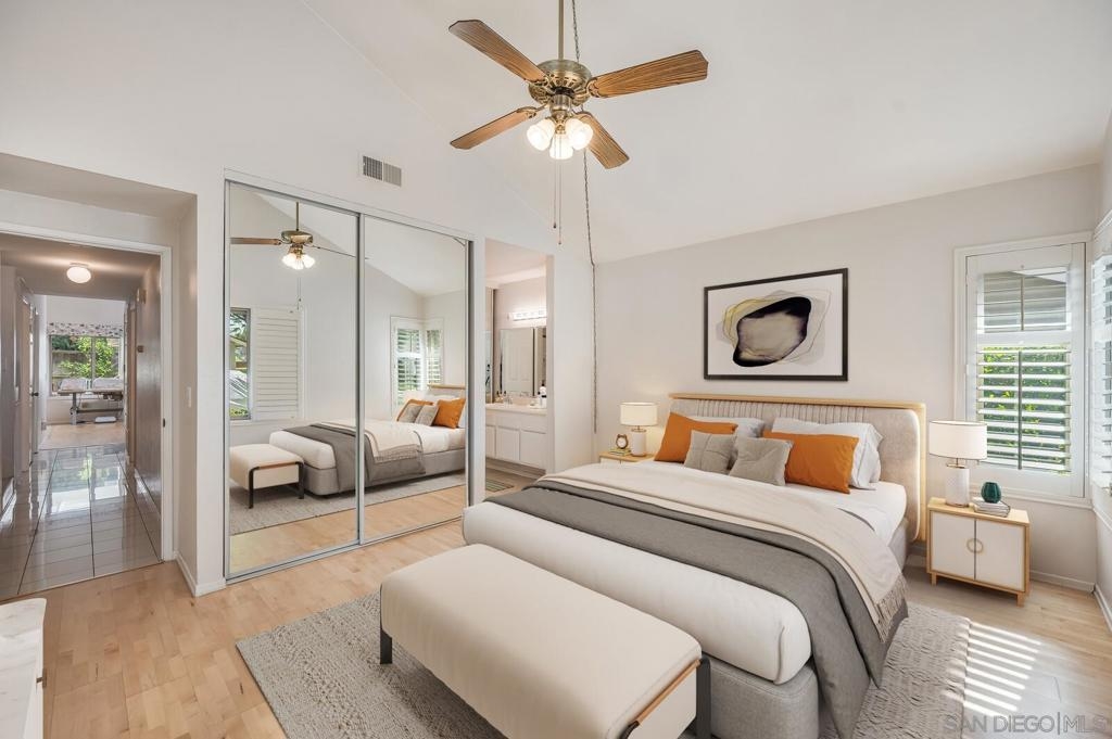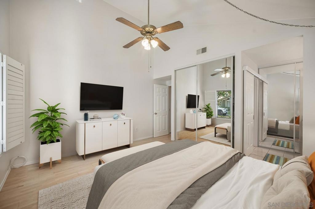 Welcome to your dream townhome in the coveted Bay Ridge community! This meticulously maintained 3-bedroom, 2-bathroom home displays true pride of ownership while boasting vaulted ceilings throughout, an inviting, open floor plan and an abundance of natural light, perfect for modern living and entertaining. Spanning 1,629 square feet, the spacious layout includes a versatile loft that can easily serve as an optional fourth bedroom, a cozy home office or a kid’s play area. Enjoy the bright and airy ambiance throughout the living and dining areas, seamlessly connecting to the well-appointed kitchen featuring custom wood cabinets, granite countertops and custom pull out drawers. Step outside to your private patio, ideal for morning coffee or evening relaxation, surrounded by the tranquil sounds of a zen water fountain and the leaves of the lush greenery, an avocado tree, passionfruit vines and a lemon tree rustling in the breeze. Let your imagination run wild and plant your very own fruits, vegetables, greens, herbs or spices in the beautiful custom greenhouse. Other upgrades include a newer roof, newer dual pane windows and doors, custom window shutters, wood-like floors, newer paint and closet organizers. With near perfect weather year-round, the Bay Ridge community offers a wealth of amenities, including a sparkling community pool for sunny days, a children's park for family fun, and picturesque, tree-lined streets perfect for leisurely strolls. This townhouse combines comfort, convenience, and community, making it the perfect place to call home. VA & FHA approved!