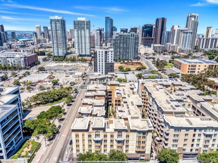 Welcome to 1480 Broadway Unit 2101 – a spacious, FHA & VA approved 1-bedroom, 1 bathroom condominium in the heart of Downtown San Diego’s Union Square. This 913 square feet unit offers a bright and open layout with well-maintained carpet, recessed lighting, central A/C and large windows that fill the home with natural light. The kitchen features granite countertops, sleek cabinetry, a gas stove, refrigerator, dishwasher, and built-in microwave—all included. The bedroom offers a generous retreat with a walk-in closet, while the in-unit electric washer and dryer add convenience. A private patio with rare street-level entry provides easy access and is perfect for pet owners or those on the go! This home includes 1 assigned parking space, EV charging stations, and guest parking via app. Community amenities include a gym, resident spa, sauna and a clubhouse available for private events. Enjoy walkable access to top-rated restaurants like Buona Forchetta, Kingfisher, and The Mission. Minutes from San Diego City College, Petco Park, Gaslamp Quarter, and Seaport Village, with easy access to public transit, cafes, and cultural attractions. Urban living at its best—ideal for first-time buyers, investors, or those seeking style and convenience!