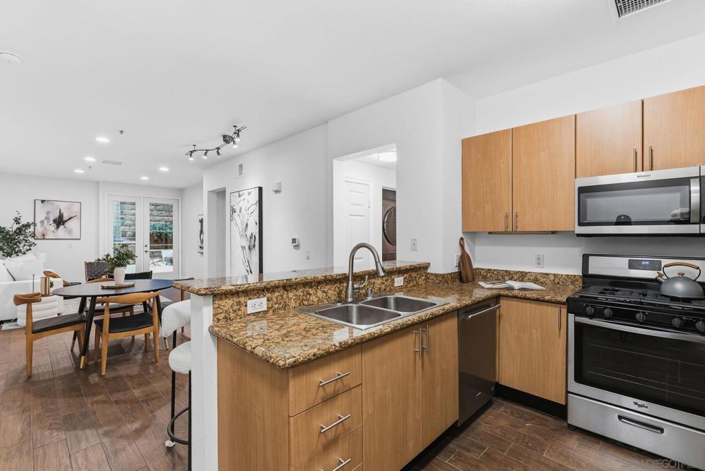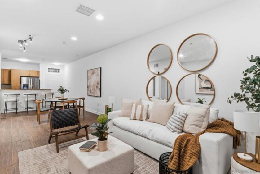 Welcome to this highly sought-after residence offering an impressive 1,100 sq ft of private outdoor space. Designed for seamless indoor–outdoor living, the home opens effortlessly to an expansive yard, perfect for entertaining or unwinding in a tranquil setting. The front entry welcomes you through a private courtyard framed by lush greenery and tranquil water features, creating a serene arrival experience. Elevators located just steps away provide direct access to your parking spaces in the upper garage, blending everyday convenience with refined urban living. Enjoy the rare comfort and privacy of a single-family-home feel in the heart of the city. Union Square is ideally positioned across the street from the 4.1 acre East Village Green park which is a wonderful addition to the neighborhood! The development will include a community center, children’s park, off-leash dog areas, cafés, plazas, multiple lawn areas, a performance pavilion and underground parking. With a Walk Score of over 90, Union Square is also steps from San Diego City College with convenient access to major freeways: 163, 5, and 94. Adding to the neighborhood’s safety and peace of mind, the San Diego Police Department (SDPD) headquarters is located directly across the street. Union Square Condominiums deliver exceptional value with below-average HOA fees. Amenities include a fitness center, pool, sauna, clubhouse with a pool table, and courtyards with BBQs. The HOA also covers key utilities such as water and trash, adding even more value for homeowners. An on-site property manager ensures smooth day-to-day operations, while multiple communal EV charging stations make powering your electric vehicle easy.