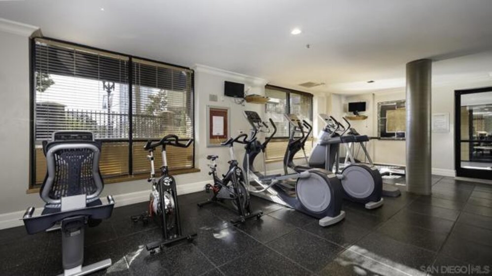 ** 2.75% Assumable VA Loan ** Sleek and unique exude in this "pride of ownership" premium top-floor end unit at Union Square. Tall 18-ft ceilings, this condo lives and feels large. Custom ceramic tile flooring, designer paint, ambient fireplace and expansive windows bringing in tons of natural lights. It's time to call this home. The open kitchen is complete with stainless steel appliances, gas cooking, slab granite and ample cabinetry. Upgraded wardrobe closets are included; perfect for easy organization and storage. Energy efficient Ecobee. Union Square offers a great locale and easy access to the 5, 94 and 163 freeways. Walkable to Petco Park, dining and all kinds of fun nearby. The highly regarded San Diego City College, Downtown Library are also within walking distance and so much more of what Downtown has to offer. The amenities included at this community are: fitness center, clubhouse, jacuzzi, sauna, barbeque and gated building with scenic courtyards with water features. You will love where you live!