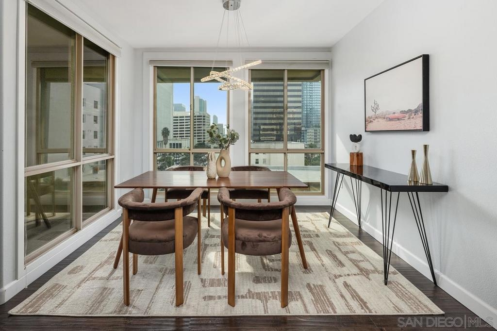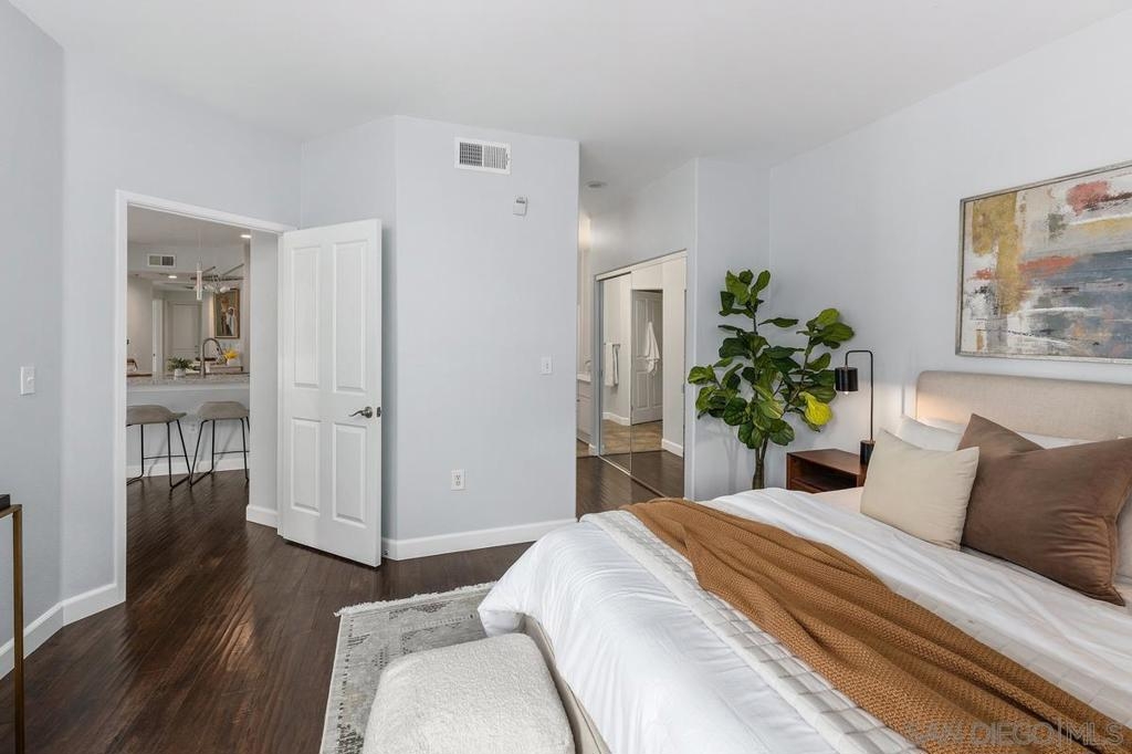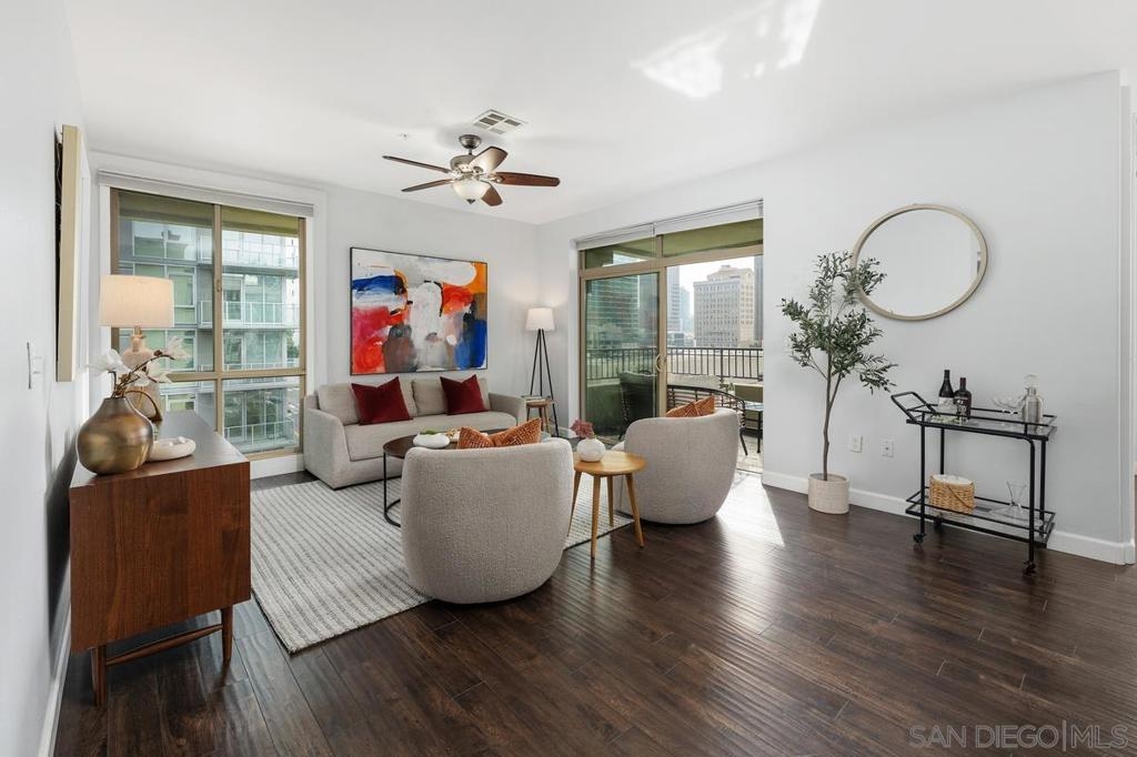 Welcome to a rare gem in downtown San Diego—Little Italy, in the Palermo building! A beautifully upgraded 3-bedroom spacious end unit on the 5th floor with wrap-around city views. Inside: a gorgeous open layout, hardwood floors throughout, and a remodeled kitchen with sleek quartz countertops and crisp white cabinetry. Natural light floods through double-pane floor to ceiling vinyl windows with a private corner patio overlooking the magnificent city views. Just steps from the best restaurants and nightlife. Enjoy a short walk to Little Italy's Farmers Market and Extraordinary desserts just to name a few. This home blends space, style, unbeatable walkability. Don't forget the incredible amenities: barbecue area, clubhouse, rec center, full exercise room, pool, spa, hand two side by side underground parking spaces. This is one of little Italy's rarest and desirable properties. Not to be missed!!!!!