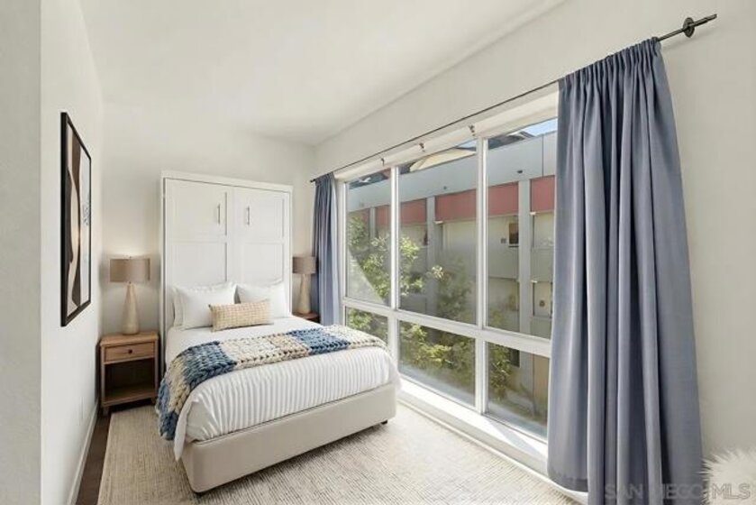 Village Walk #508 is a rare 1-bedroom plus den (optional second bedroom/office/retreat) that offers over 1,200 square feet of well-designed living space in the heart of Little Italy, one of Downtown San Diego’s most vibrant and walkable neighborhoods. The home features an open-concept layout with a spacious living area, hardwood floors, fresh interior paint, and a private balcony capturing the energy of city living. The kitchen includes stainless appliances, granite countertops, recessed lighting, a pantry, and ample storage. The primary bedroom overlooks the interior courtyard and offers a peaceful retreat with a spacious walk-in closet. The bathroom is complete with a dual vanity, soaking tub, and separate step-in shower. Additional highlights include arched doorways, in-unit laundry, very convenient elevator access, a storage locker, and a secured parking space. An exceptional offering in Little Italy, surrounded by top-tier dining, the waterfront, and the energy that defines Downtown San Diego living. Village Walk is a vibrant mid-rise community ideally situated in the heart of Little Italy, just steps from an exceptional collection of shops, cafés, art galleries, and over 70 award-winning restaurants and patio dining destinations along charming India Street. Little Italy’s walkable streets lead to weekly farmers markets, outdoor plazas, parks, and waterfront access that all offer a true urban-village lifestyle right at your doorstep. Residents enjoy a beautifully designed central courtyard with a tranquil fountain and comfortable seating areas, perfect for relaxing and socializing. Premium community amenities include a fully equipped fitness center, inviting resident clubroom, and secure bike storage in the garage. With its unbeatable location and thoughtfully curated spaces, Village Walk delivers both convenience and community in one of San Diego’s most desirable Downtown neighborhoods.