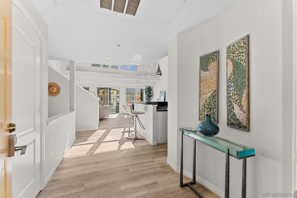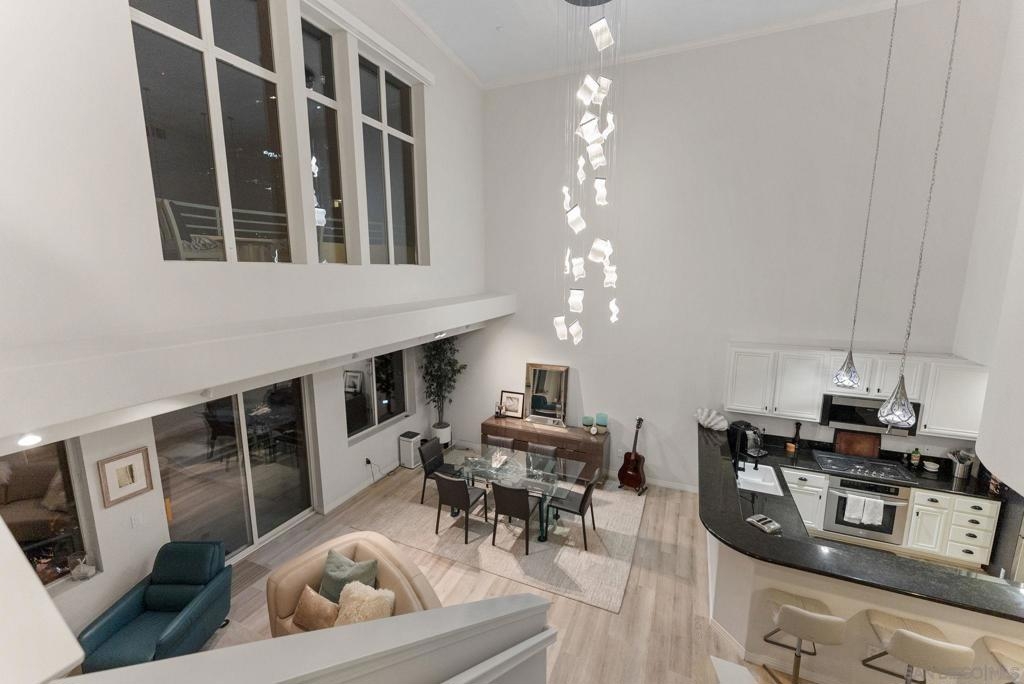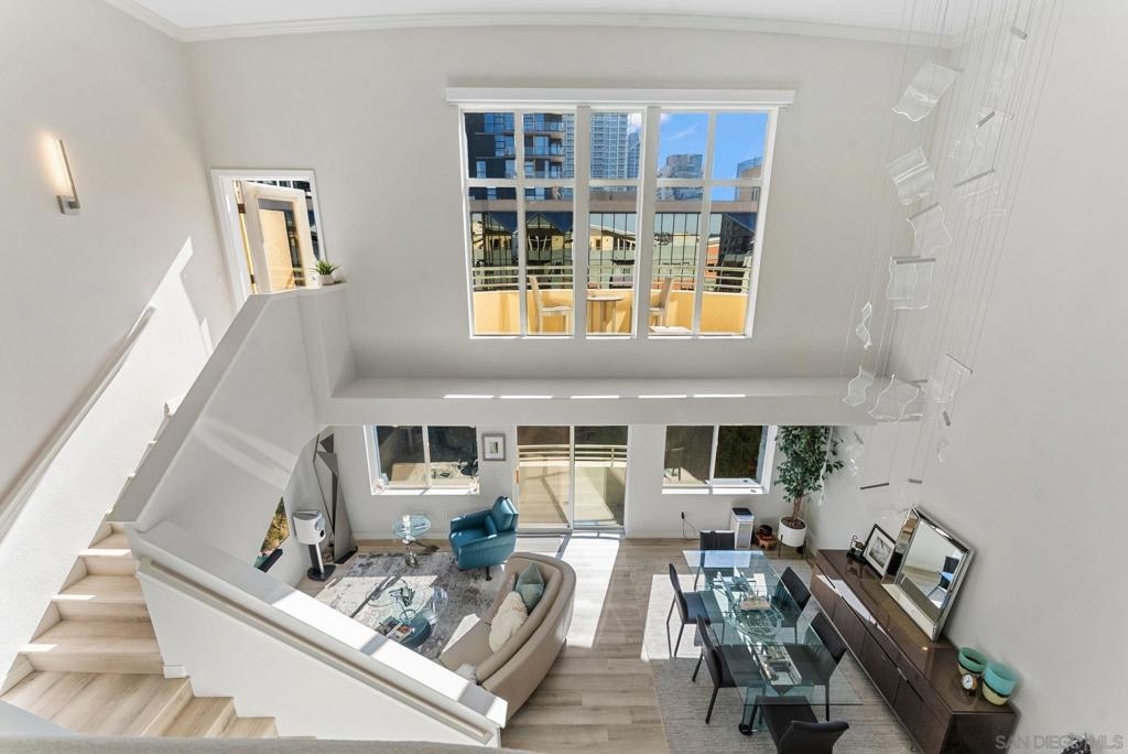 Welcome to 1501 India St Unit 613, nestled in the heart of Little Italy, offering STUNNING Bay and City views. This absolute CHARM of a unit is located on the top floor of the highly sought-after “Village Walk” community. Upon entering, you are greeted by alluring 20-ft ceilings and a delightful open concept that magnifies every inch of the property. The enormous kitchen along with the large living room and wide-ranging dining area offers the perfect space to enjoy, gather, and entertain while the bedroom upstairs provides an optimal space to enjoy peace and serenity directly across from the balcony—the perfect outdoor space to take in the breathtaking views. The primary bathroom is highlighted by new fixtures, a new barn door, a new vanity and high-end vanity mirror, and a new bidet. The optional bedroom downstairs offers multiple possibilities to maximize the space, whether it be an office, a den, or whatever suits your lifestyle. Additional upgrades include luxury electric shades to complement the dual-pane windows, a new high-end chandelier, new lighting fixtures, a built-in wine cooler, and more. A short elevator ride downstairs leads you to San Diego’s finest entertainment options, such as the San Diego Bay, multiple award-winning restaurants and coffee shops, and the renowned “Little Italy Farmers Market.” In addition to the highly desirable walkability, this luxurious unit offers easy access to the 5 and 163 freeways, as well as a short commute to San Diego International Airport, allowing for ease and convenience of travel in every regard. Come have a look!