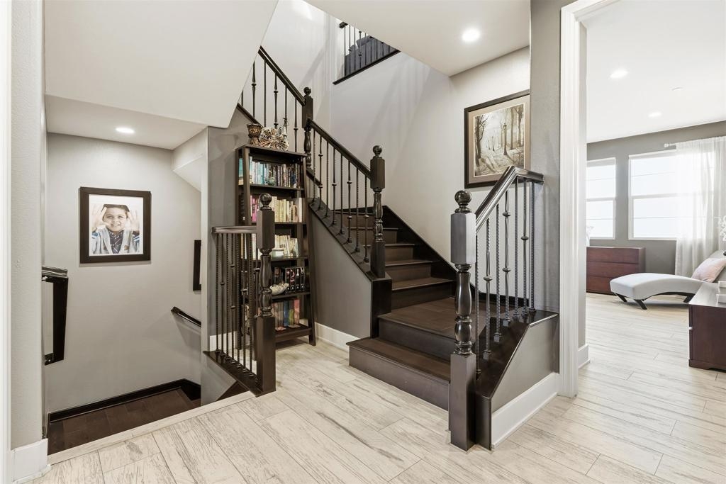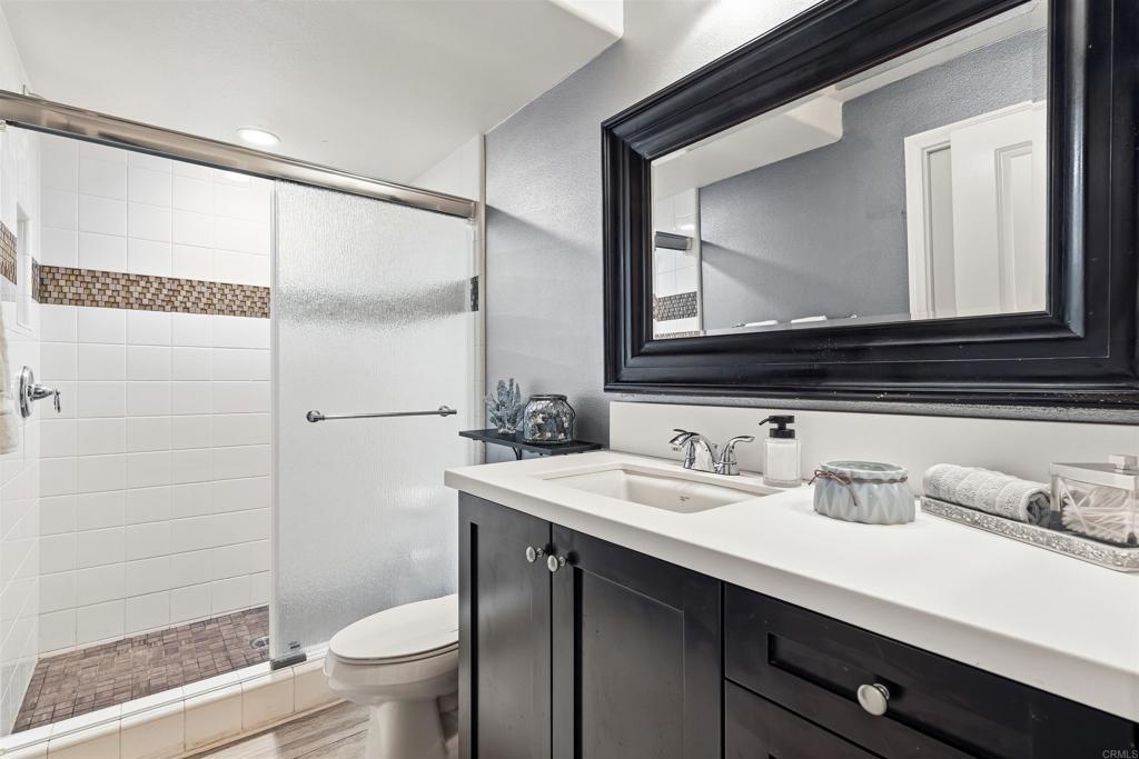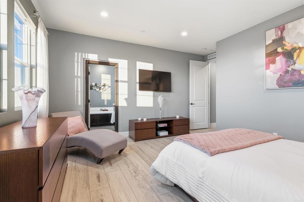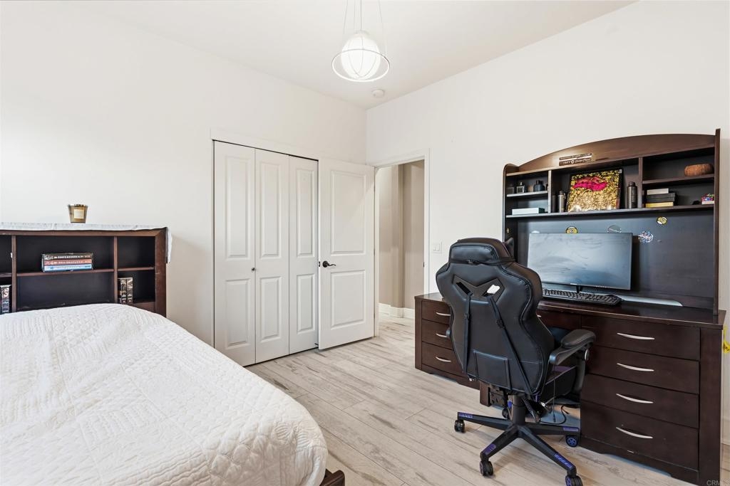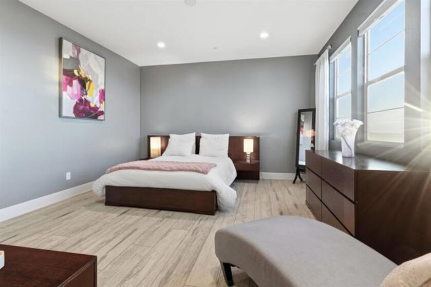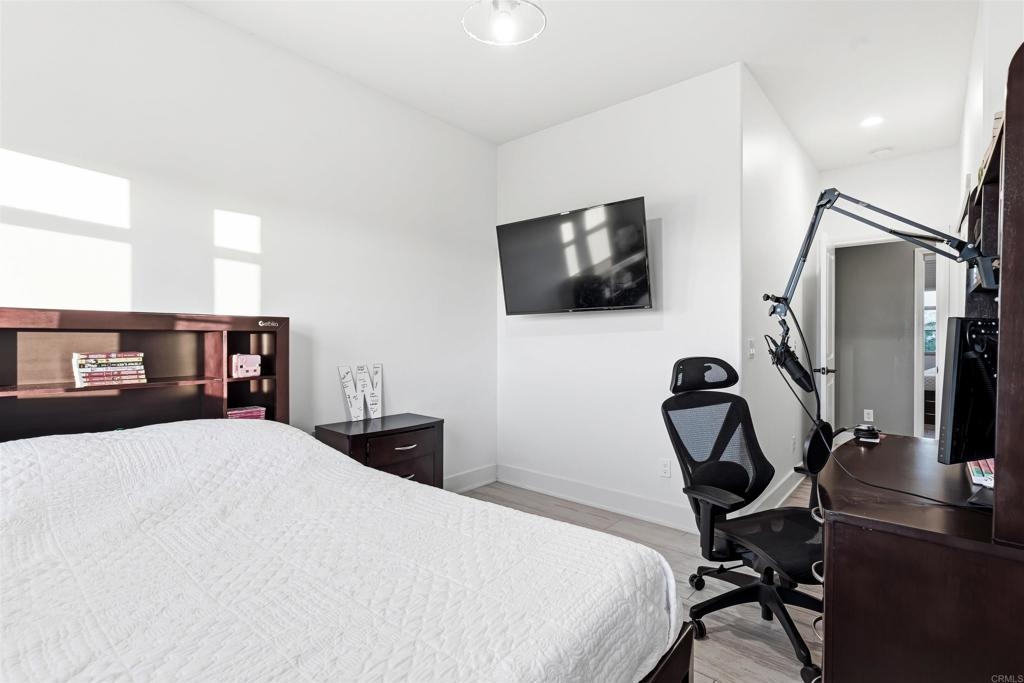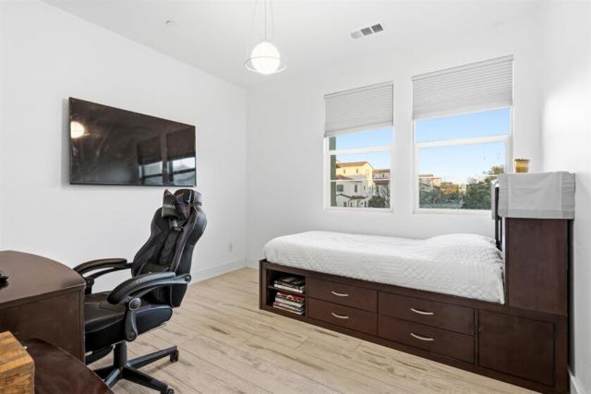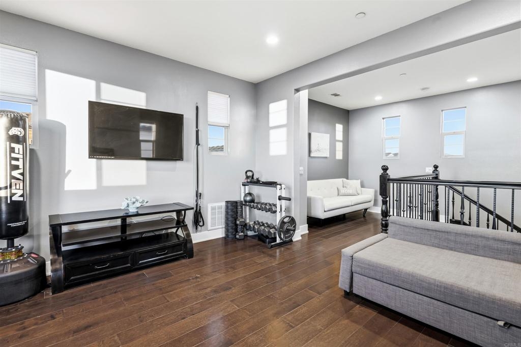Exceptional 5 bedroom residence plus a third-floor loft located in the highly sought-after gated Veridian community of Black Mountain Ranch/Del Sur. Built in 2017, this beautifully designed home offers spacious, modern living with thoughtful upgrades and abundant storage throughout, including a convenient bedroom on the main level, ideal for guests, multi-generational living, or a home office. The open-concept main level showcases a chef’s dream kitchen featuring espresso cabinetry, sleek white and grey finishes, and an oversized island that comfortably seats eight, ideal for entertaining and everyday living. The contemporary color palette of crisp whites and soft greys creates a bright, modern aesthetic throughout the home. An upgraded French door opens effortlessly to the outdoors, creating seamless indoor/outdoor living and filling the home with natural light, perfectly setting the stage for the incredible backyard that follows. Step outside to a huge, professionally designed backyard featuring a built-in BBQ island, fire pit, outdoor dining area, and breathtaking panoramic canyon, mountain , and partial ocean views, an entertainer’s paradise and the perfect setting for relaxing or hosting gatherings. Upstairs, the primary suite is a true retreat, offering generous space, abundant natural light, and a luxurious, spa-inspired bathroom. The suite is complemented by a custom walk-in closet, designed with magazine-worthy detail and finished with a stylish barn door, providing exceptional organization and storage. Additional upstairs bedrooms are well-sized and thoughtfully laid out. The third-floor loft adds a versatile bonus space, perfect for a media room, gym, playroom, or private escape. A dedicated laundry room with sink and built-in storage adds everyday convenience. Additional highlights include a 2-car garage with overhead storage and ample storage solutions throughout the home. Located in a vibrant master-planned community with resort-style amenities, parks, trails, and access to the top-rated Poway Unified School District. This home seamlessly blends luxury, functionality, and exceptional indoor/outdoor living in one of North County San Diego’s most desirable neighborhoods.