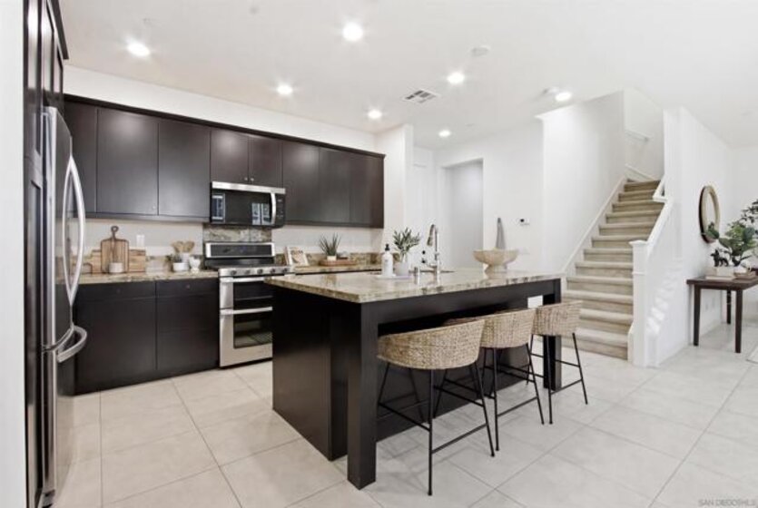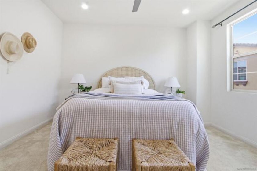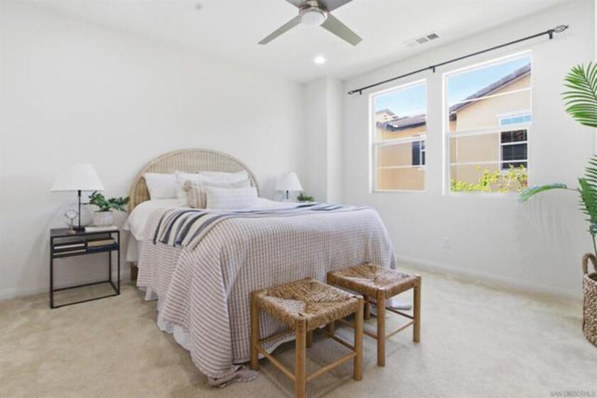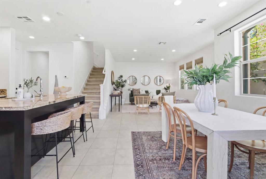 Welcome to the highly sought-after gated community of Veridian, where comfort, style, and convenience come together in this beautifully upgraded 3-bedroom, 2.5-bath townhome with a spacious loft. From the moment you enter, you’ll notice the thoughtful design and quality craftsmanship throughout. The bright, open-concept living space is centered around a stunning kitchen, perfect for entertaining, casual dining, or gathering with family and friends. Step outside to your own private outdoor retreat. This private outdoor space is ideal for doing a little gardening, al fresco dining, and relaxing in your own peaceful retreat Upstairs, the primary suite offers a peaceful escape with a generous walk-in closet and a spa-inspired bathroom featuring quartz countertops and a beautifully tiled walk-in shower. Two additional bedrooms and a well-appointed bathroom provide comfortable space for family or guests. One of the home’s standout features is the versatile top-floor loft—perfect as a media room, home office, gym, playroom, or optional fourth bedroom—giving you the flexibility to fit your lifestyle. Residents of Veridian enjoy resort-style amenities including a pool and spa, BBQ areas, fire-pits, lounge spaces, playground, and private dog park—creating a true community experience. The location is unbeatable: walking distance to Del Norte High School in the award-winning Poway Unified School District, less than a mile to shopping, groceries, and fitness centers, and just minutes from over 70 restaurants.