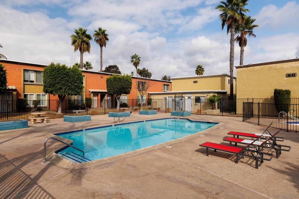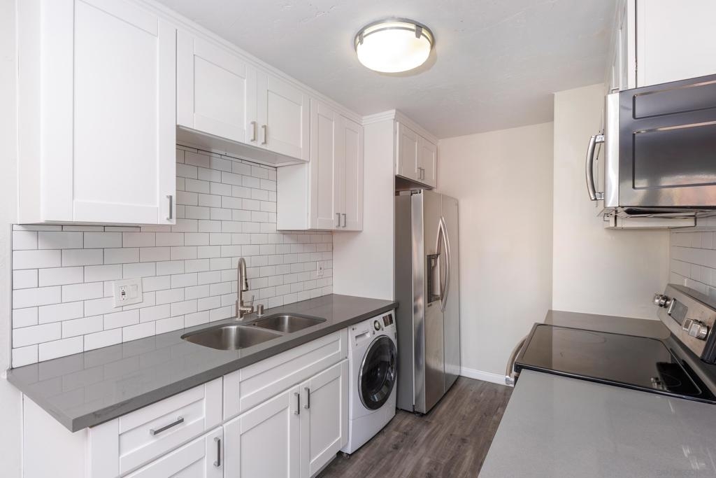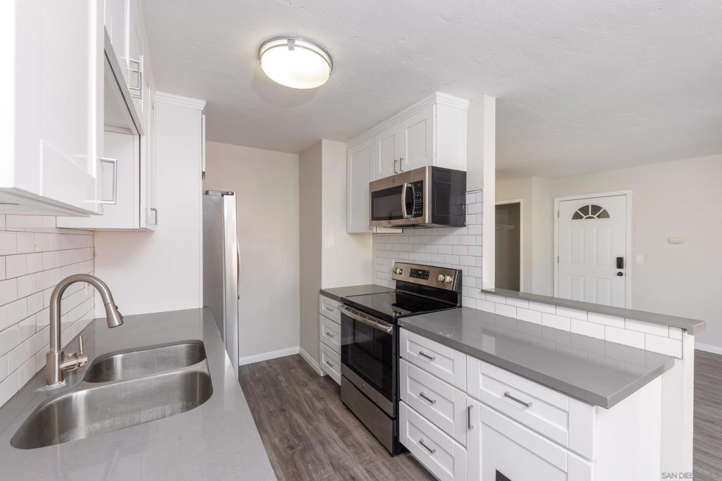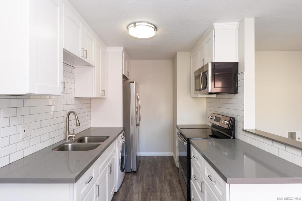 Discover this beautiful 1-bedroom, 1-bathroom condo in the gated Harbor Vista community. Top-floor unit is in a peaceful area of the complex, free from highway noise. The modern kitchen boasts sleek quartz countertops, and vinyl flooring flows seamlessly throughout the home. A rare find in San Diego, a condo with in-unit washer/dryer adds extra convenience. The complex is VA approved, and it’s just a 10-minute drive to the 32nd St Navy Base. With stores, restaurants, and the freeway only a traffic light away, plus access to a sparkling community pool, this condo blends convenience and comfort in one great location!