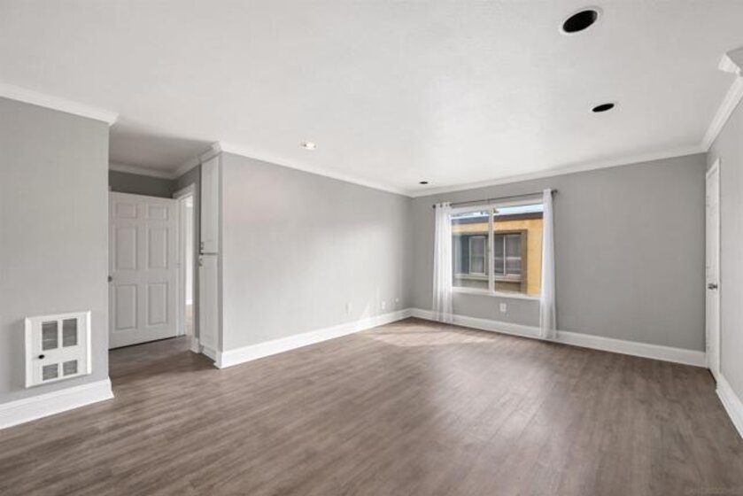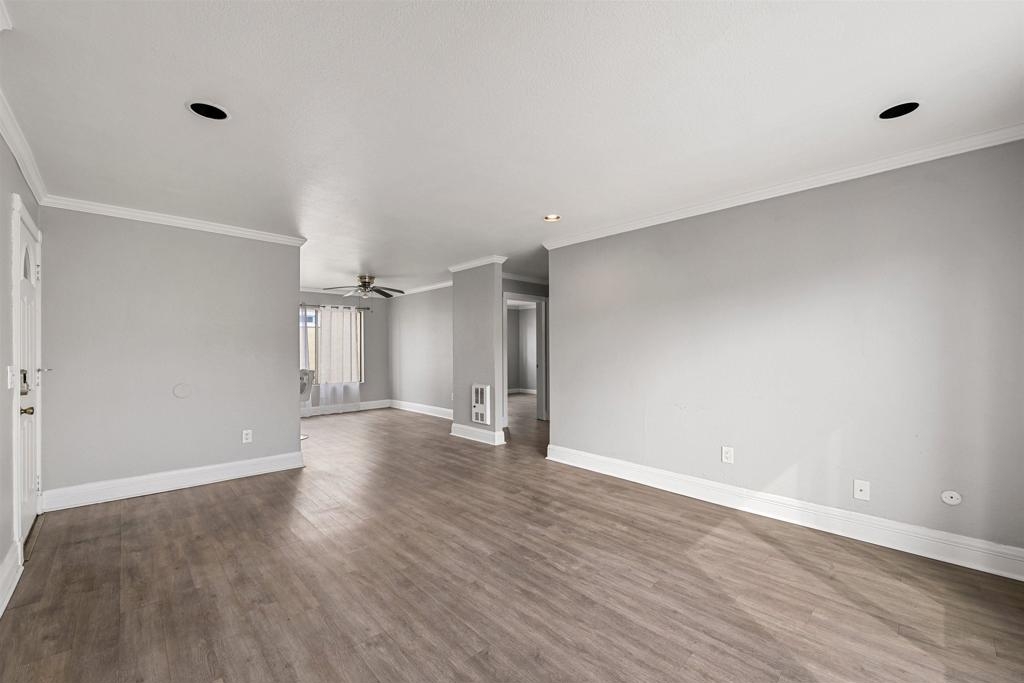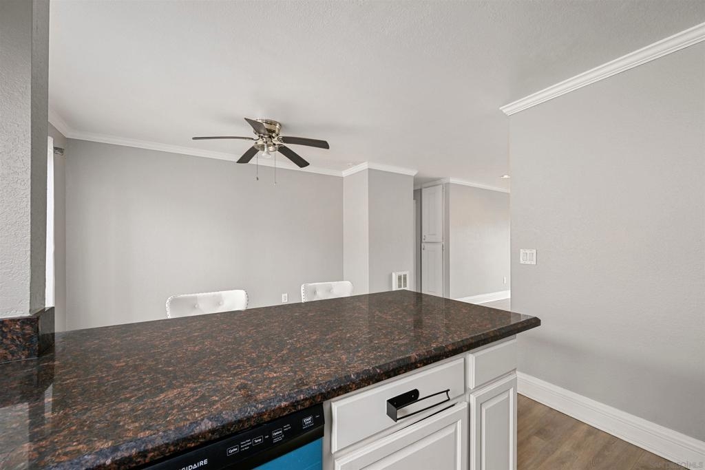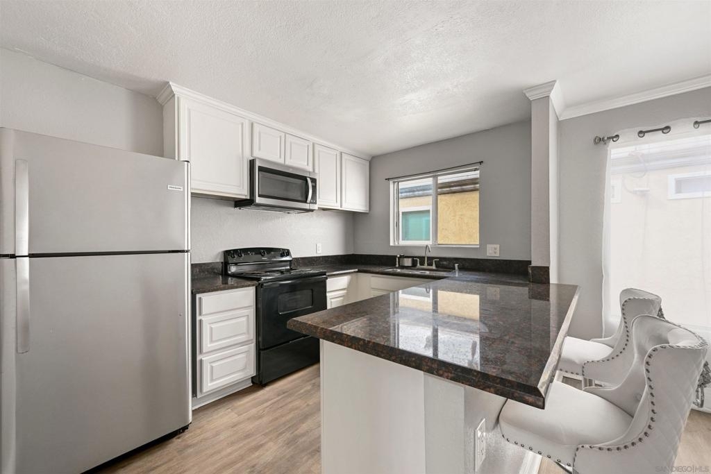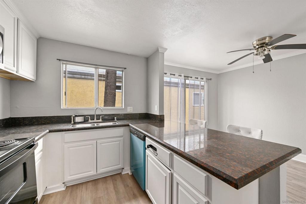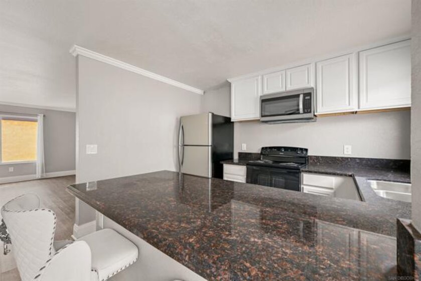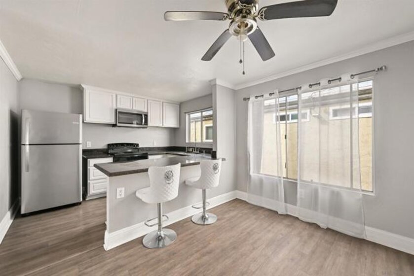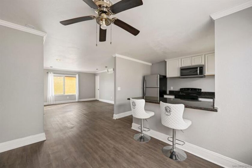 This light and bright residence has been beautifully upgraded with crown molding, elegant baseboards, and stylish laminate flooring throughout. The open-concept kitchen features abundant cabinetry, sleek granite countertops, and flows seamlessly into the dining area—perfect for both everyday living and entertaining guests. Both bedrooms offer comfortable personal retreats with ample closet space and natural light. Ideally situated within the gated community of Harbor Vista, this home is conveniently located near the pool, spa, and community laundry facilities
