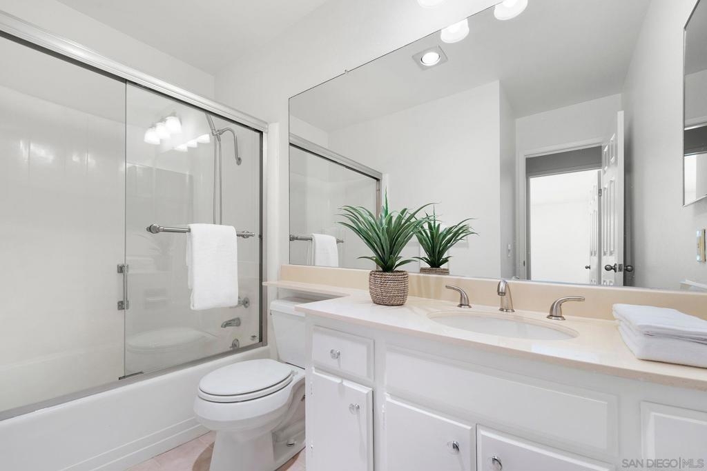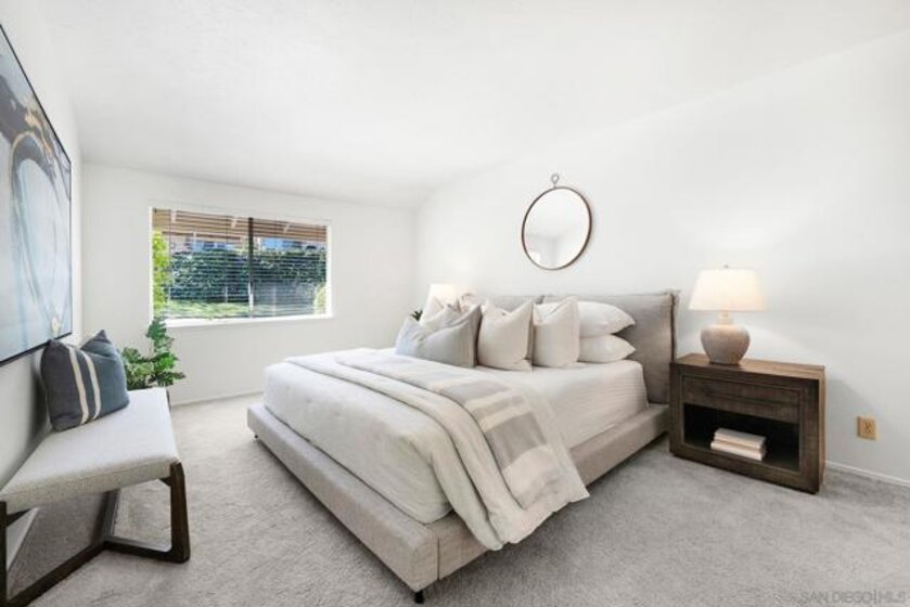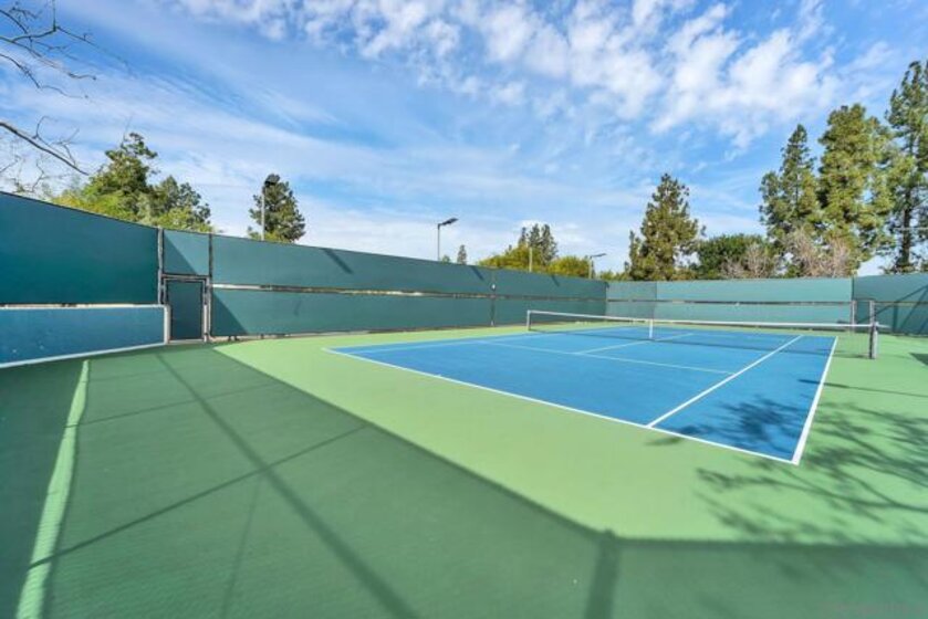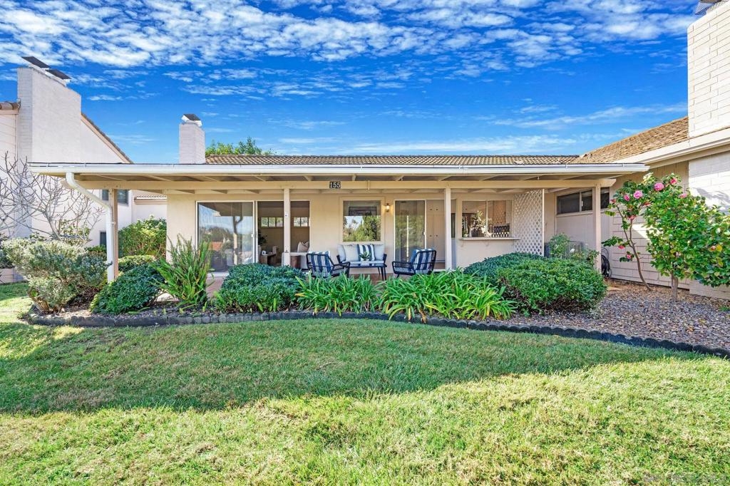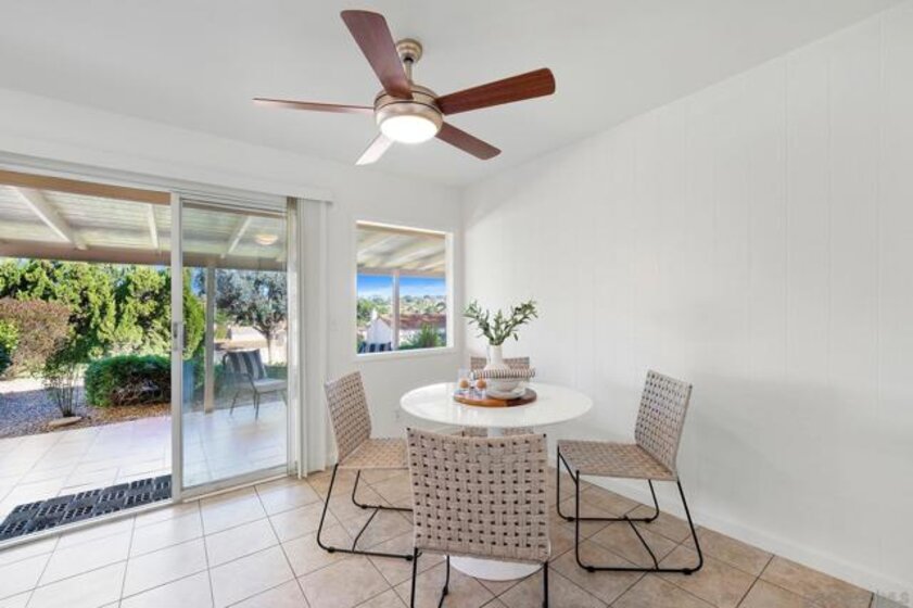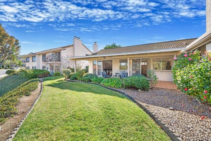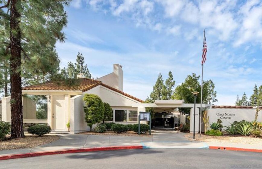 SINGLE LEVEL!! NO STAIRS!! Highly desirable and lovingly maintained 55+ Oaks North cul-de sac home boasts a coveted floor plan, no unit above or below, no steps and a single common wall! Quietly situated with direct greenbelt access, the home offers a private covered patio with serene mountain views in a vibrant and walkable community. The interior is bright and functional, featuring a freshly painted interior (2025) and a well-designed layout that maximizes natural light. The kitchen area includes quartz countertops and a delightful breakfast nook that adds everyday charm and practicality. Recent updates include a new furnace (2026), newer water heater (2024), and newer refrigerator (2024). The spacious living area features vaulted ceilings and a full-size dining space, creating an open and inviting atmosphere framed by abundant windows. Sliding doors provide direct access to the private covered patio, extending the living space outdoors and offering pleasant views of the surrounding greenery and hillside vistas. The oversized primary bedroom offers a comfortable retreat with ample closet space and a well-appointed bathroom featuring a separate vanity area and step-in shower, providing both function and privacy. A dedicated in-unit laundry closet offers additional storage and accommodates a full-size, side-by-side washer and dryer. The property also includes a generously sized private-use storage room and assigned covered carport space conveniently located near the unit. Residents enjoy a resort-style lifestyle with exclusive access to the first-class Oaks North Community Center, featuring a lap pool and jacuzzi with separate men’s and women’s locker rooms and saunas, fitness center, private library, woodshop, ceramics studio, art and sewing room, billiards room, game room, and more. Stay active with pickleball, tennis, lawn bowling, Tai Chi, yoga, water aerobics, and enjoy a full calendar of classes, clubs, and visiting lecturers. Social opportunities abound with card games, movie nights, bingo sessions, “Wine Down Wednesdays”, language classes and travel/hiking clubs—making it easy to stay connected, engaged, and have FUN! Located minutes from Oaks North Golf Course, Rancho Bernardo Inn, Bernardo Winery, walking trails and more, this home offers a truly special lifestyle opportunity in North County San Diego. Don't miss your chance to make it yours!