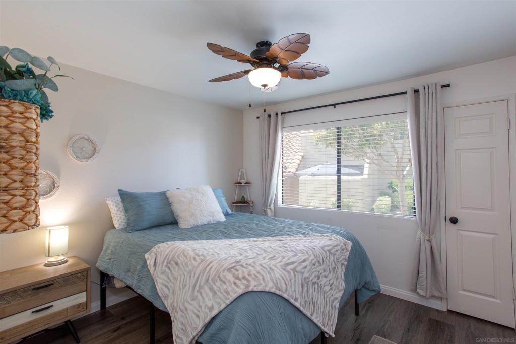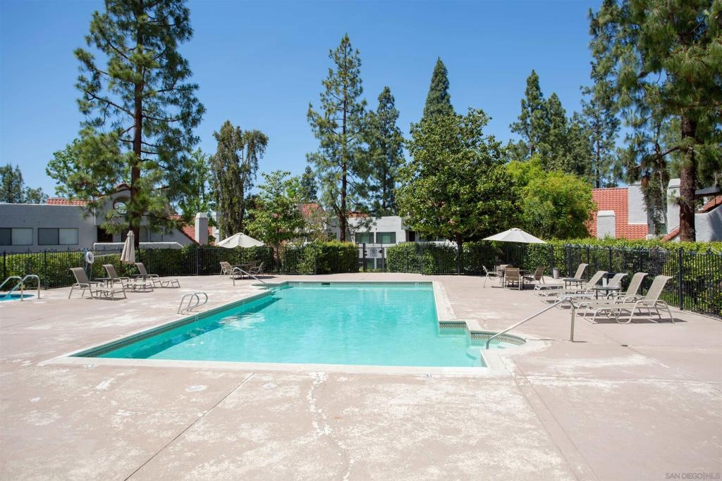 HUGE PRICE IMPROVEMENT!! Priced to Sell! This beautifully updated, “gently used” lower-level two-bedroom condo in the highly sought after Bernardo Pines community won't last long! Open and spacious layout, two bedrooms, two full baths with matching upgraded cabinetry and shower/tubs, plantation shutters in the dining area plus newer luxury vinyl flooring throughout living areas. The primary bedroom includes an en-suite bathroom and walk-in closet (w/built-ins), exceptional privacy surrounded by beautiful mature pine trees. The second bedroom includes multiple closets and direct access to the full guest bathroom. The kitchen features cultured granite countertops and natural bright wood cabinetry. Enjoy an afternoon on the private patio. This floor plan flows beautifully and practically with plenty of storage and full-size in-unit laundry. A wonderful home in a wonderful community. This property was primarily used as a second home. Bernardo Pines is known to be well-maintained, full of mature trees and lush greenery, where residents can enjoy two pools, a spa, a tennis court plus a fitness center. Conveniently located just minutes from freeway access, nearby Rancho Bernardo Inn Resort, a wide array of restaurants, all in the prestigious Poway Unified School District. HOA fees (includes water, trash, A/C unit maintenance plus common area maintenance), two parking spaces (one of which is covered), this home offers everything you need for convenient and comfortable living. Don’t miss out on calling this amazing property home!